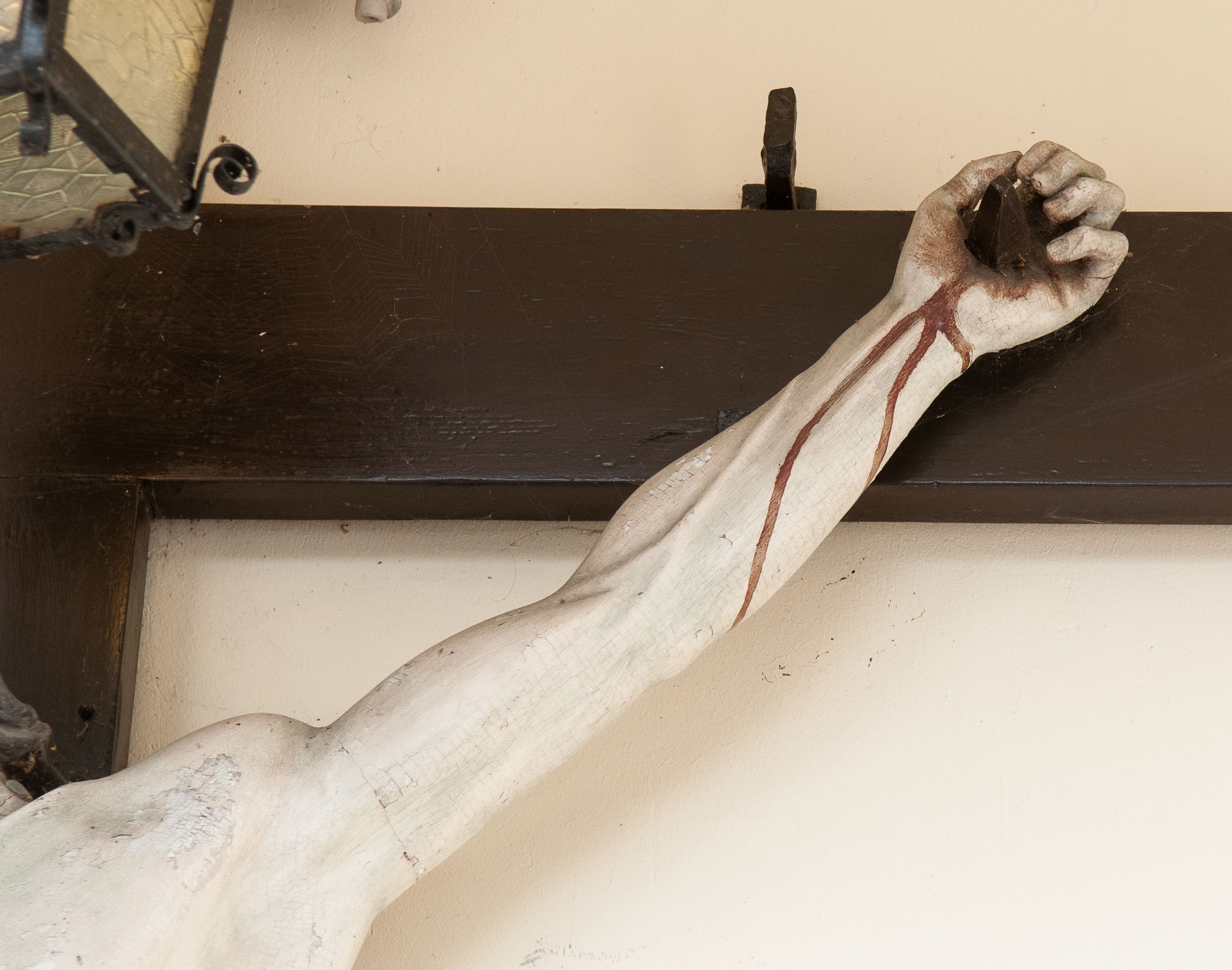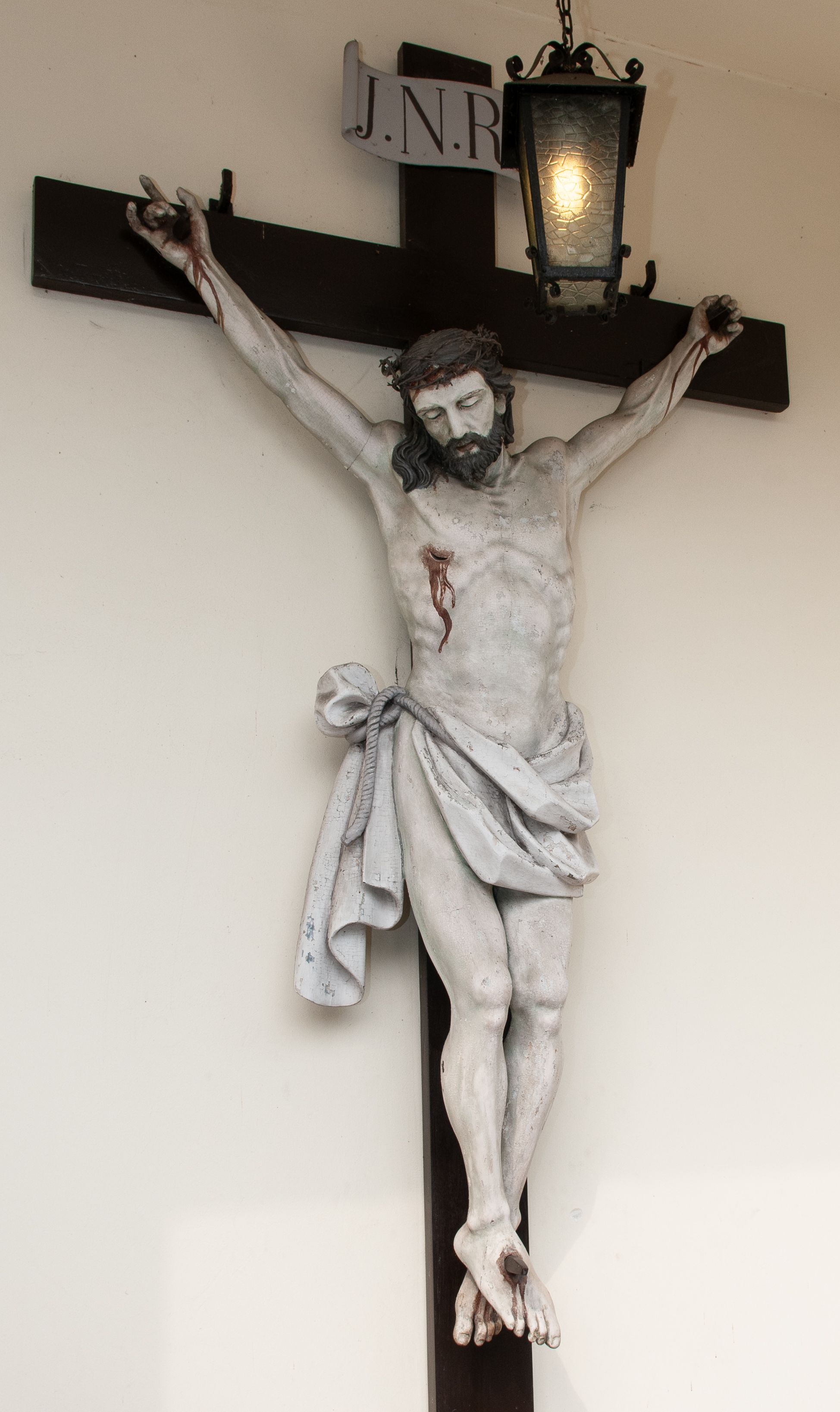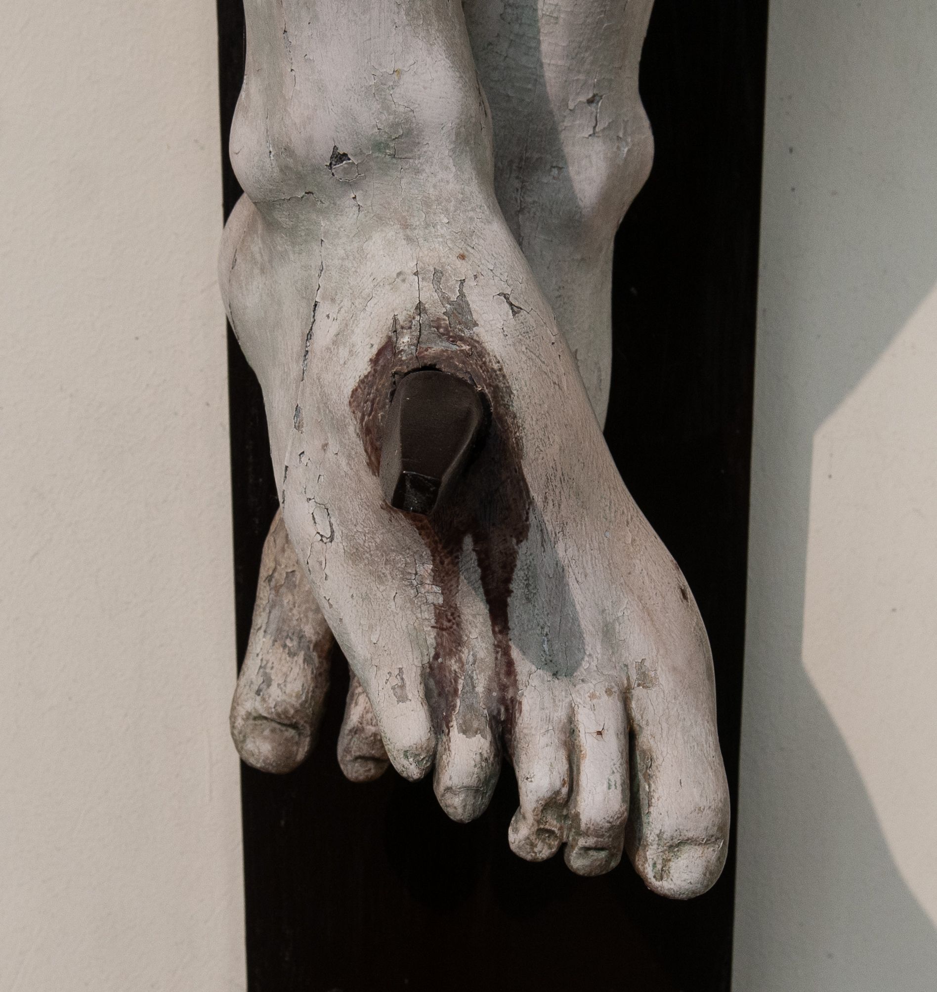 The name "crucifix" comes from the Latin word "crucifixus" and means "nailed to the cross." The eighteenth-century relic has been hung on the external façade of the church in order to constantly remind the believers of the basic truths of the faith.