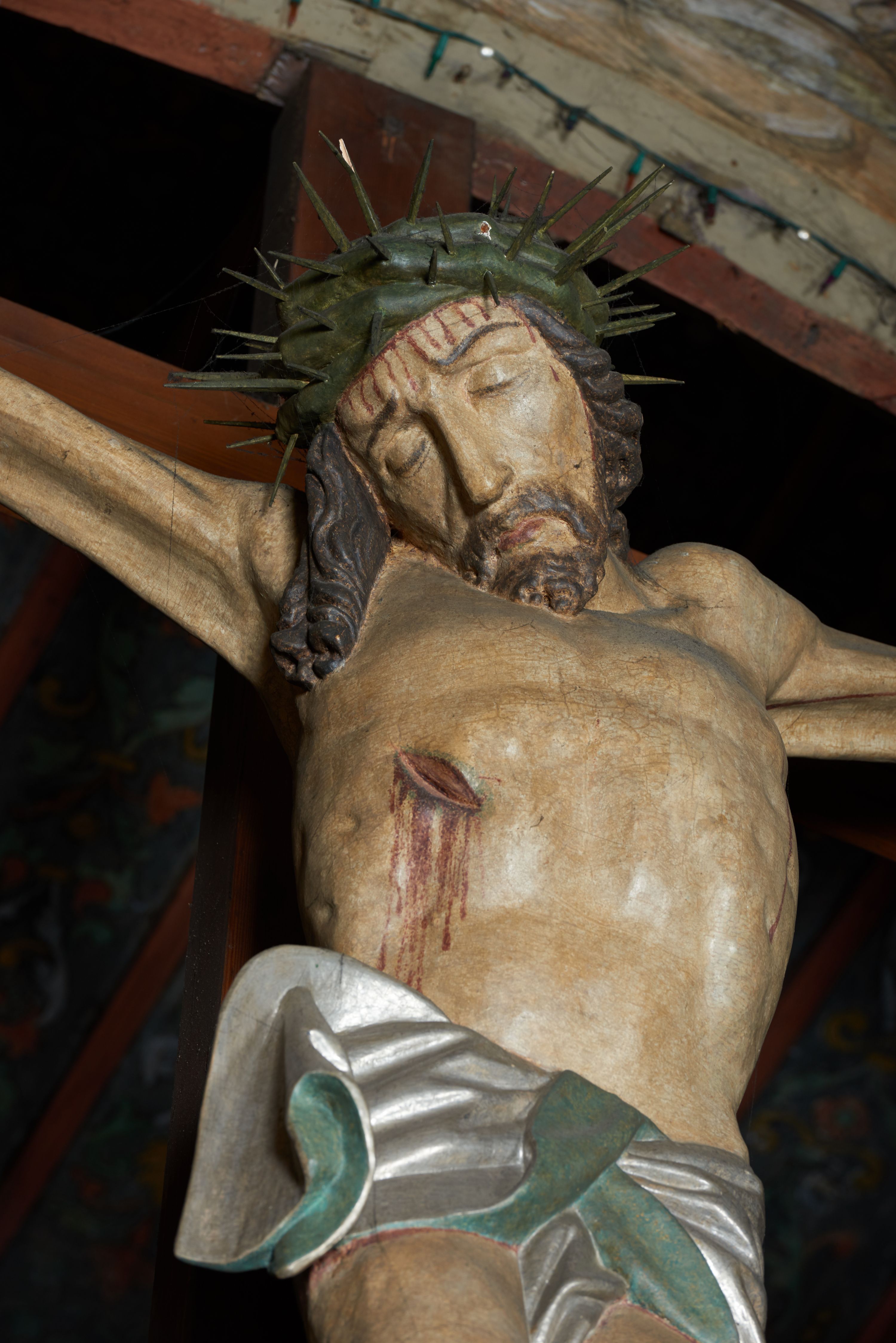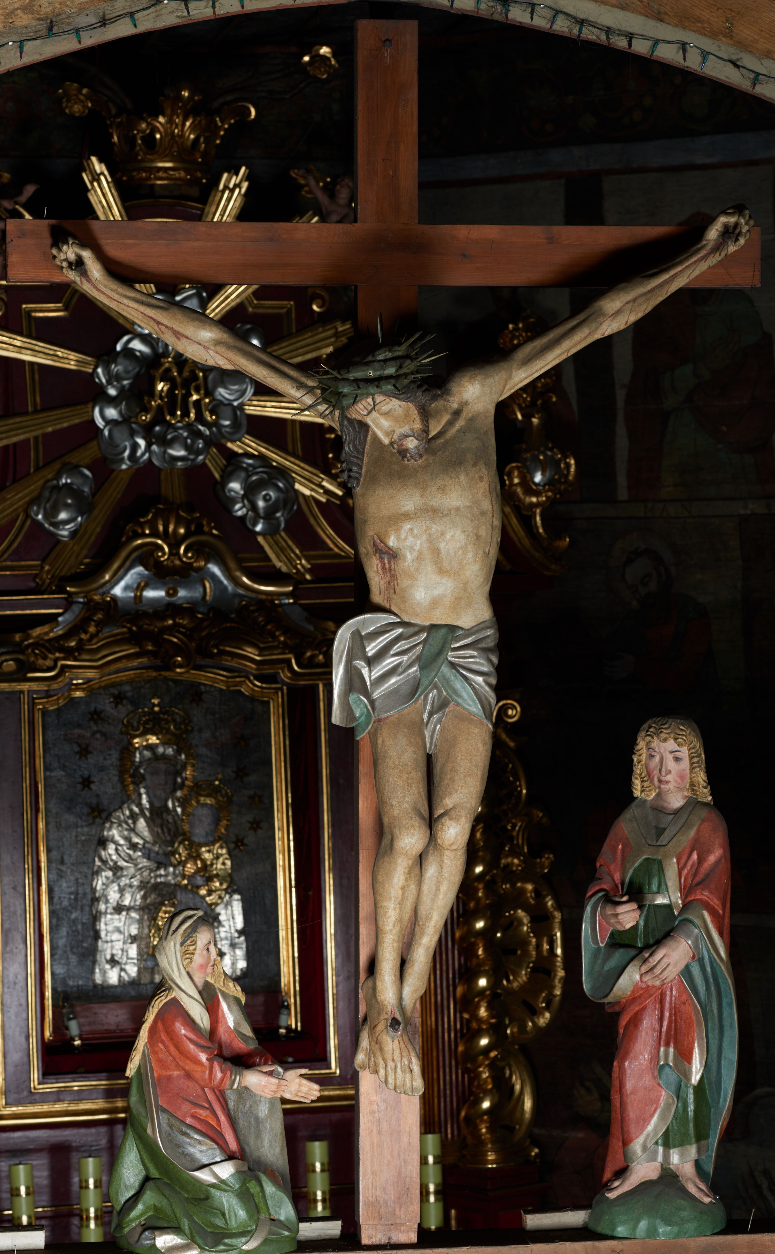 The crucifix placed in the middle of the Crucifixion Group on slightly ogival rood arcade, joined by a supported beam is a unique element of the temple's furnishings from the time of its construction (the beginning of the 16th century).