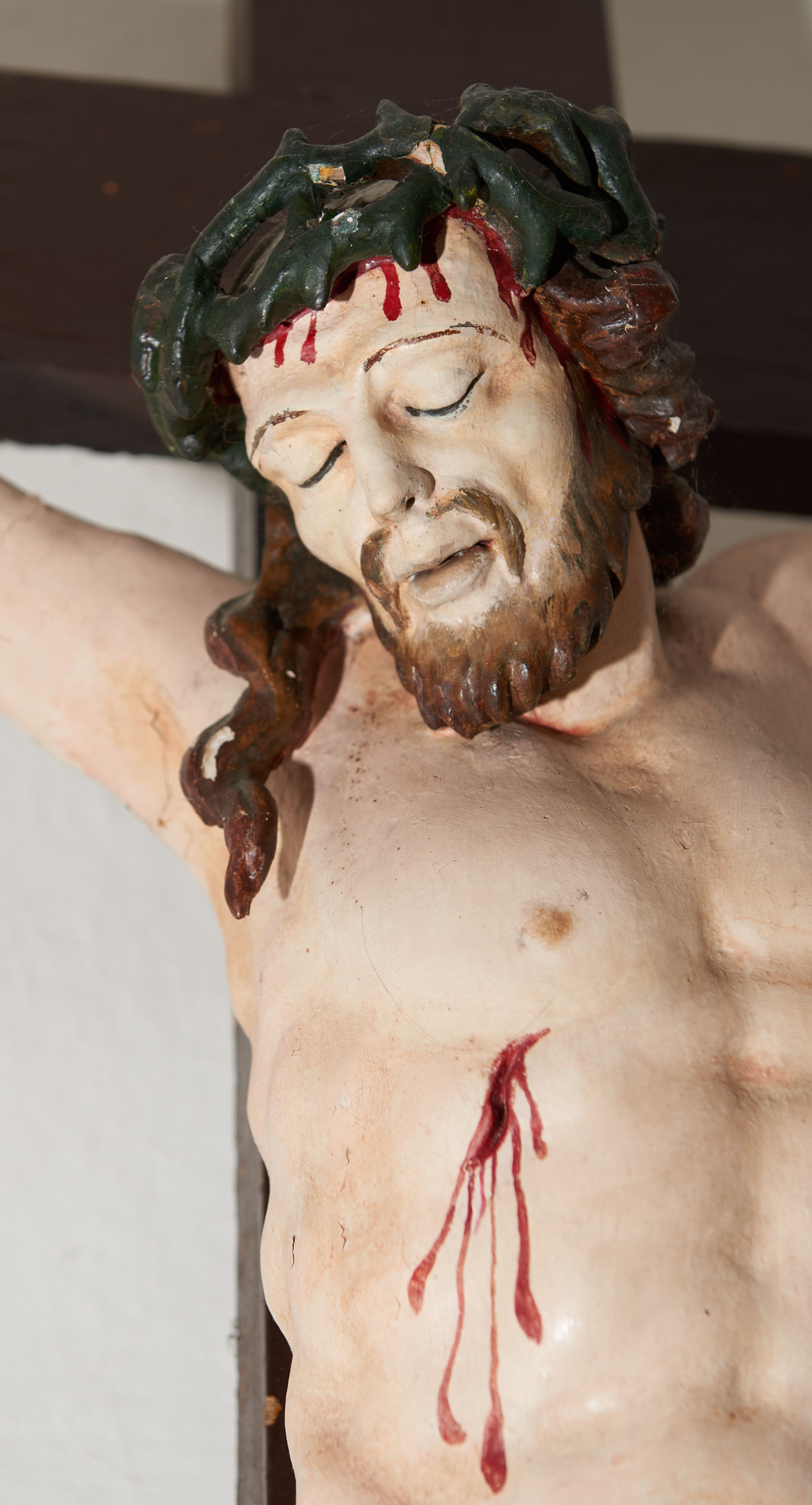 The work was made in an unidentified sculpture workshop, undoubtedly in the region of Lesser Poland. Rope-hung perizoma arrangement that reveals the thigh of Christ refers to the crucifixes created in the seventeenth century. The figure is depicted in the type of Cristo morte, i.e. the deceased Christ, illustrating the moment when the Saviour died on the cross.