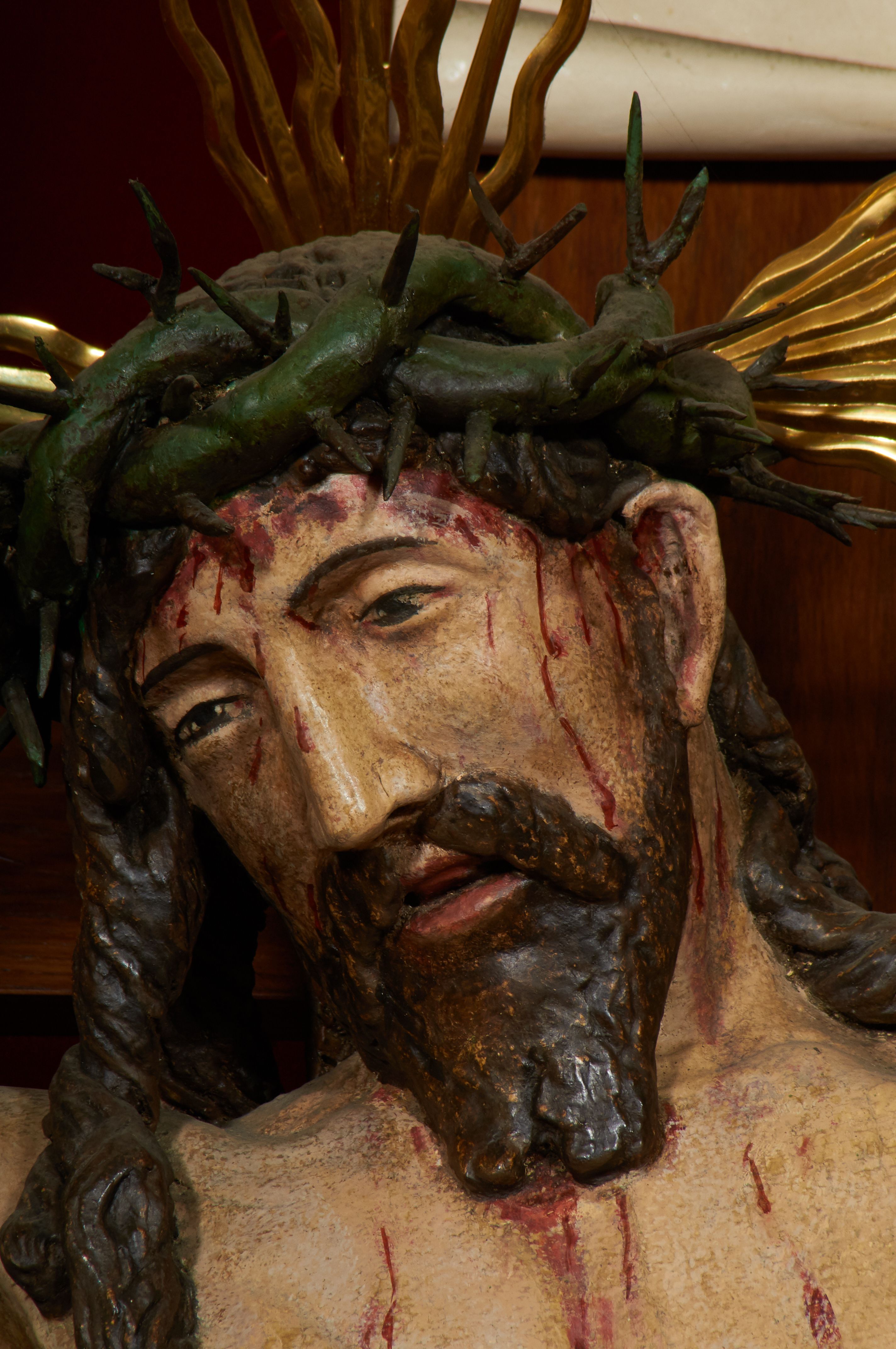 Late gothic statue of Christ Crucified was most probably built at the turn of the 16th and 17th centuries. Most likely it was originally placed in the chancel arch of the church. With regard to miracles that it was famous for during modernization of the temple's interior, around 1766 it was incorporated into the newly built altar, in which it is still located today.