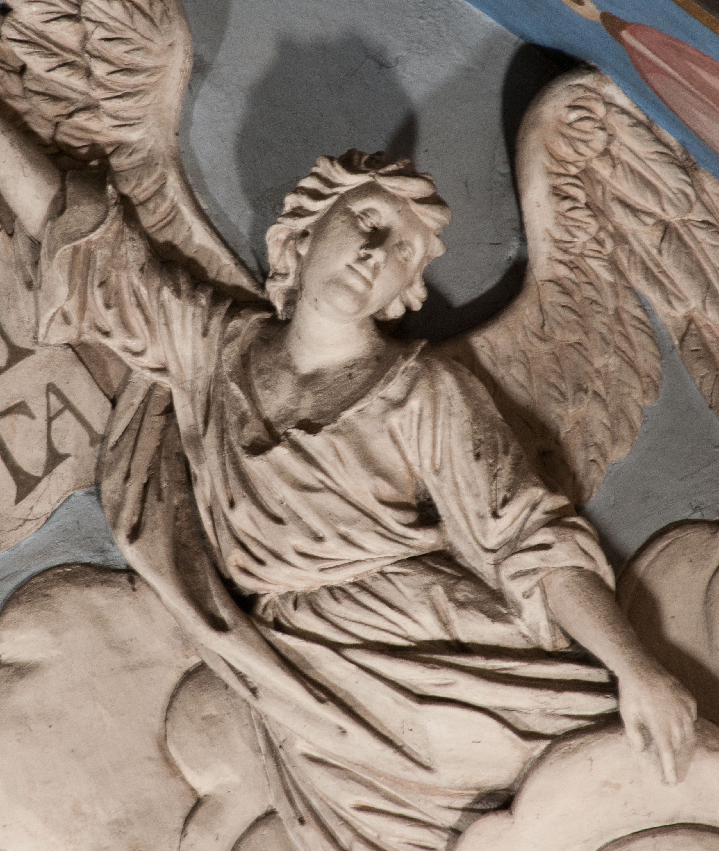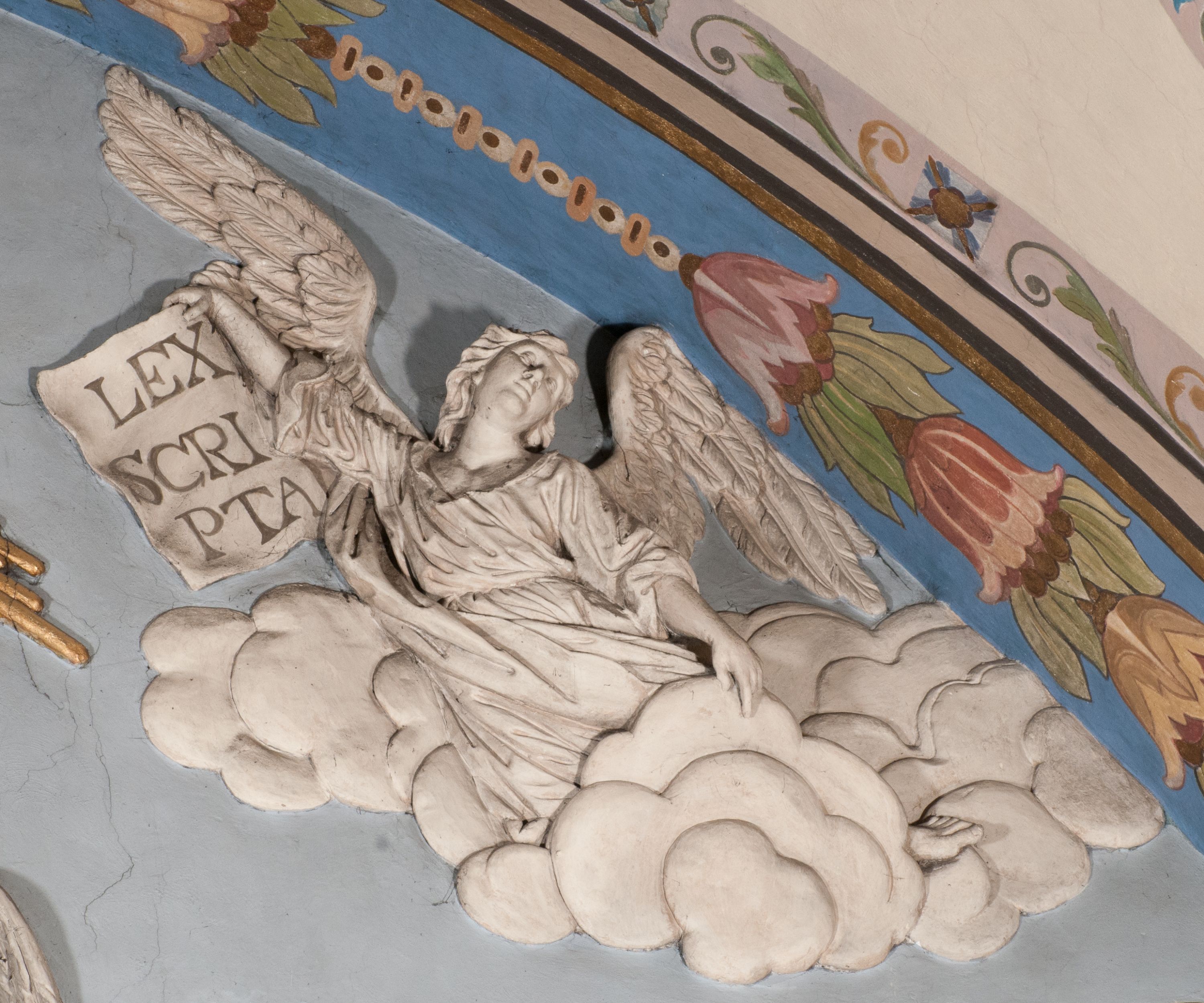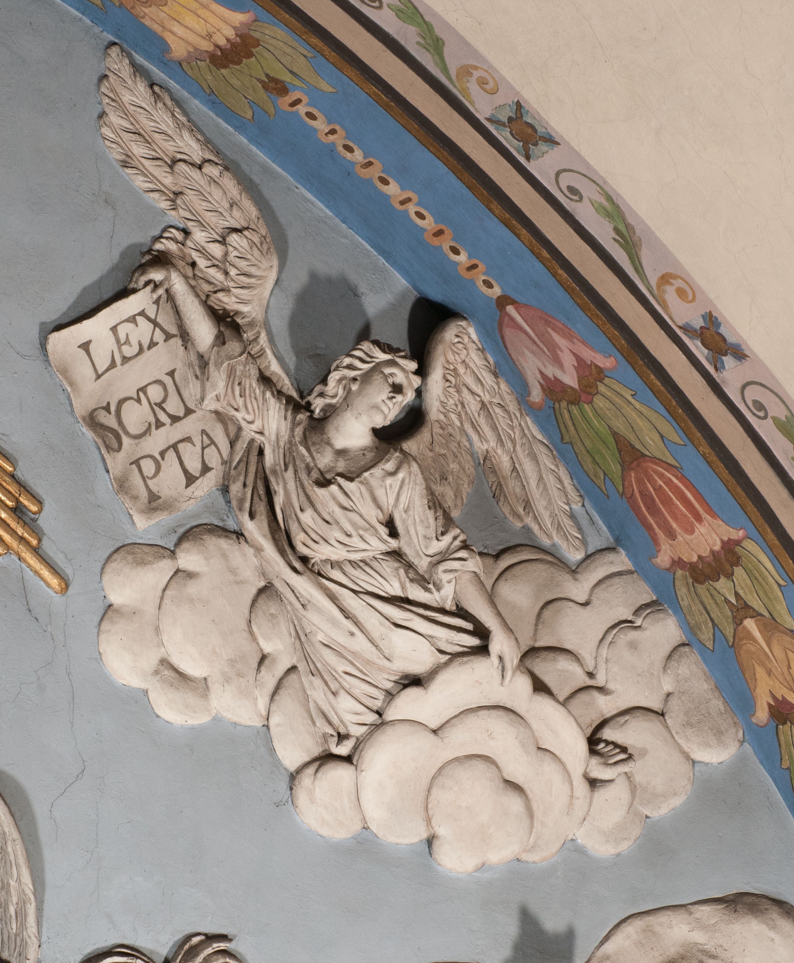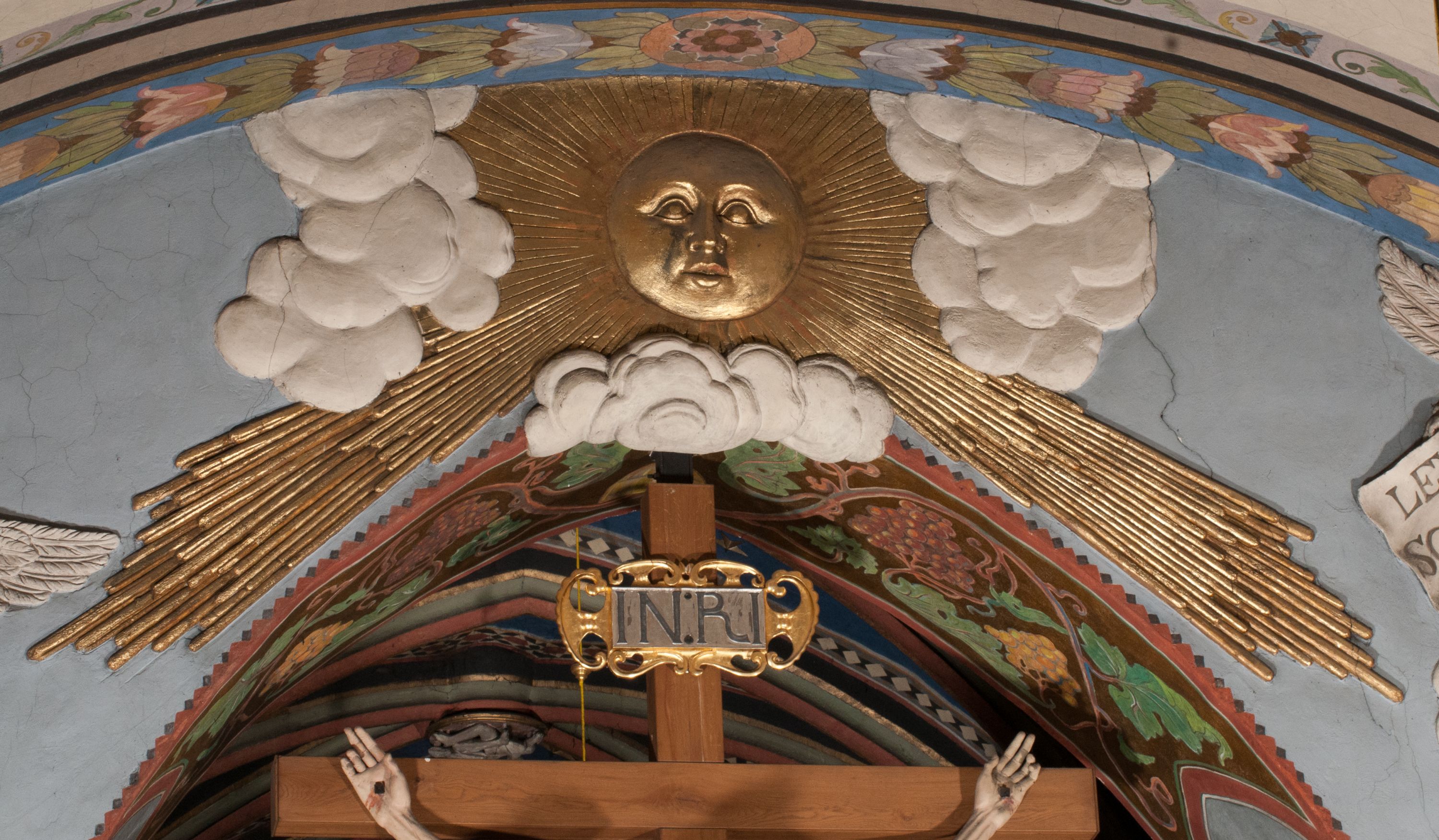 The figure of Christ Crucified was created in the second half of the 16th century, perhaps it was originally located in the former Gethsemane. In 1700, a chapel of Crucifixion, in which a crucifix was placed, was built on the outside wall of the chancel. The figure of Christ Crucified has late gothic characteristics, hence its creation may be dated back to the second half of the 16th century.