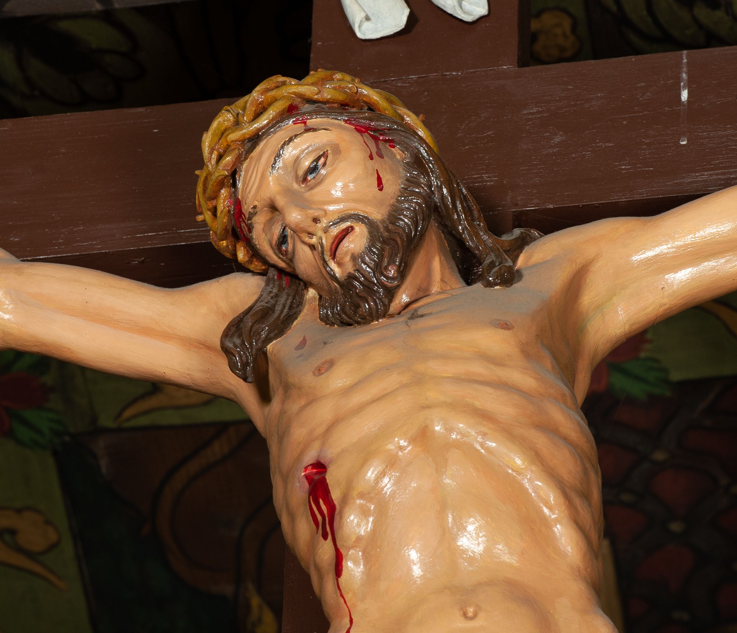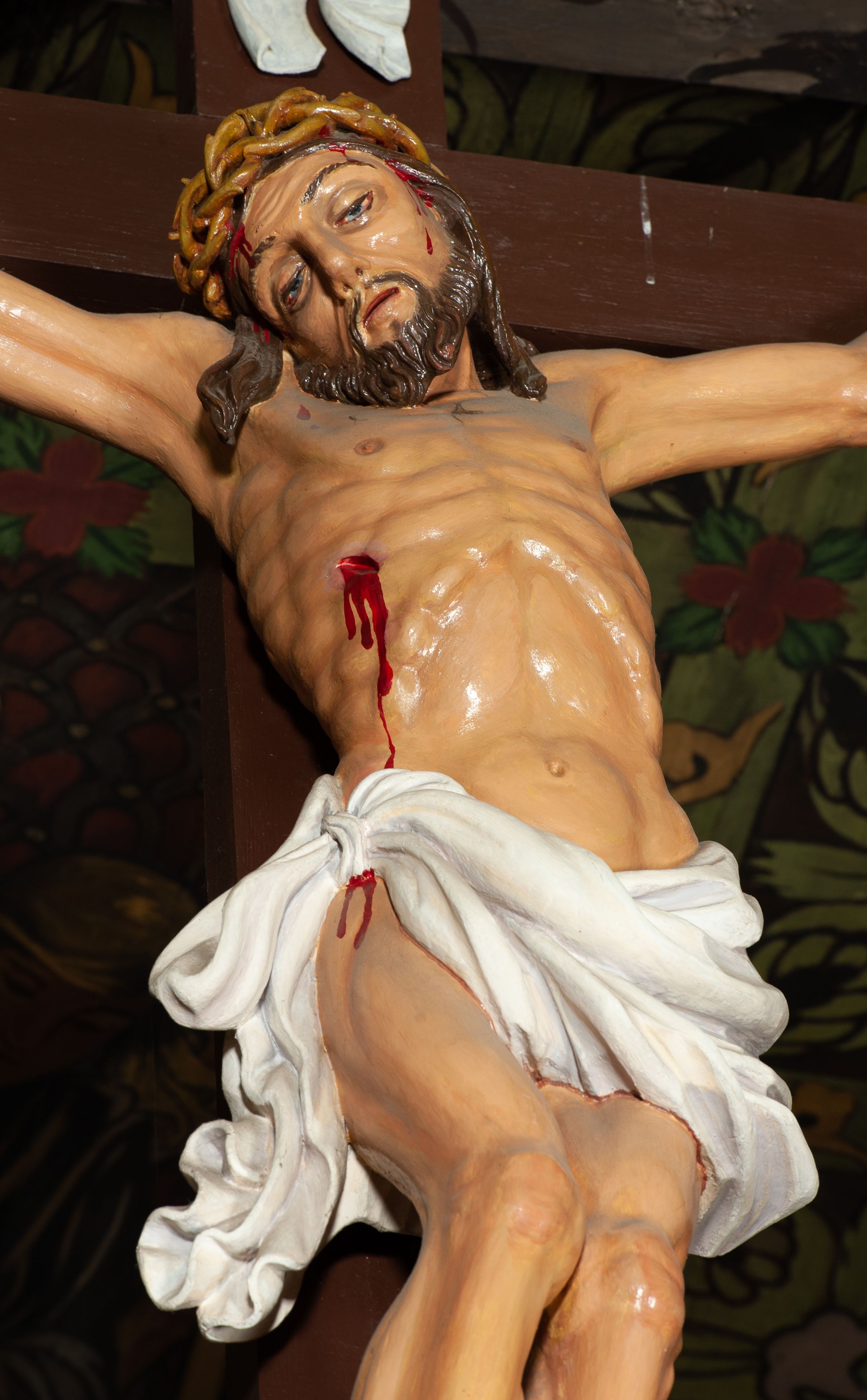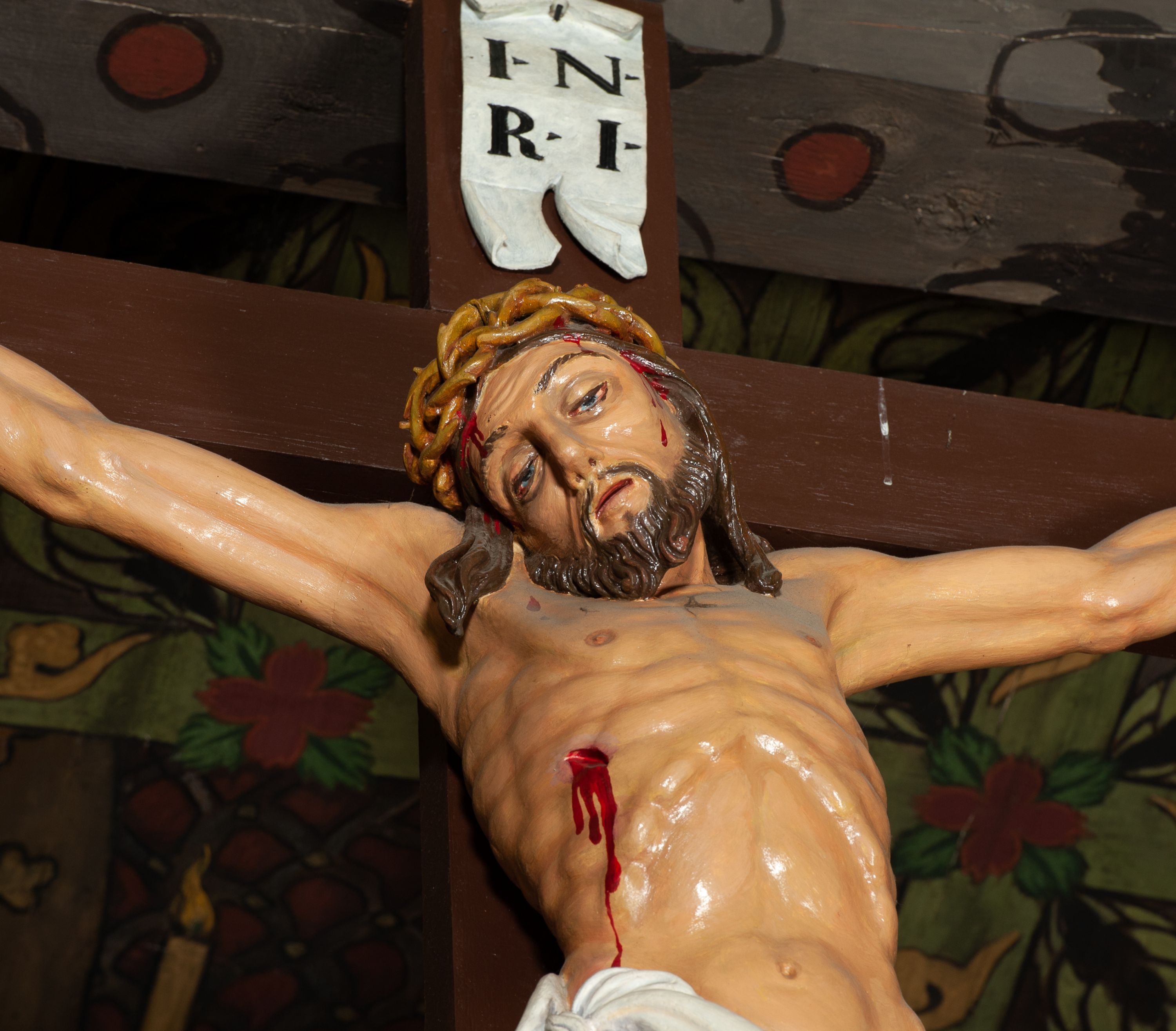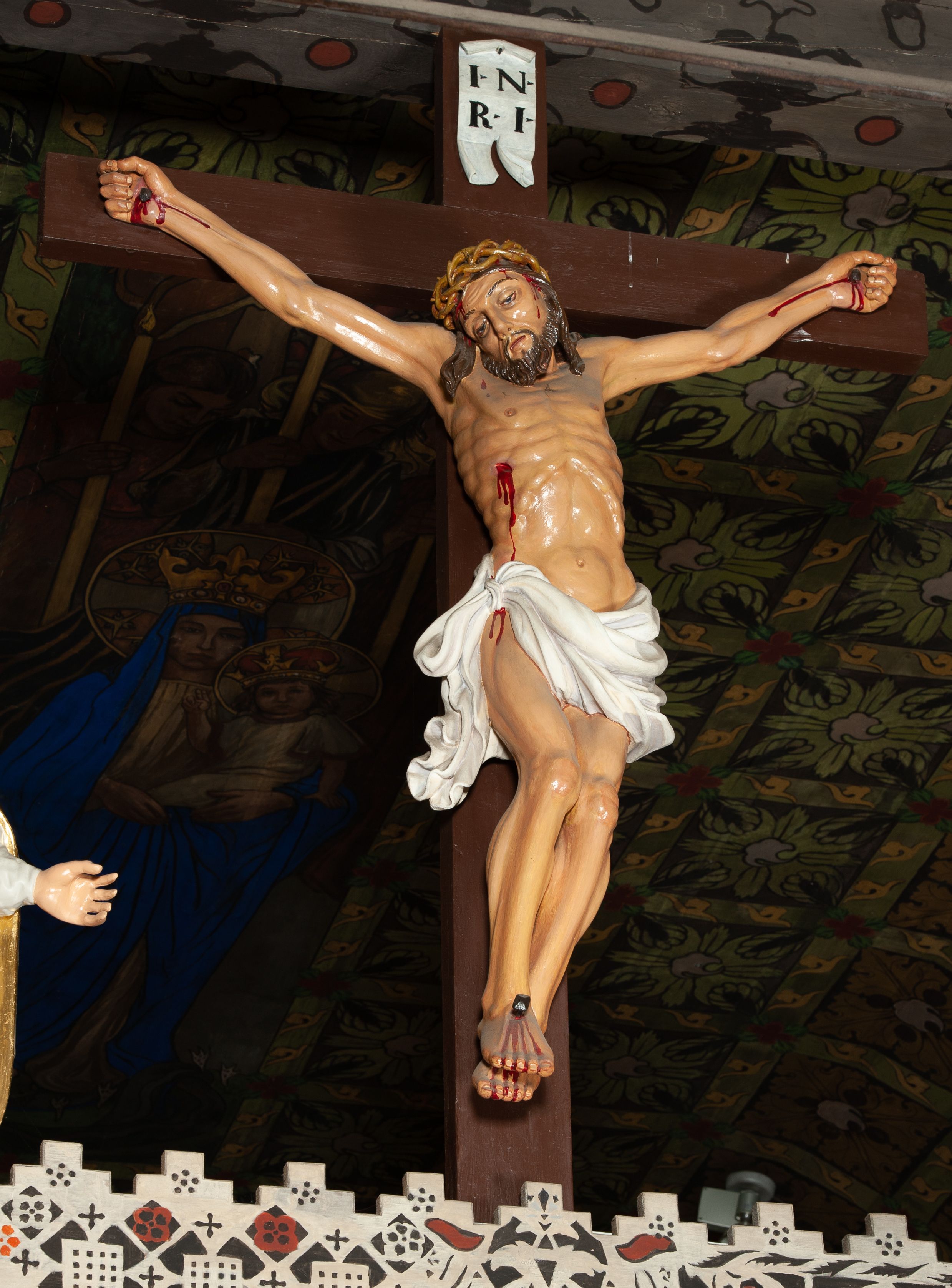 The seventeenth-century Crucifixion Group consists of three sculptures - Christ on the Cross, the Virgin Mary and Mary Magdalene. Statue of the Crucified is located in the chancel arch and constitutes the most significant piece of the Catholic church furnishings.