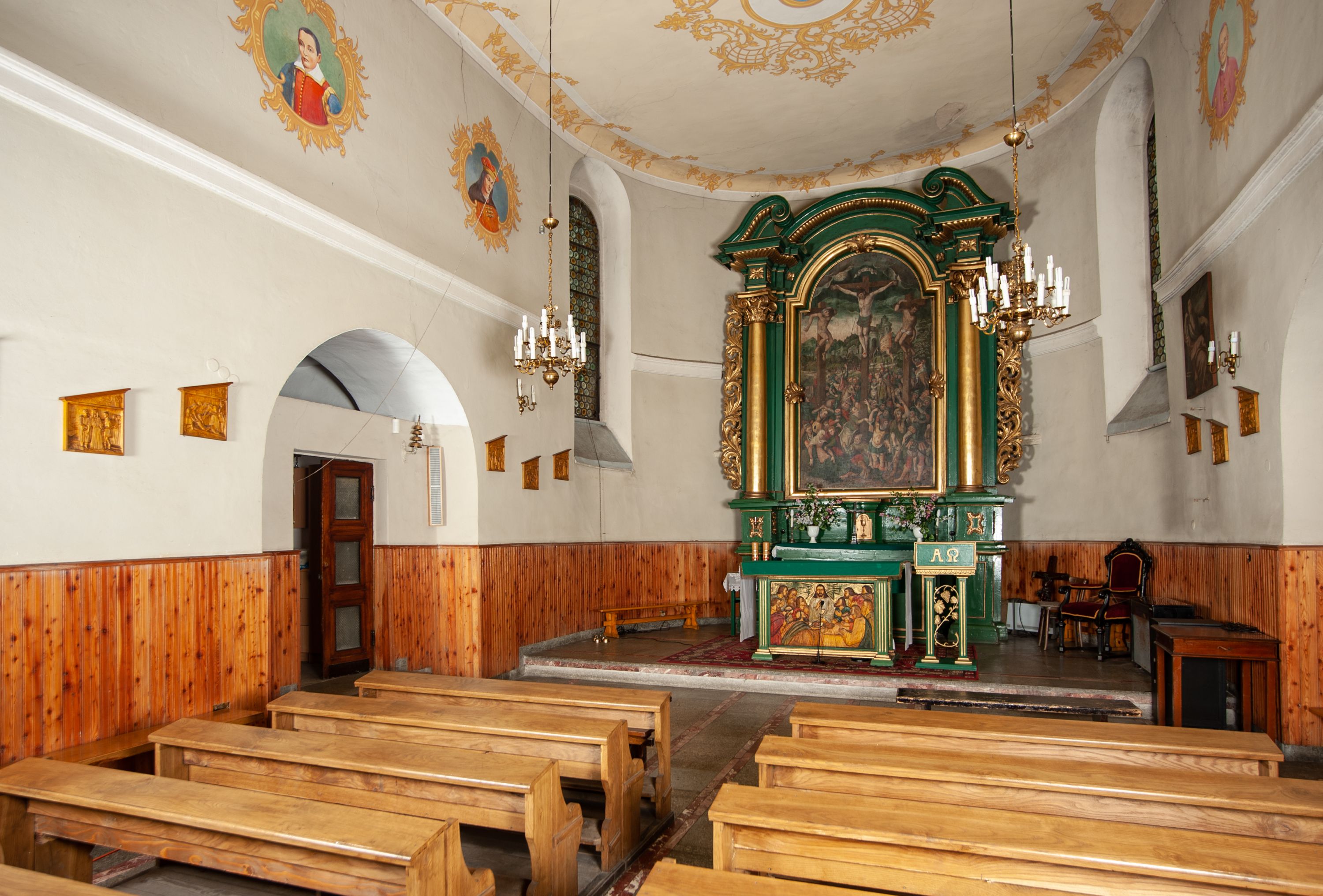 The high altar of the church, dedicated to the Presentation of the Blessed Virgin Mary in Skawina, was built at the turn of the seventeenth and eighteenth centuries. In its composition, it refers to an aedicula type that was formed in Lesser Poland in the first half of the 17th century and continued in the Baroque era. It was complemented by extending framings made of acanthus vine.