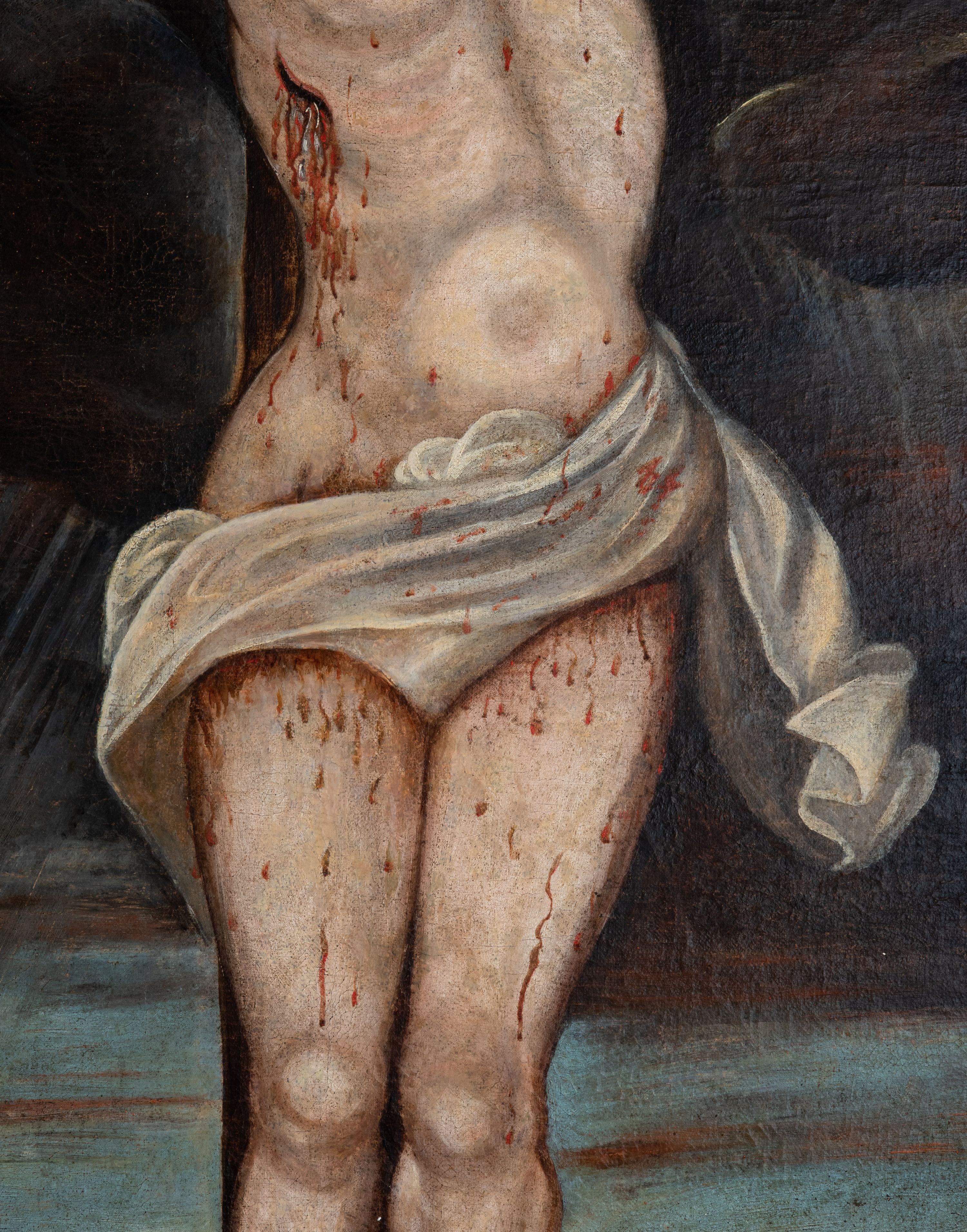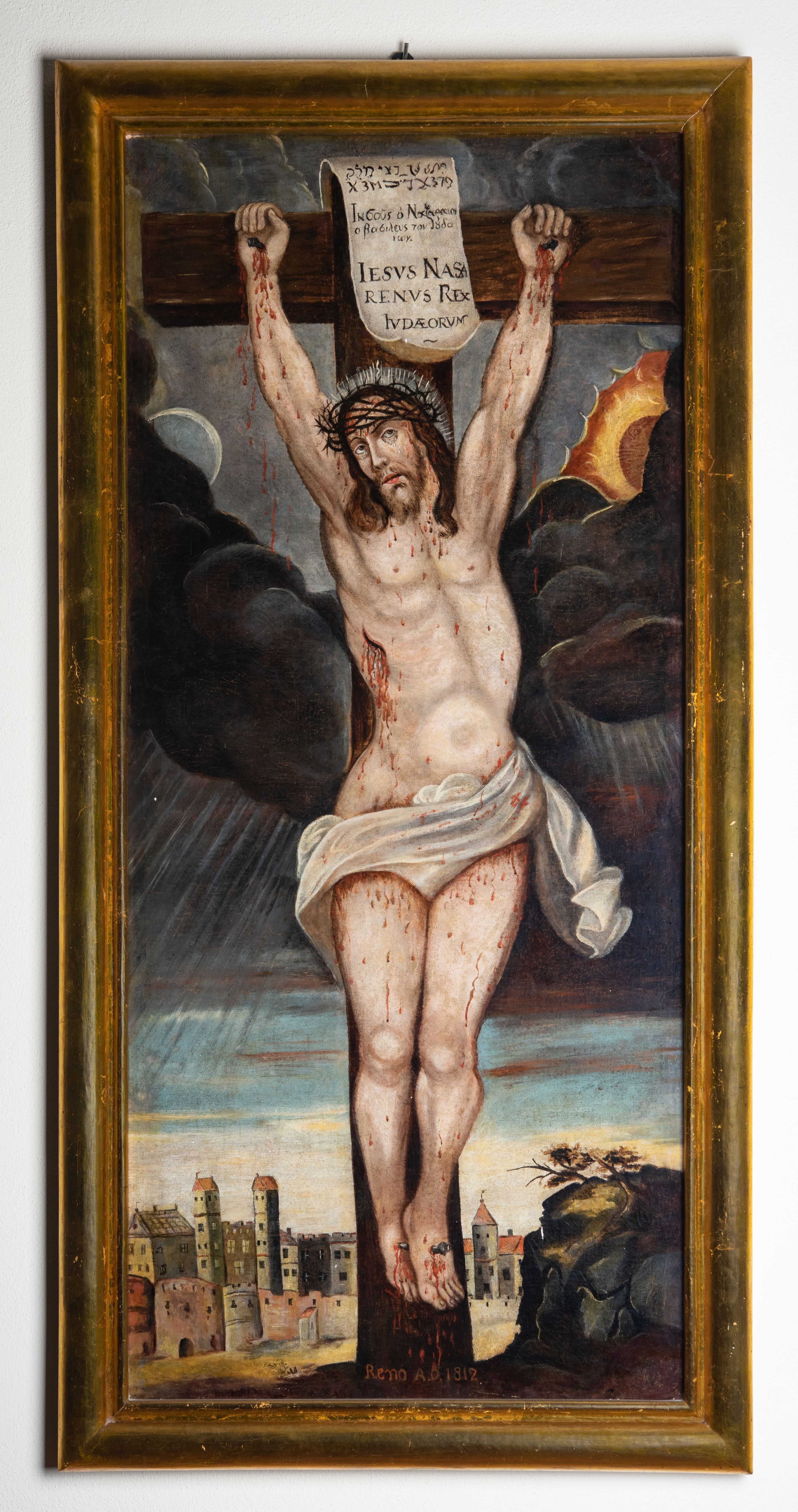 Painting depicting Christ Crucified was created in 17th century and it originates from the former temple in Zembrzyce. The work was renovated two times - in 1812 and in 1989.