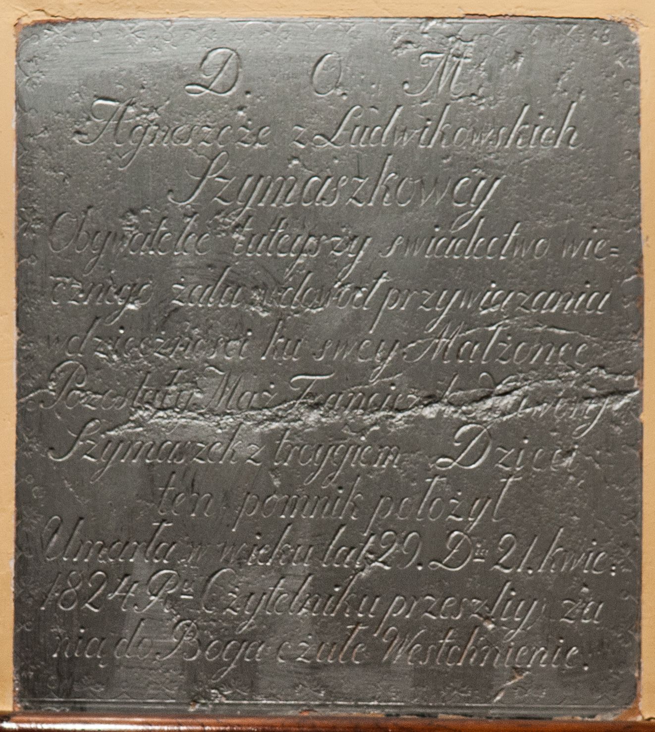 Agata Felczyńska , "Epitaph plaque of Agnieszka (née Ludwikowska) Szymaszkowa", [in:] "The Sacred Lesser Poland Heritage", 2026, source: https://sdm.upjp2.edu.pl/en/works/epitaph-plaque-of-agnieszka-nee-ludwikowska-szymaszkowa