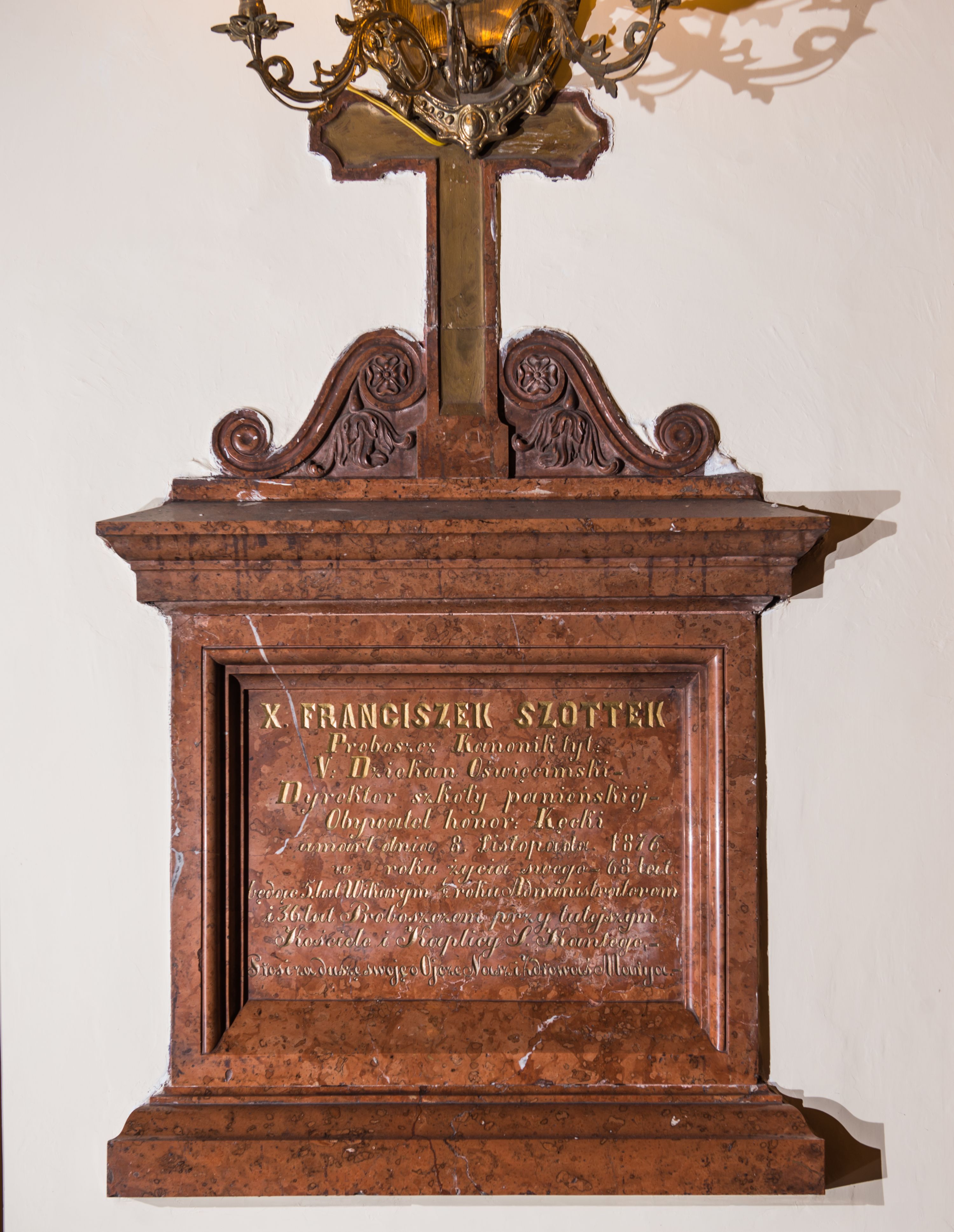 Among the epitaph plaques in the parish church in Kęty, there is a plaque commemorating one of the local parish priests, Father Franciszek Szottek, who lived in the years 1808-1876. He was awarded the title of an Honorary Citizen of the town of Kęty for a number of merits for the town and its parish.