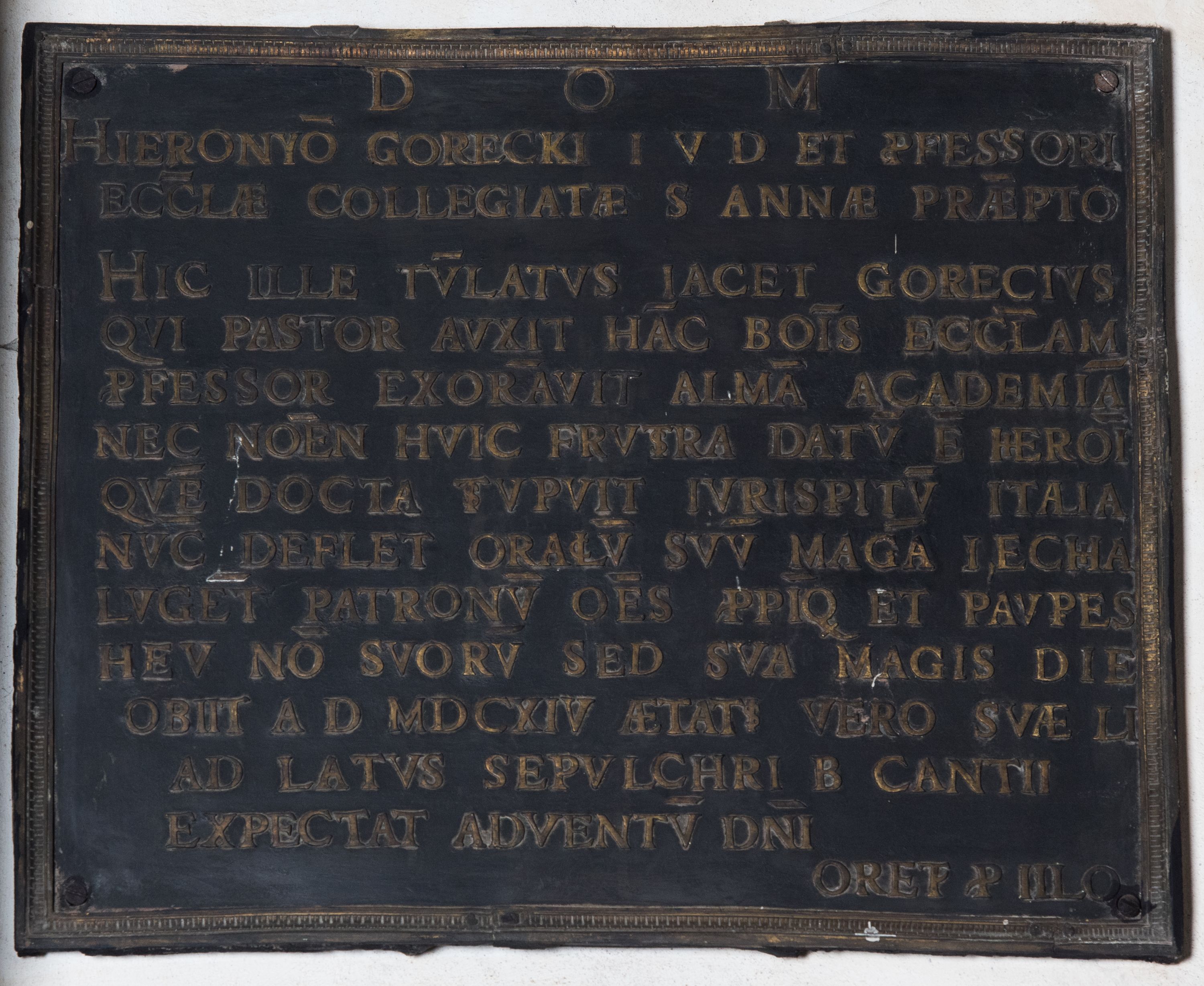 Epitaph plaque of Hieronim Górecki, who deceased in 1614.