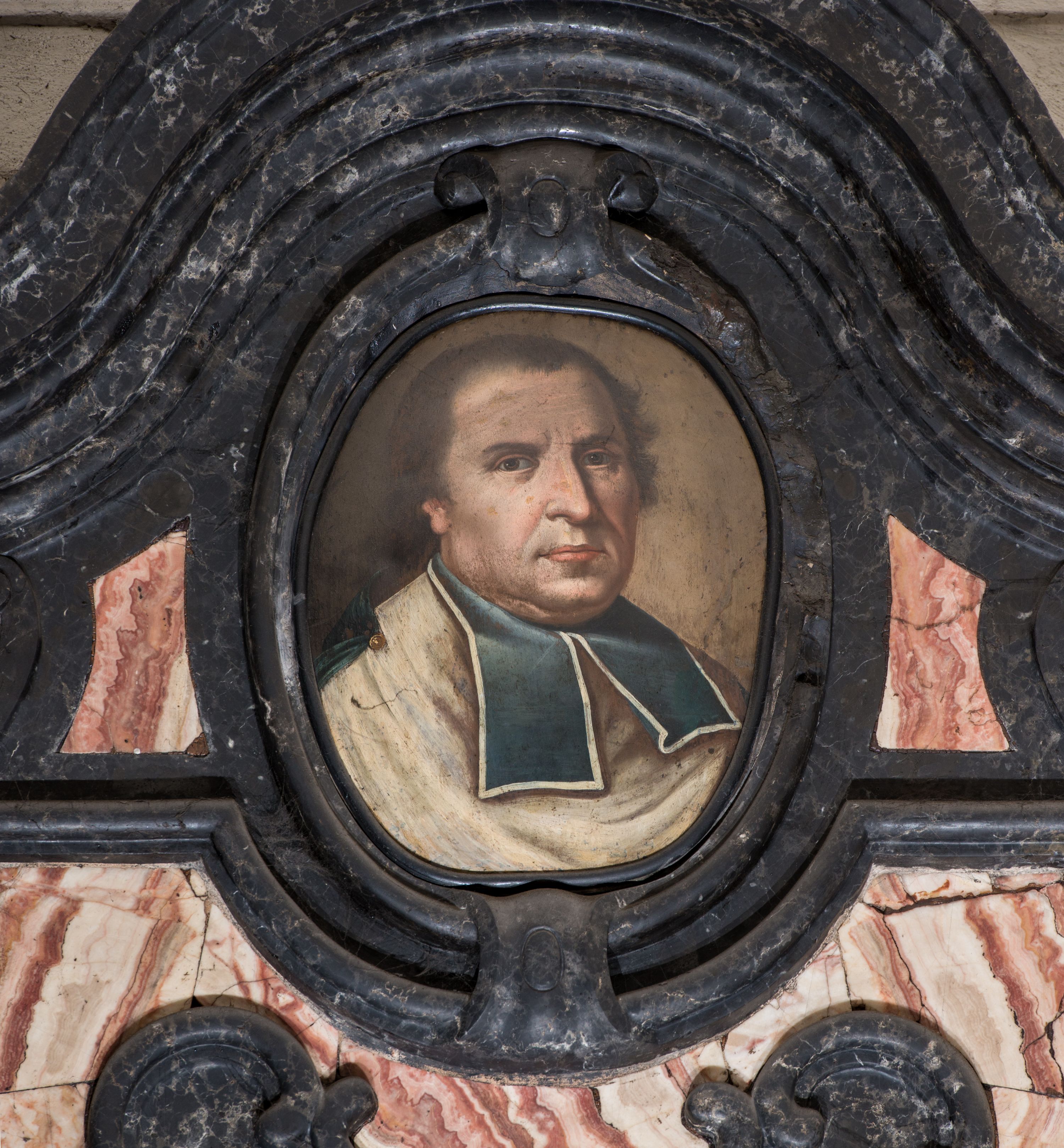 The epitaph belongs to a group of identical works created in the stonemasonry centre in Dębnik, near Cracow. Five such epitaph plaques were ordered by bishop Franciszek Potkański for the Wawel Cathedral in order to commemorate the dignitaries of distinguished service to the cathedral. In this way, Stanisław Chomentowski, the Voivode of Mazovia (d. in 1728) was honoured in 1786. Identical epitaph plaques – characterised by a rococo form, a subtle drawing, with campanula ornament on the sides and an oval portrait crowned with an undulating cornice – commemorate Stanisław Hieronim Podkański at the Dominican Church in Cracow (around 1780), Ignacy Bieńkowski in the Church in Kije (1793) and father Antoni Żołędziowski (1822-1823) at the St. Anne's Church in Cracow.