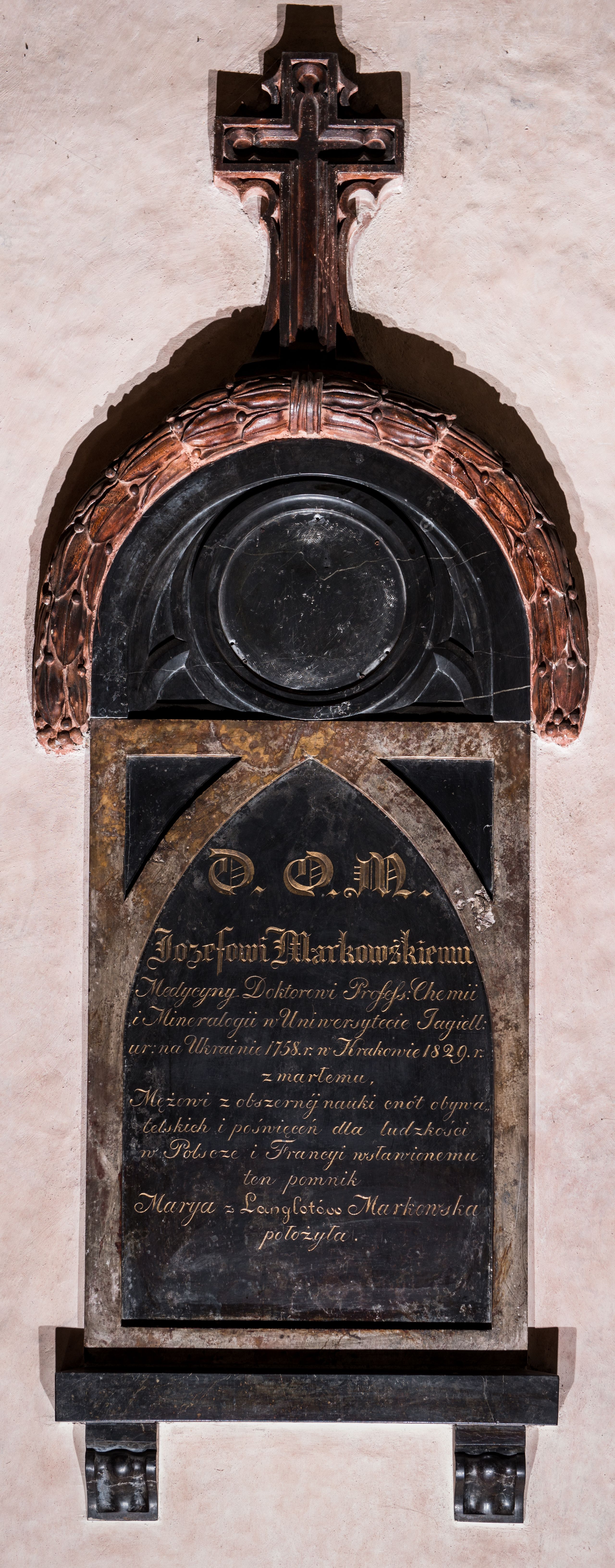 The epitaph plaque of Józef Markowski, a doctor of chemistry, who deceased in 1829.