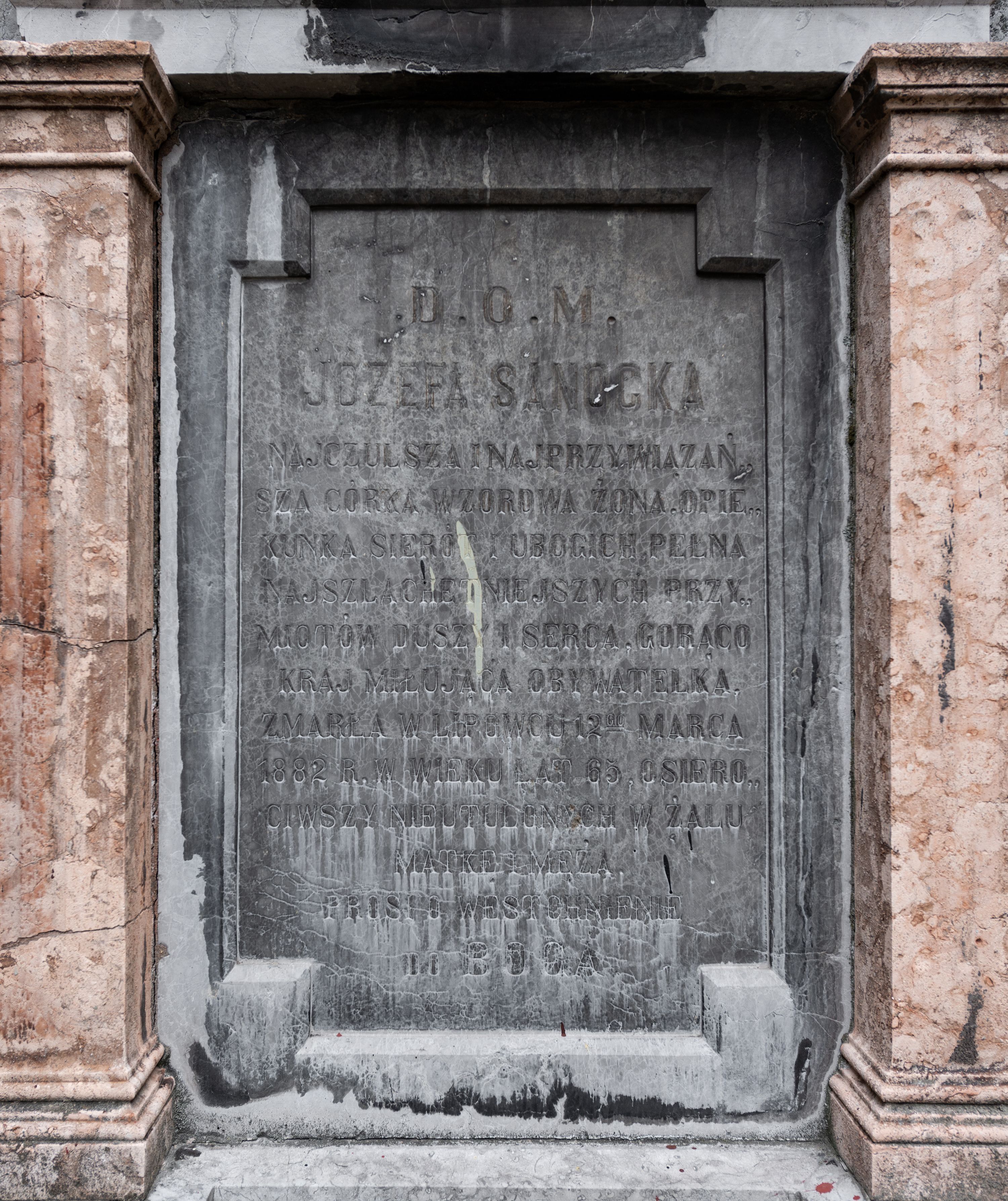 The epitaph plaque of Józefa Sanocka on the outside wall of the church dedicated to All Saints in Babice constitutes an example of the 19th century commemorative form with architectural structure.