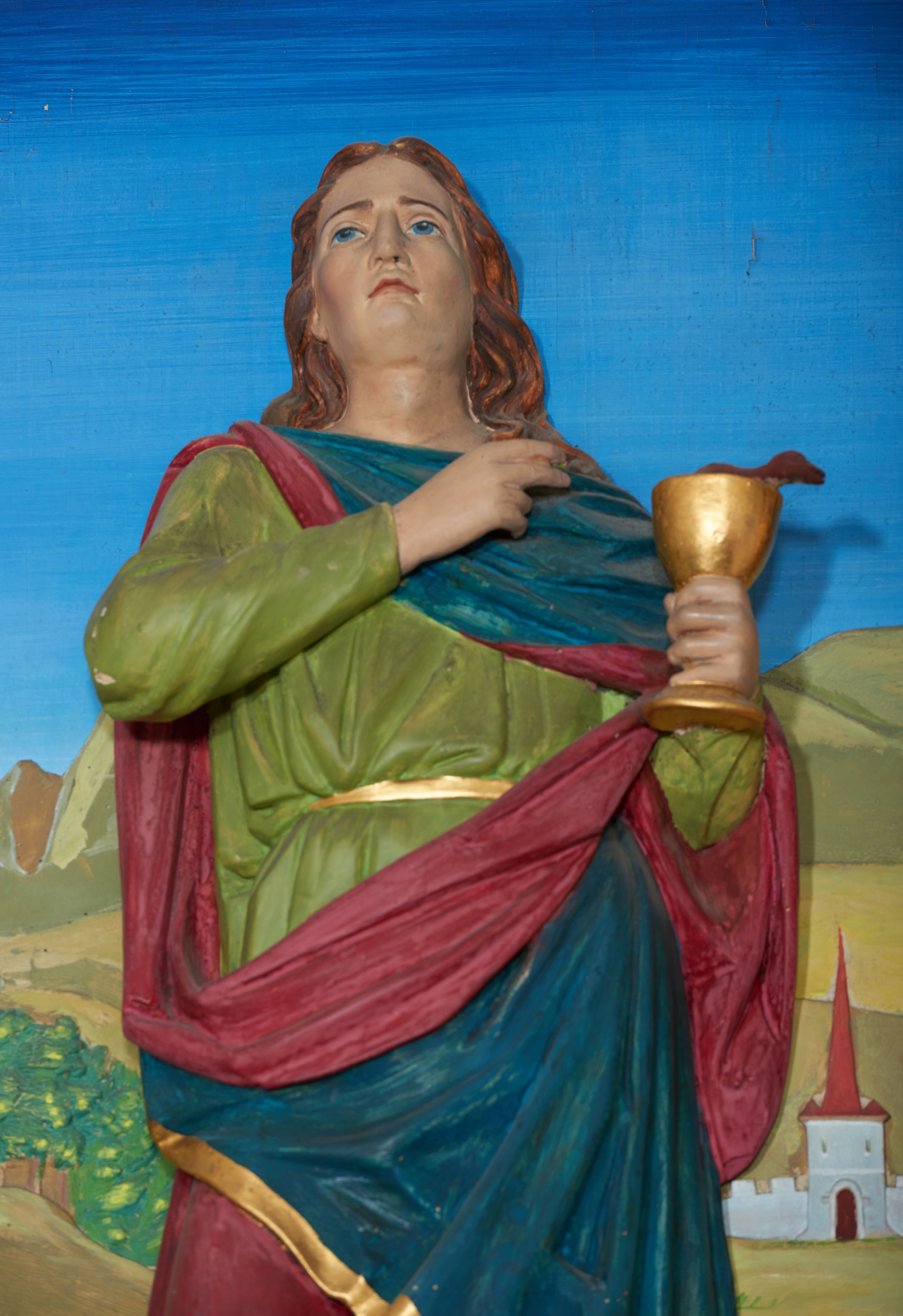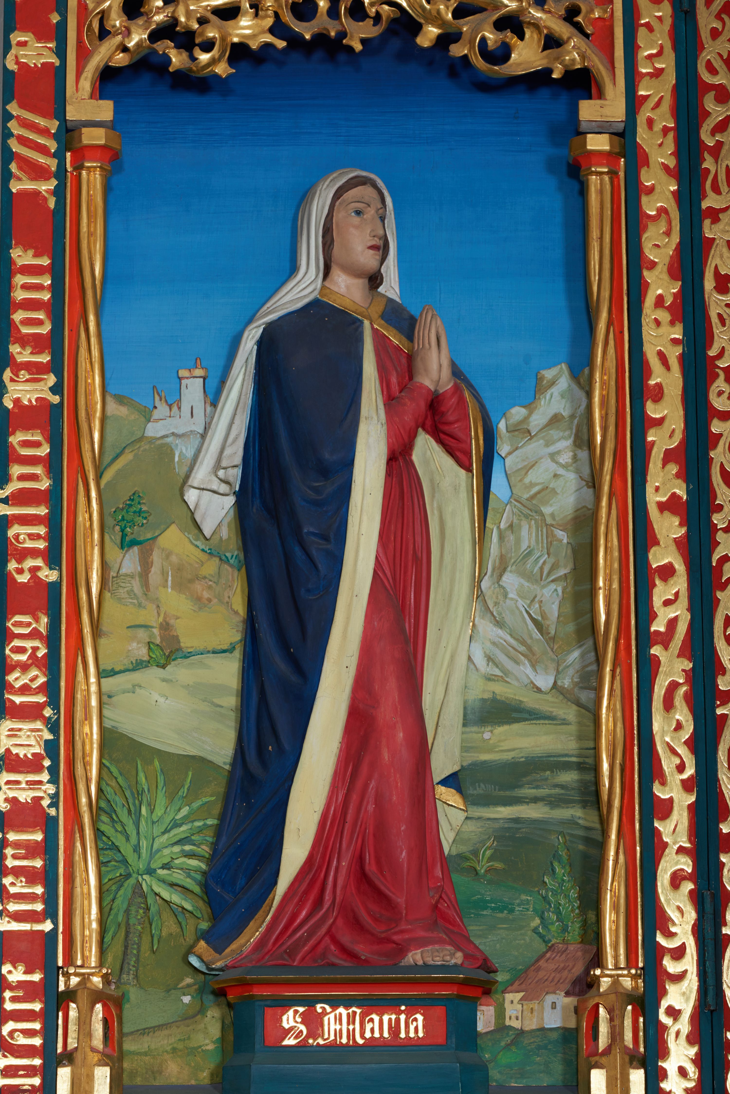 The current high altar in the church in Łazany was built in 1892 from the foundation of the village owner – Julian Brzezinski Dunin – and his family. The reredos was designed by a Cracovian architect and restorer, Tadeusz Stryjeński, and was created by his cooperating sculptor, Kazimierz Wakulski. Consecration of the altar took place in 1893, and was performed by the bishop Albin Dunajewski. Previously, at least two baroque altars, currently non-existent ones, were in the location of the present high altar in the church of Łazany.