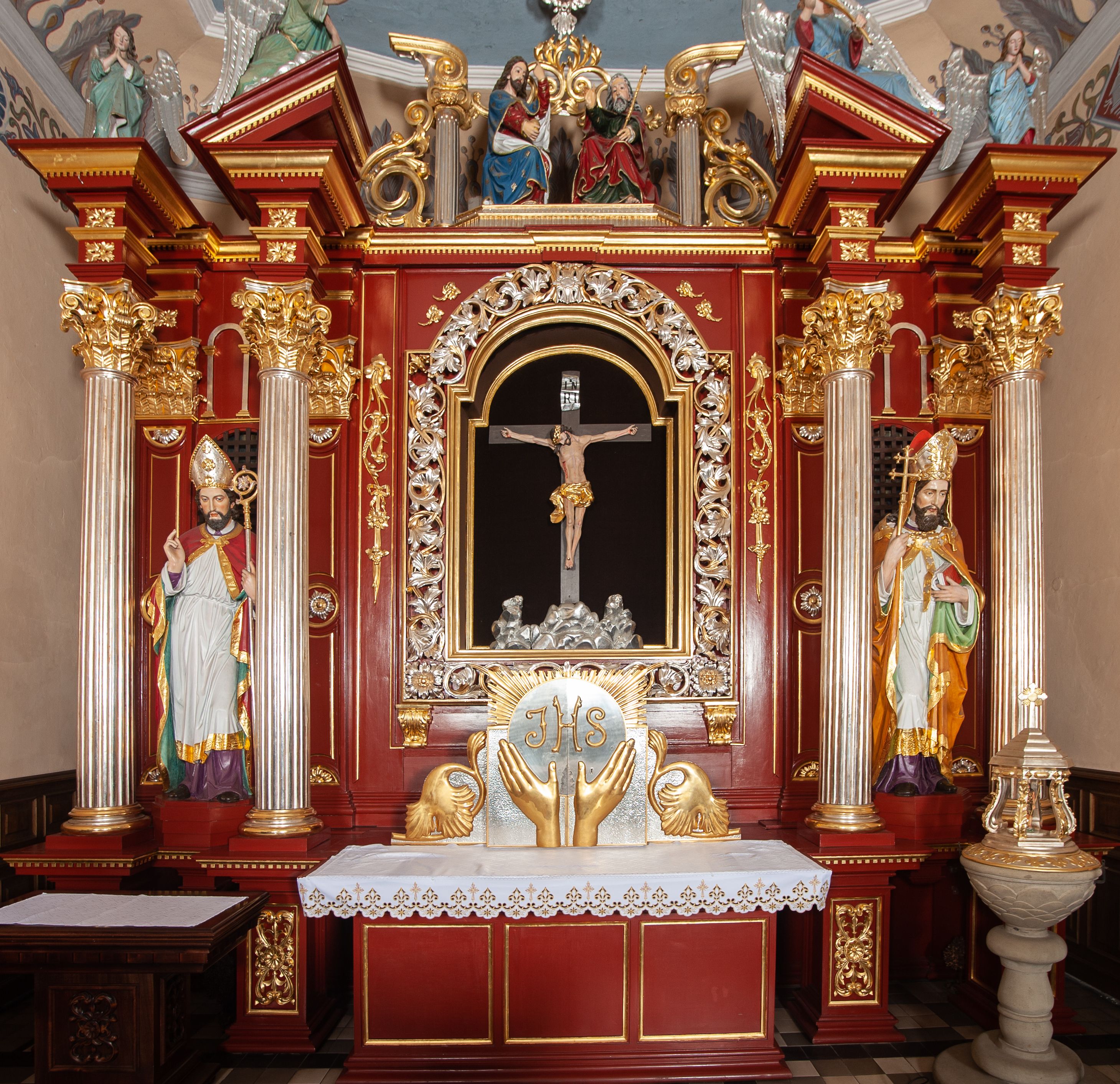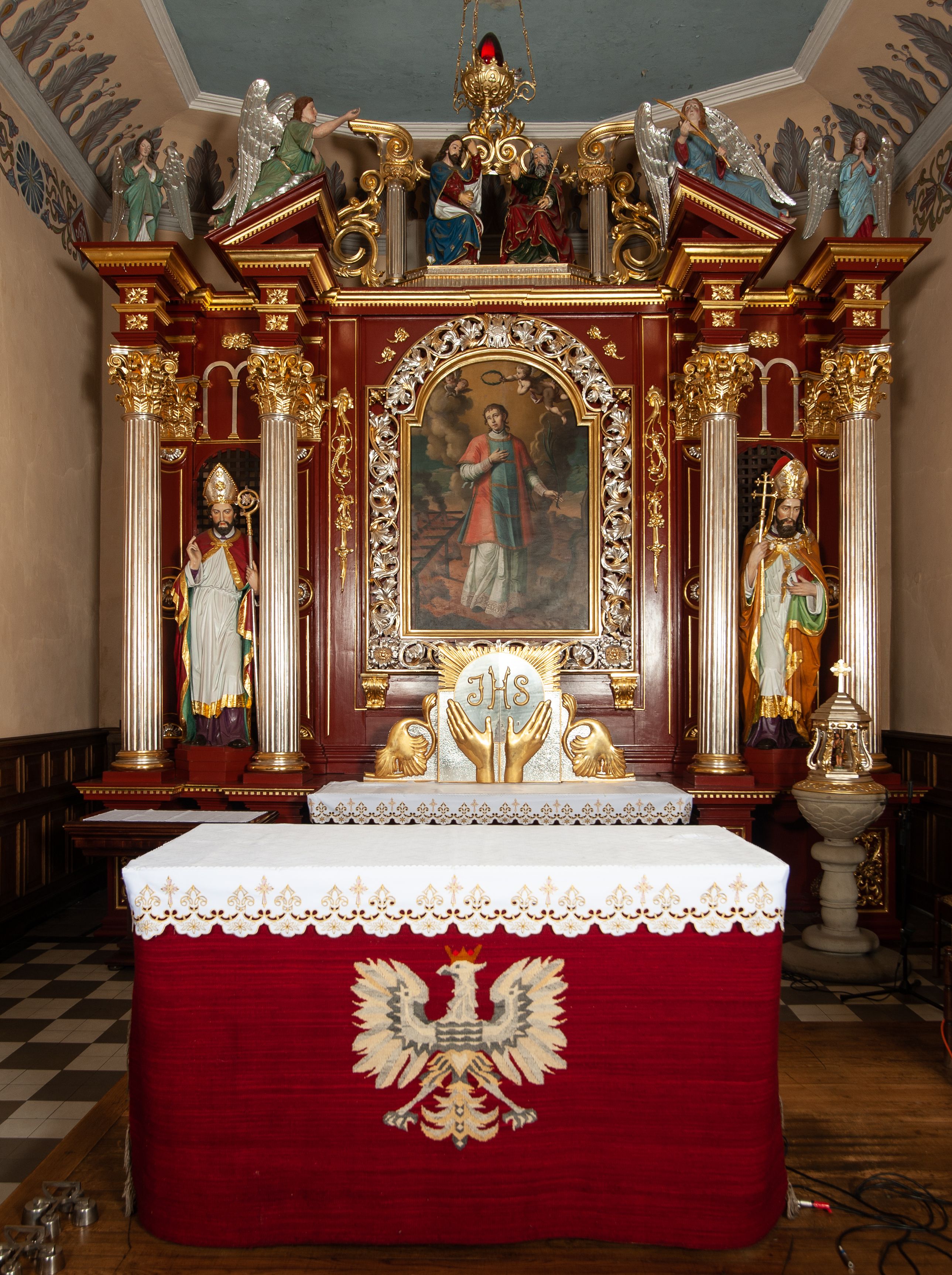 The high altar of the church in Radziszów exhibits the characteristics of the Neo-Baroque style. According to sources, the structure was created in 1822 but many of them inform that fragments of an older reredoses had been used partially for the structure to be created.