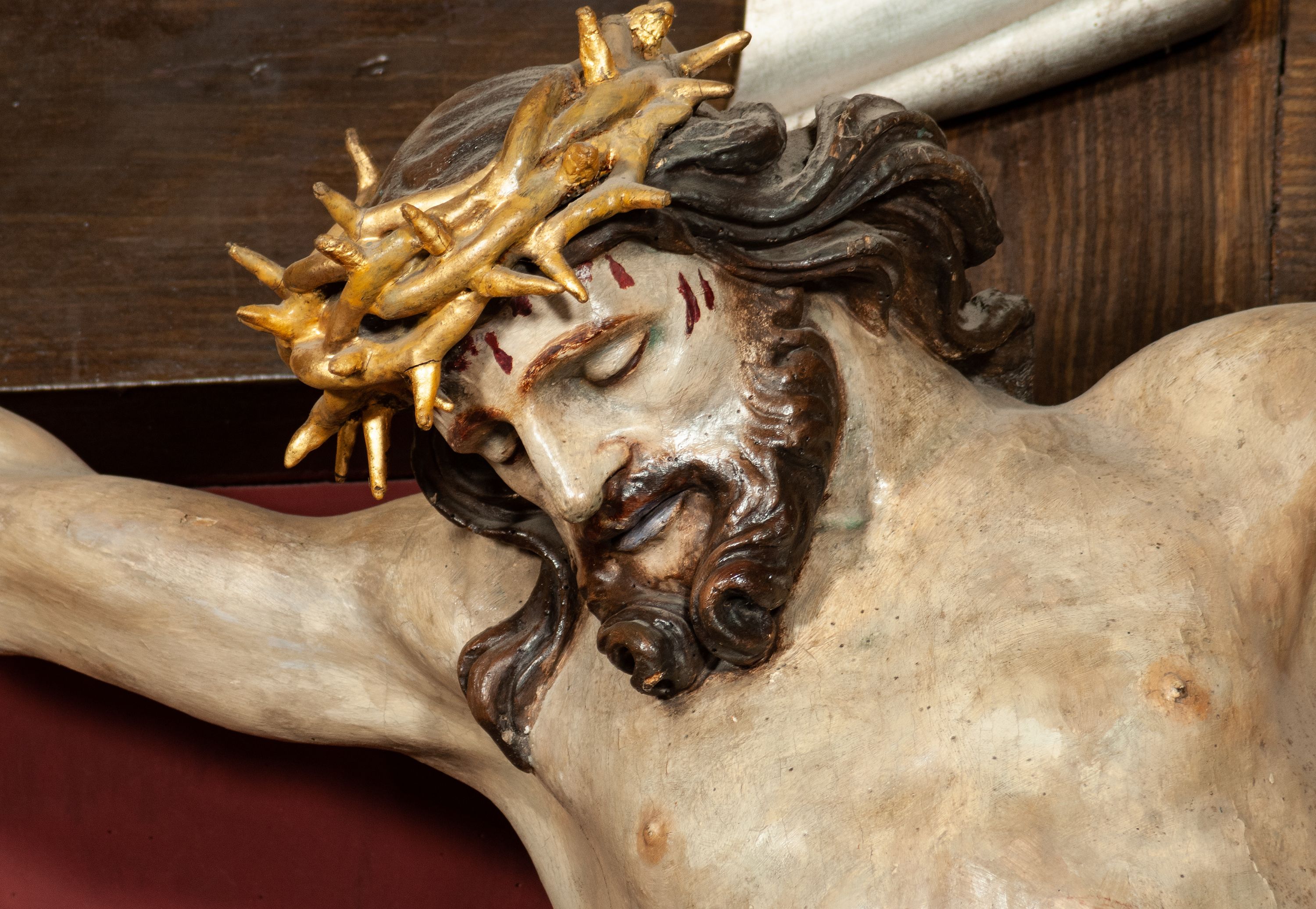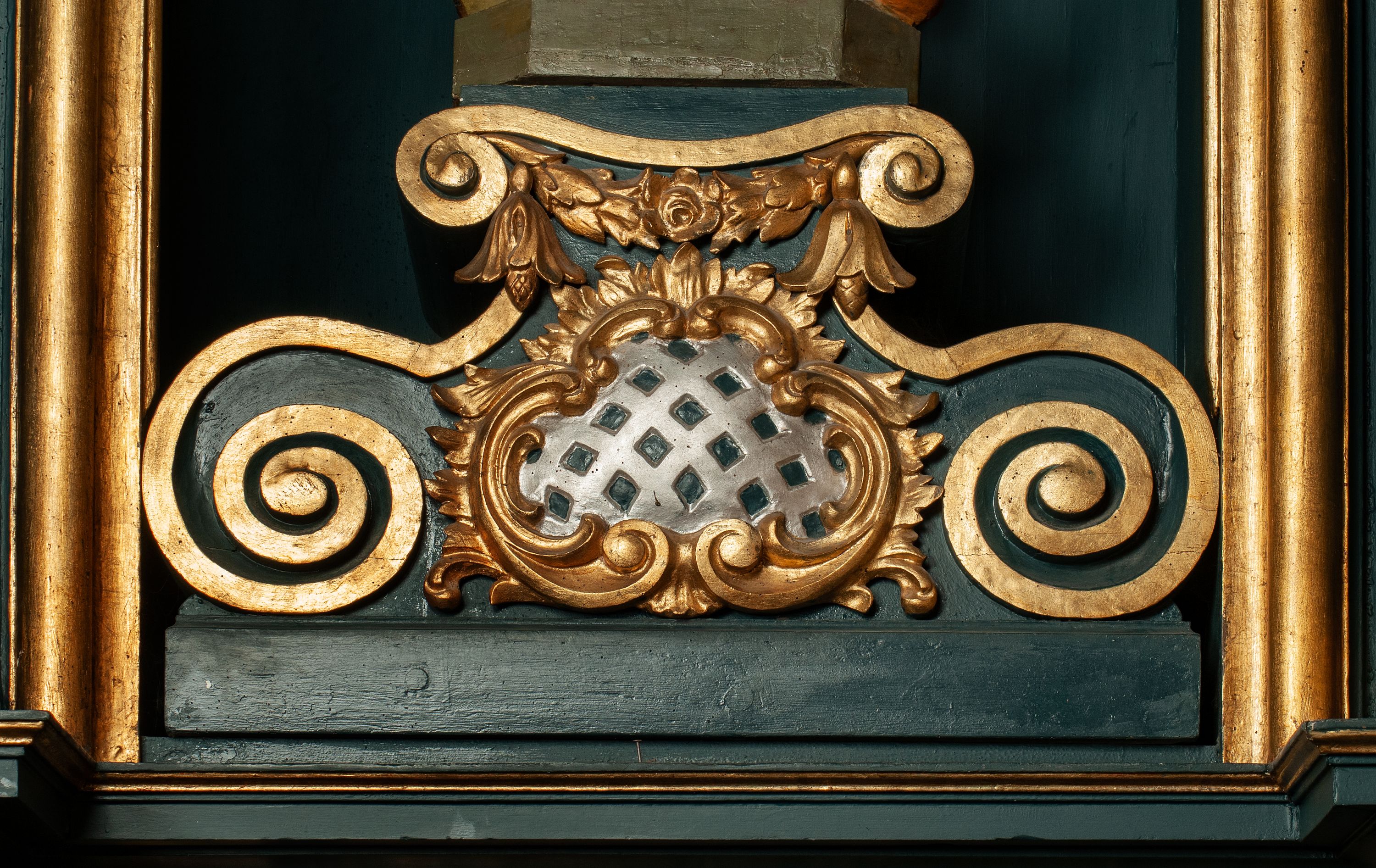 The high altar in the Church of Reformed Fathers in Wieliczka was created after the church fire in 1718. Before the date of its consecration (1721), it was built from the foundation of the Grabowski and the Luxarowicz families of Wieliczka. It was consecrated along with other reredoses by the Bishop of Kiev, Adam Tarło, on August 28, 1721. In the main area there was an 18th-century crucifix and the image of St. Michael the Archangel in an altar finial, while in 1937, on the sides of the reredos, there were statues of St. Hedwig of Silesia and St. Casimir Jagiellon. The design according to which the work of Wieliczka was created, was also reproduced much later in the church of Reformed Fathers in Cracow, as evidenced by the 1745 contract, signed by wood carver Michał Dobkowski and carpenter Michał Miśkiewicz. These altars are characterised by simplicity and modesty of decoration, while applying monumental architecture. Both altars also meet the requirements of the Order's legislation and the Franciscan tradition glorifying the formal simplicity and modesty of works and the location of the image of Christ Crucified in the main area. The altar was built by artisans: Modest Gronalewicz, Beniamin Groński, Faustyn Gawlikowski and Maksym Ptaszkowski- employed at the construction of the burnt temple.