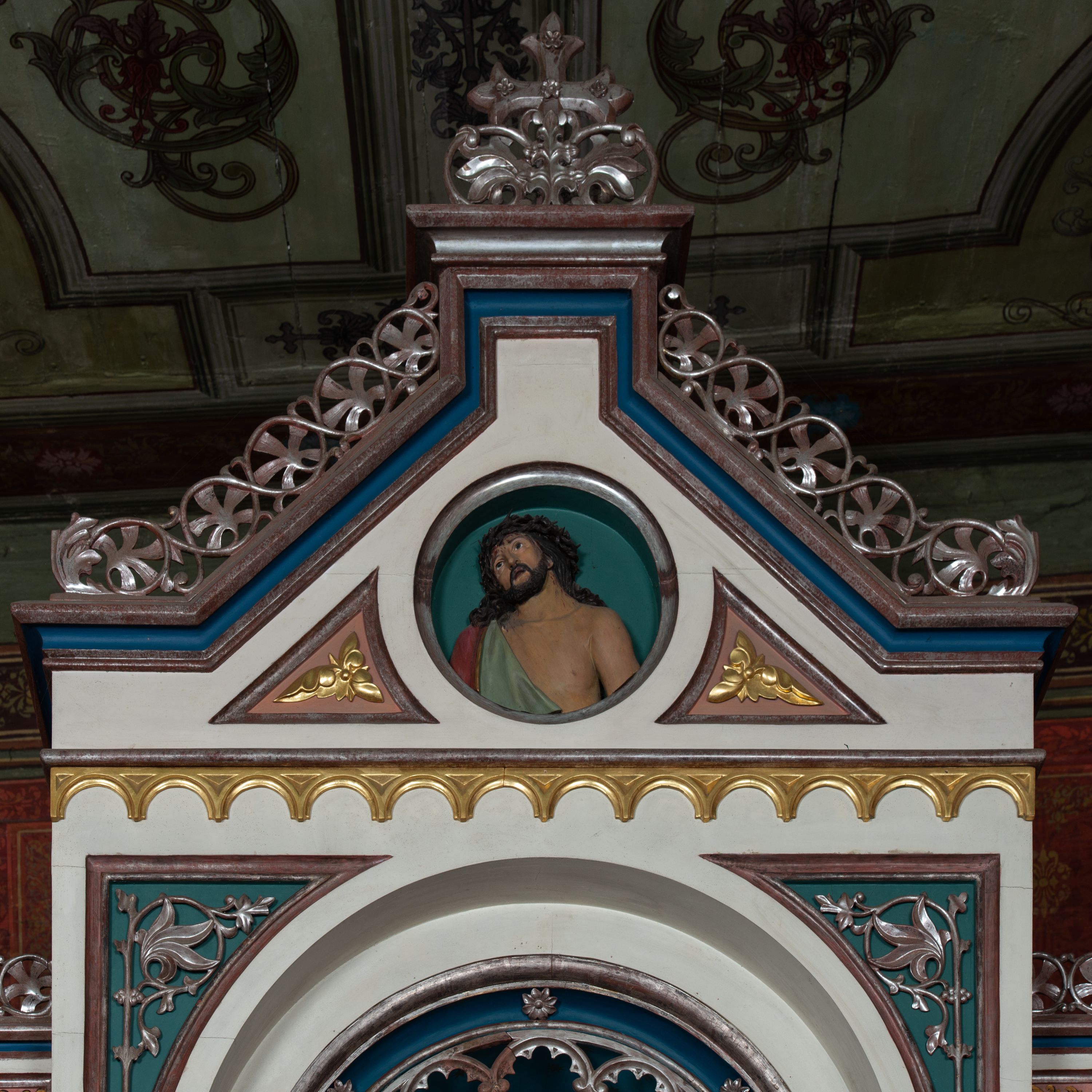 The high altar in the parish church in Gruszów is an interesting example of a neo-renaissance decor. Its structure refers to both ancient and renaissance forms.
