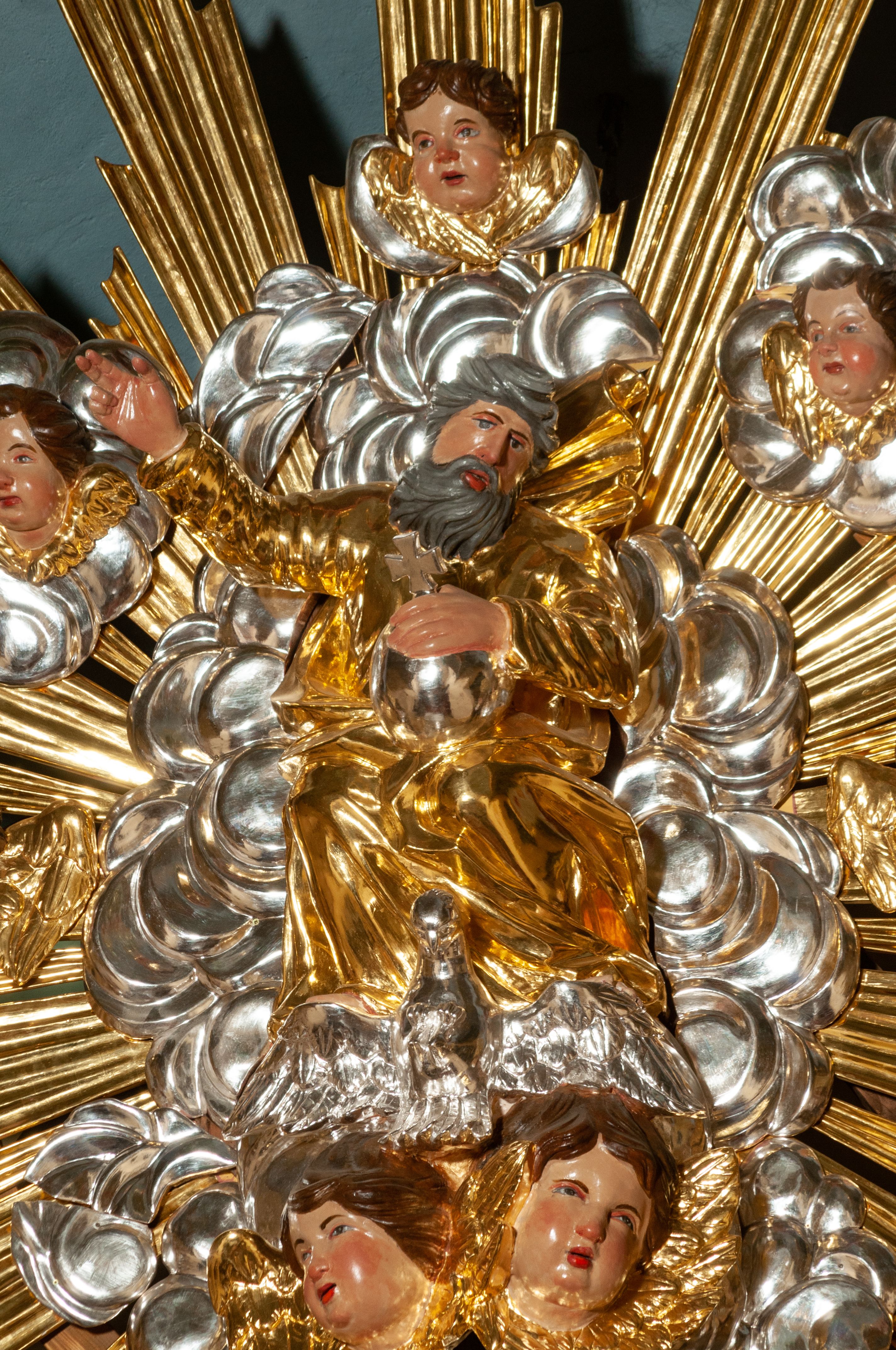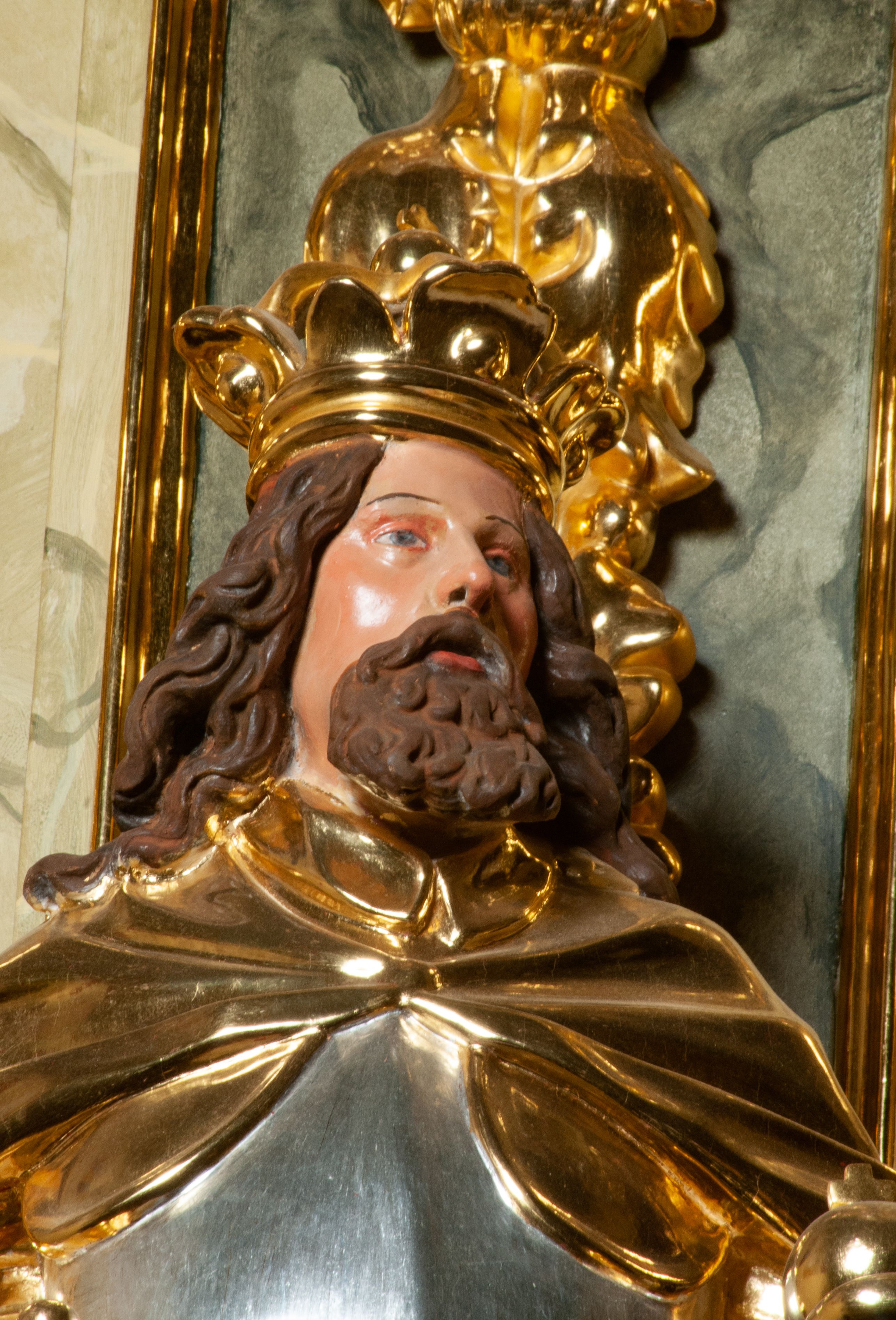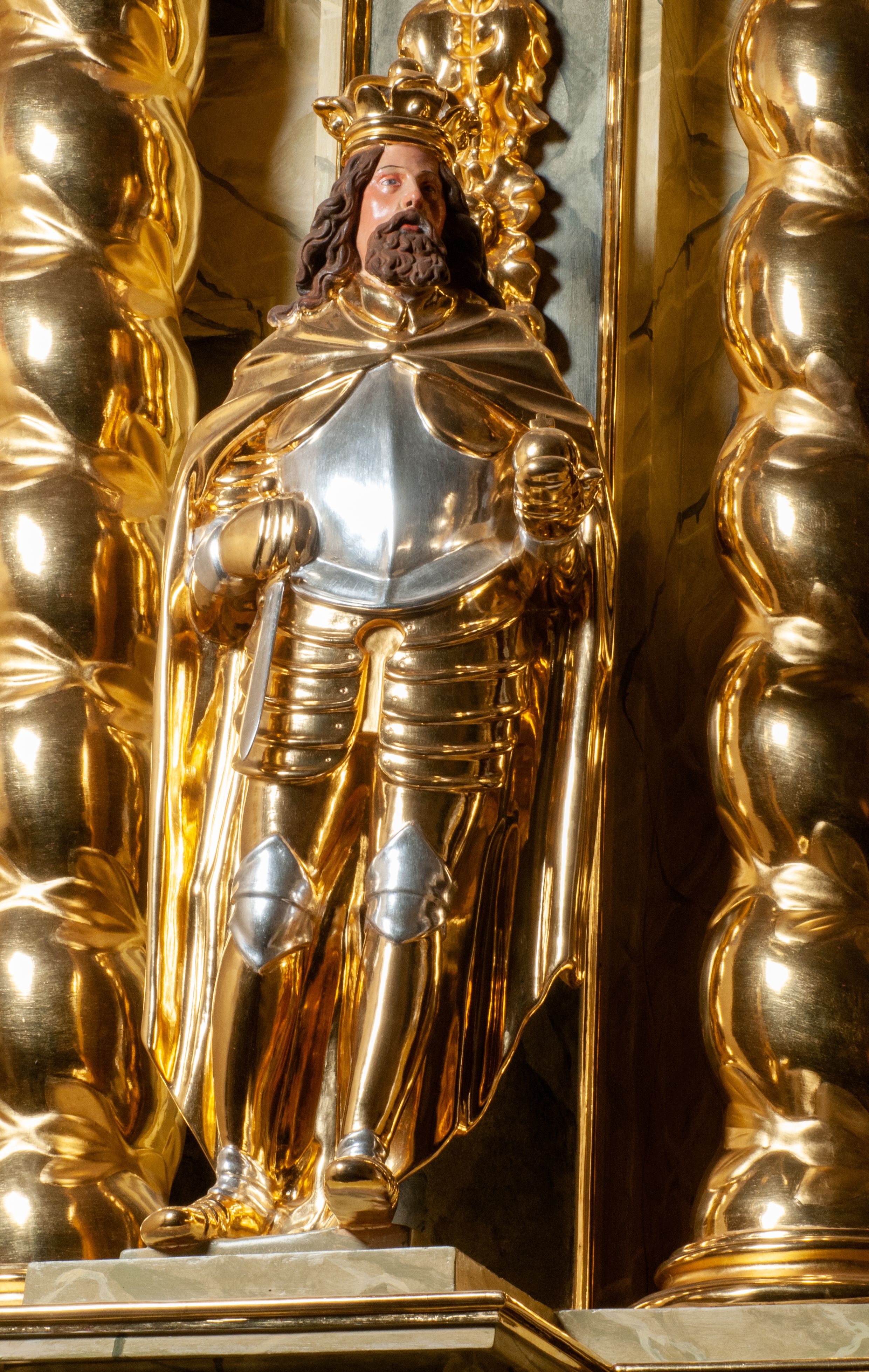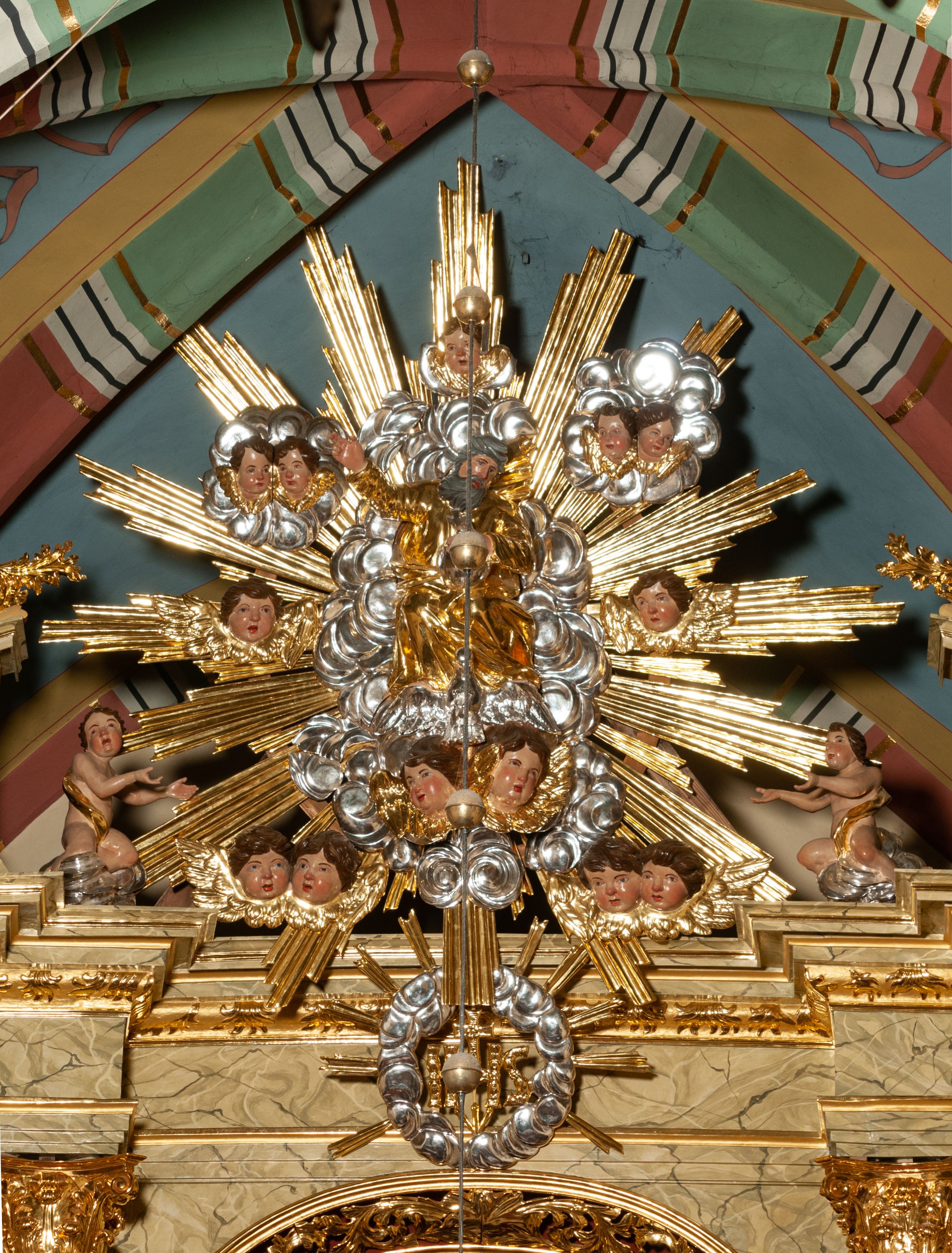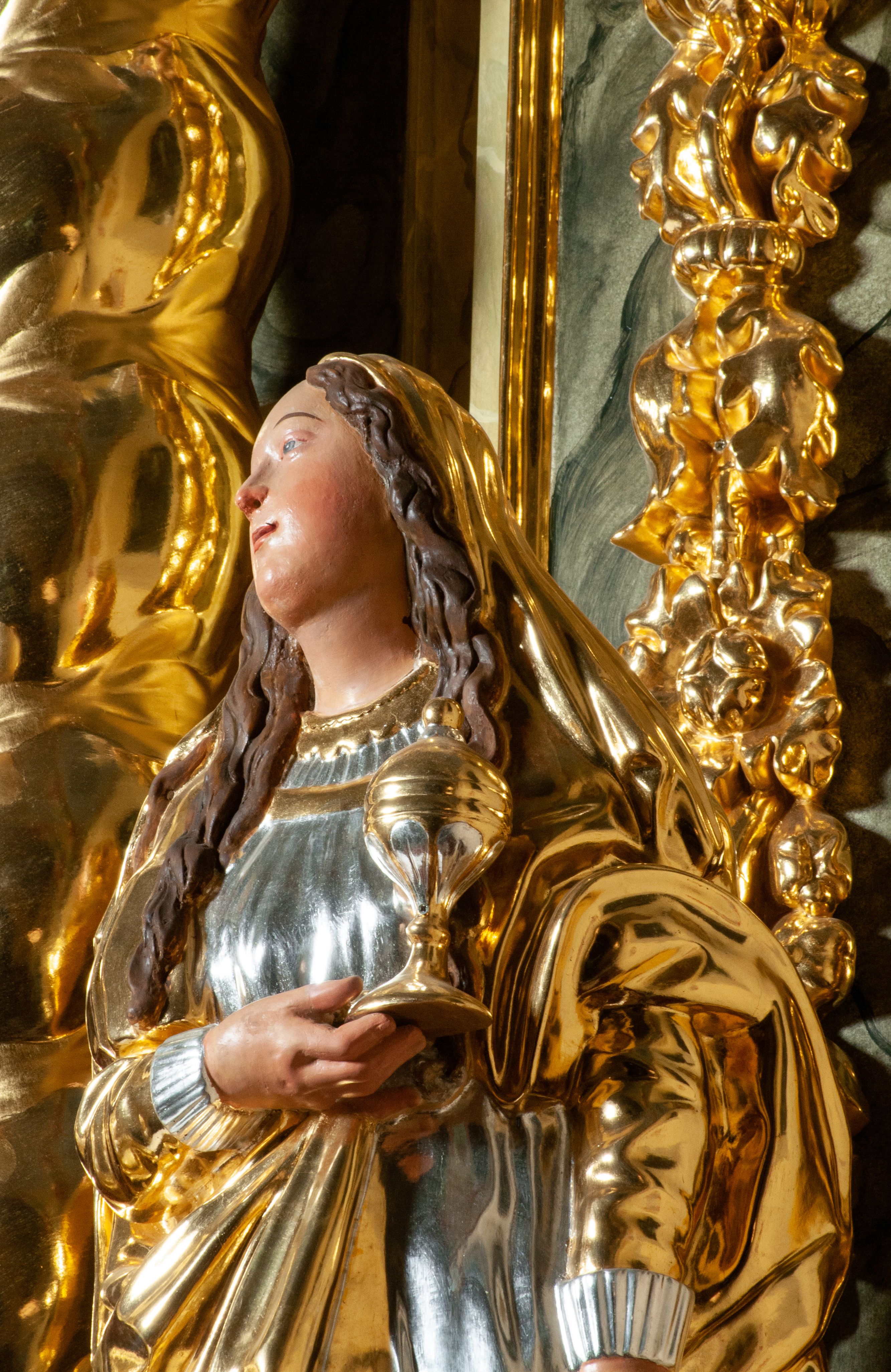 The high altar of the church in Wawrzeńczyce was built in the first half of the 18th century and rebuilt in 1870, statues of saints were added in 1877. The altar has a clear iconographic programme: on the axis there is the Holy Trinity as three figures flanked by two figures of saints who are former church patrons.