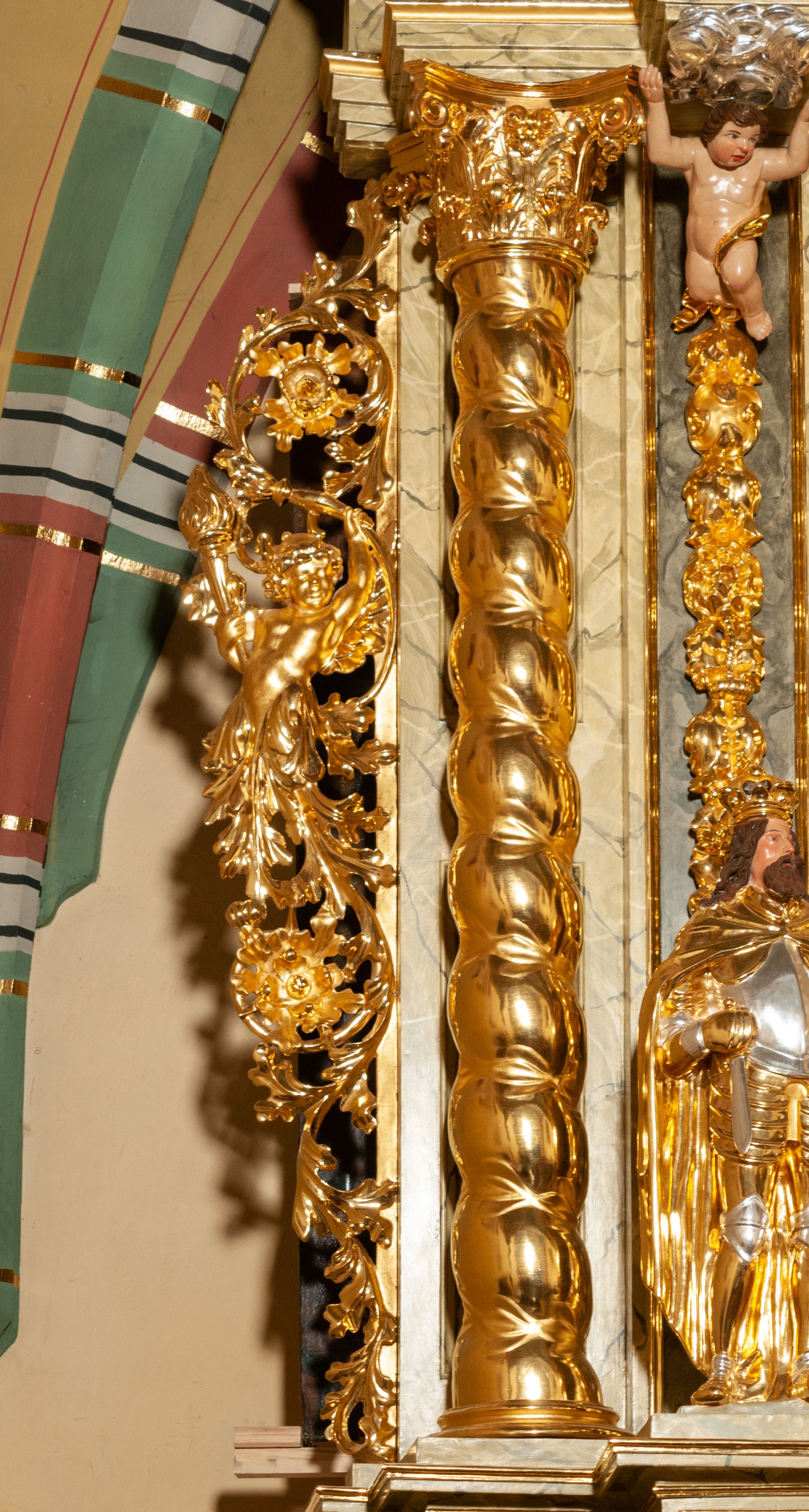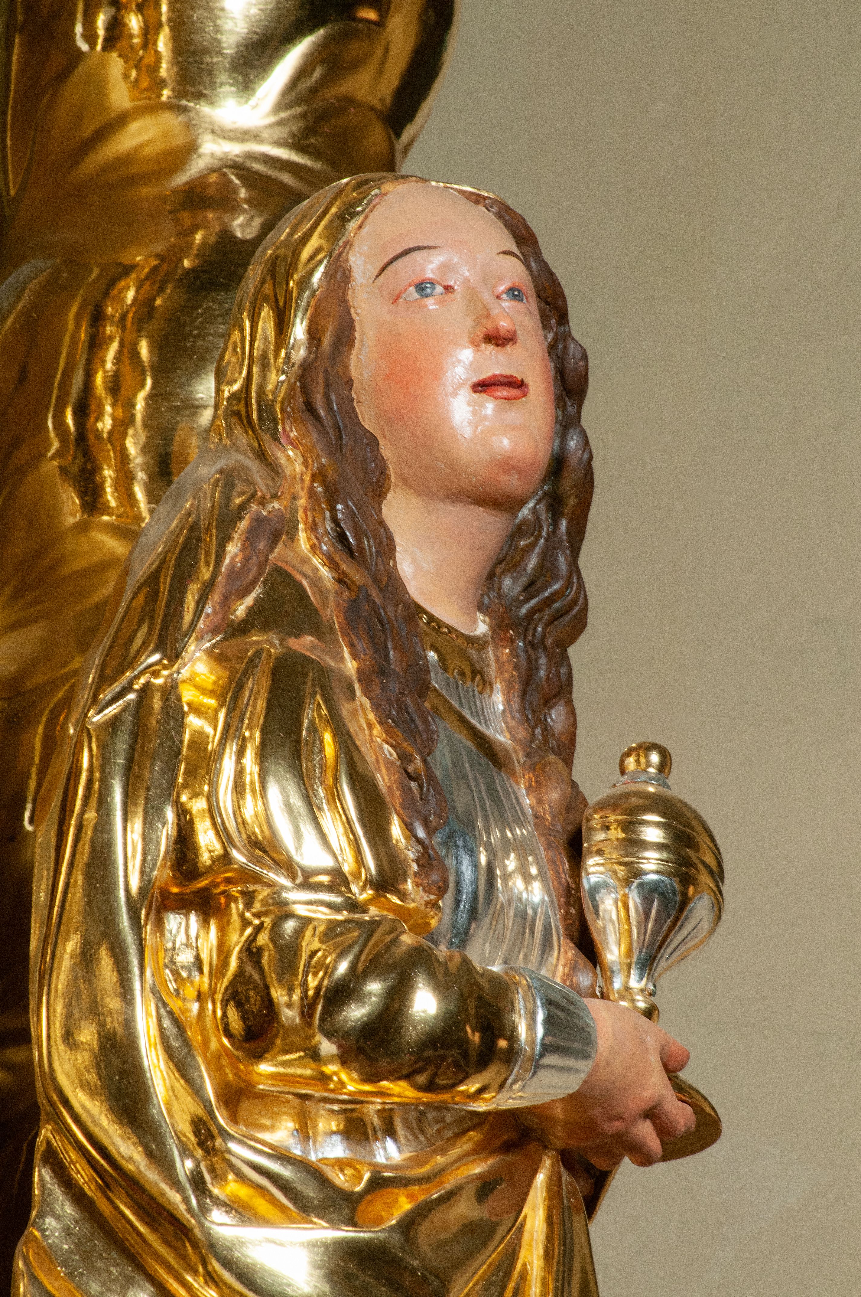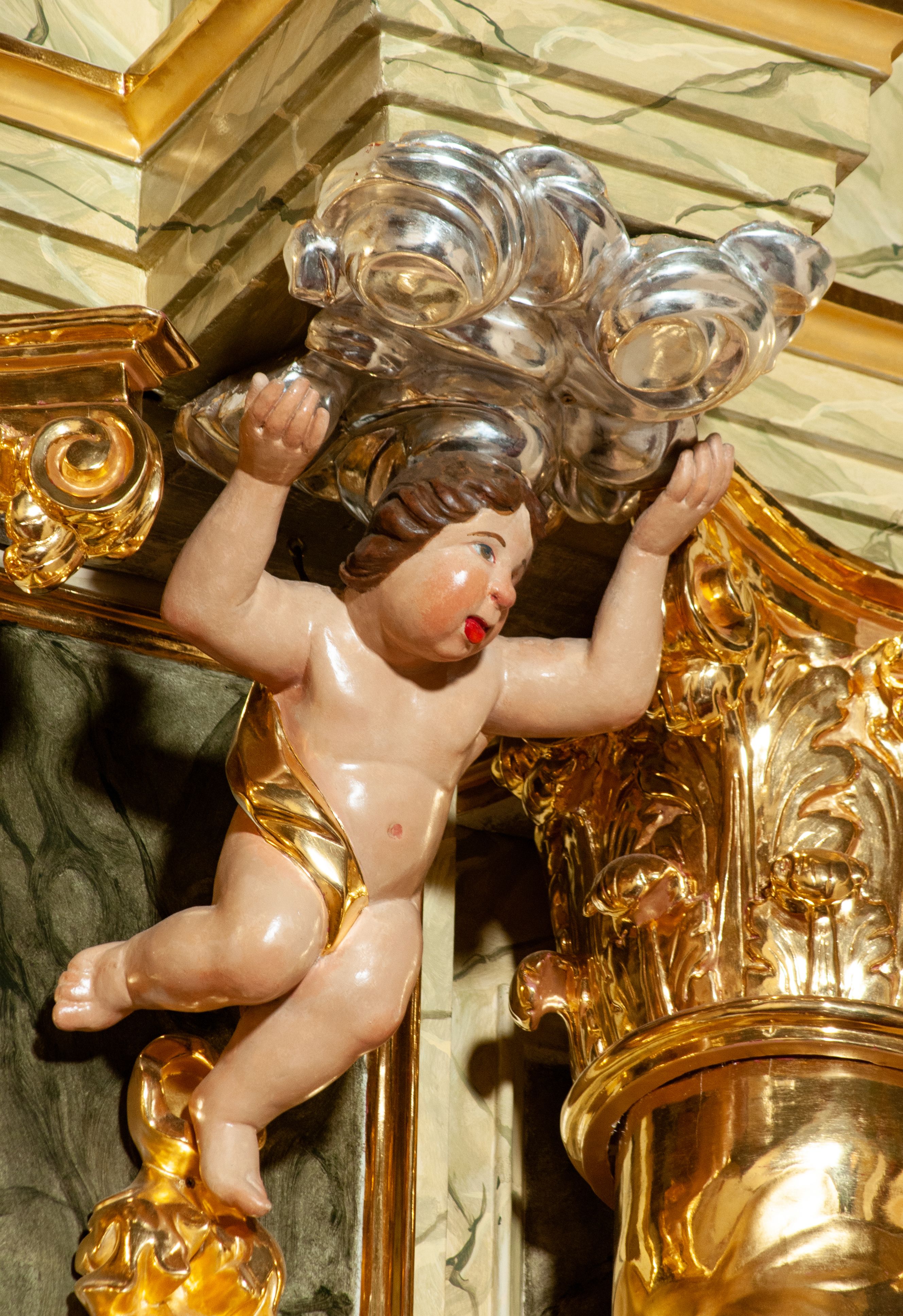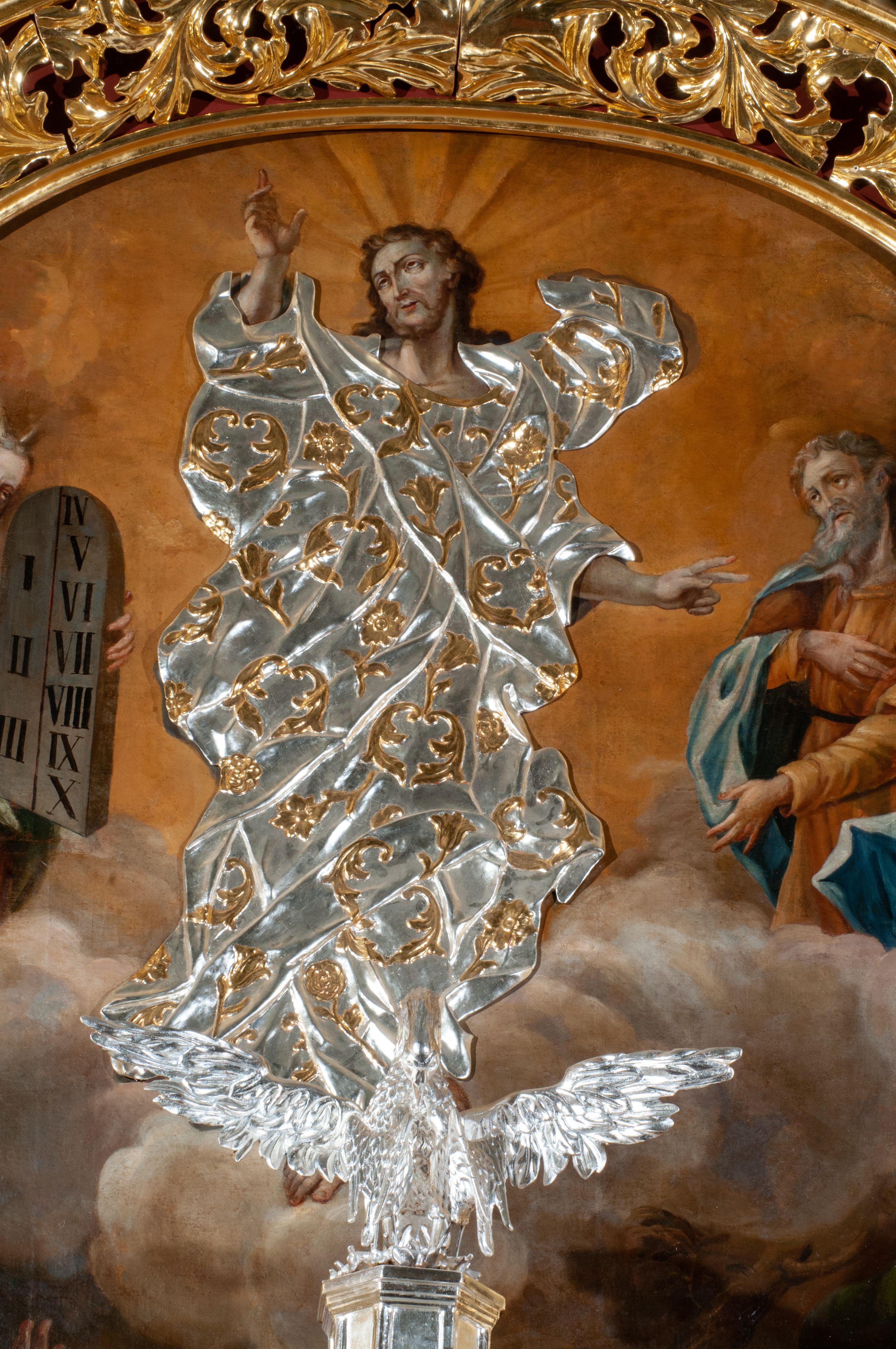 The high altar of the church in Wawrzeńczyce was built in the first half of the 18th century and rebuilt in 1870, statues of saints were added in 1877. The altar has a clear iconographic programme: on the axis there is the Holy Trinity as three figures flanked by two figures of saints who are former church patrons.