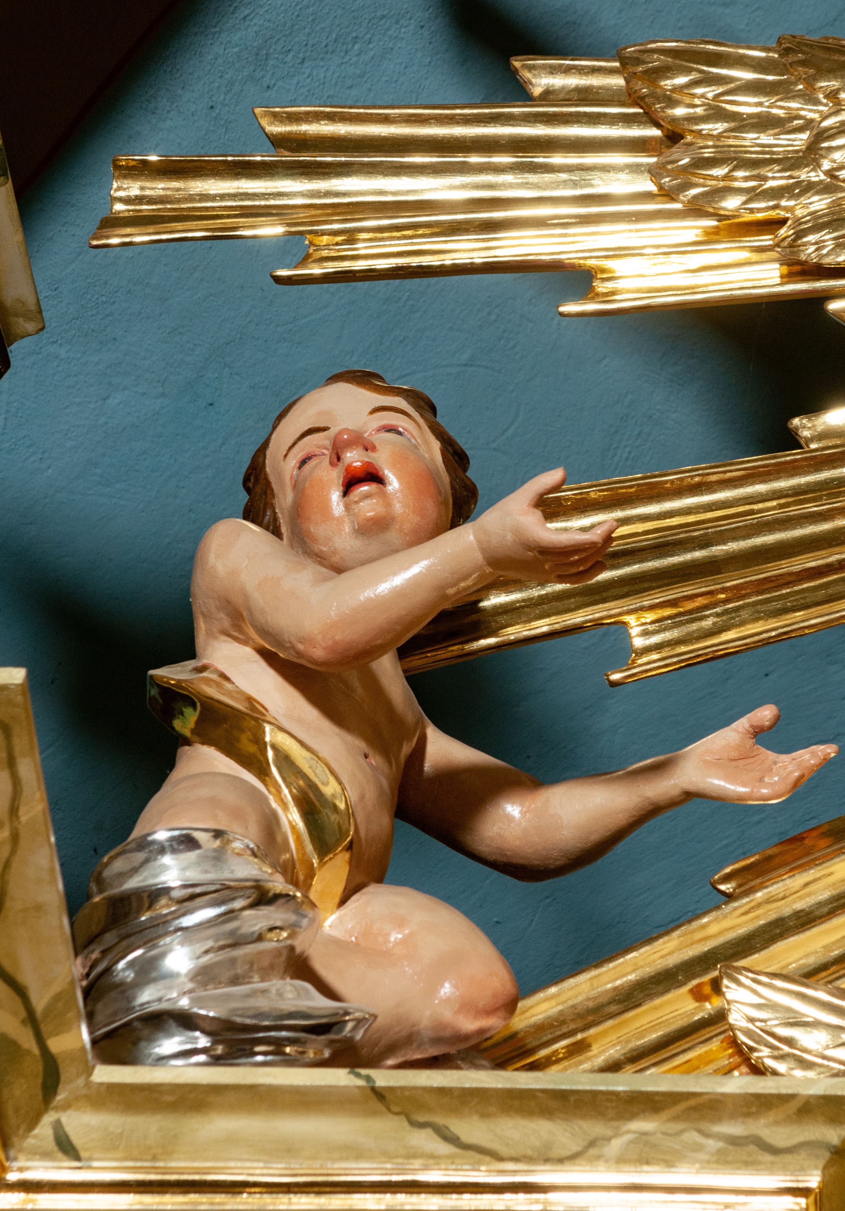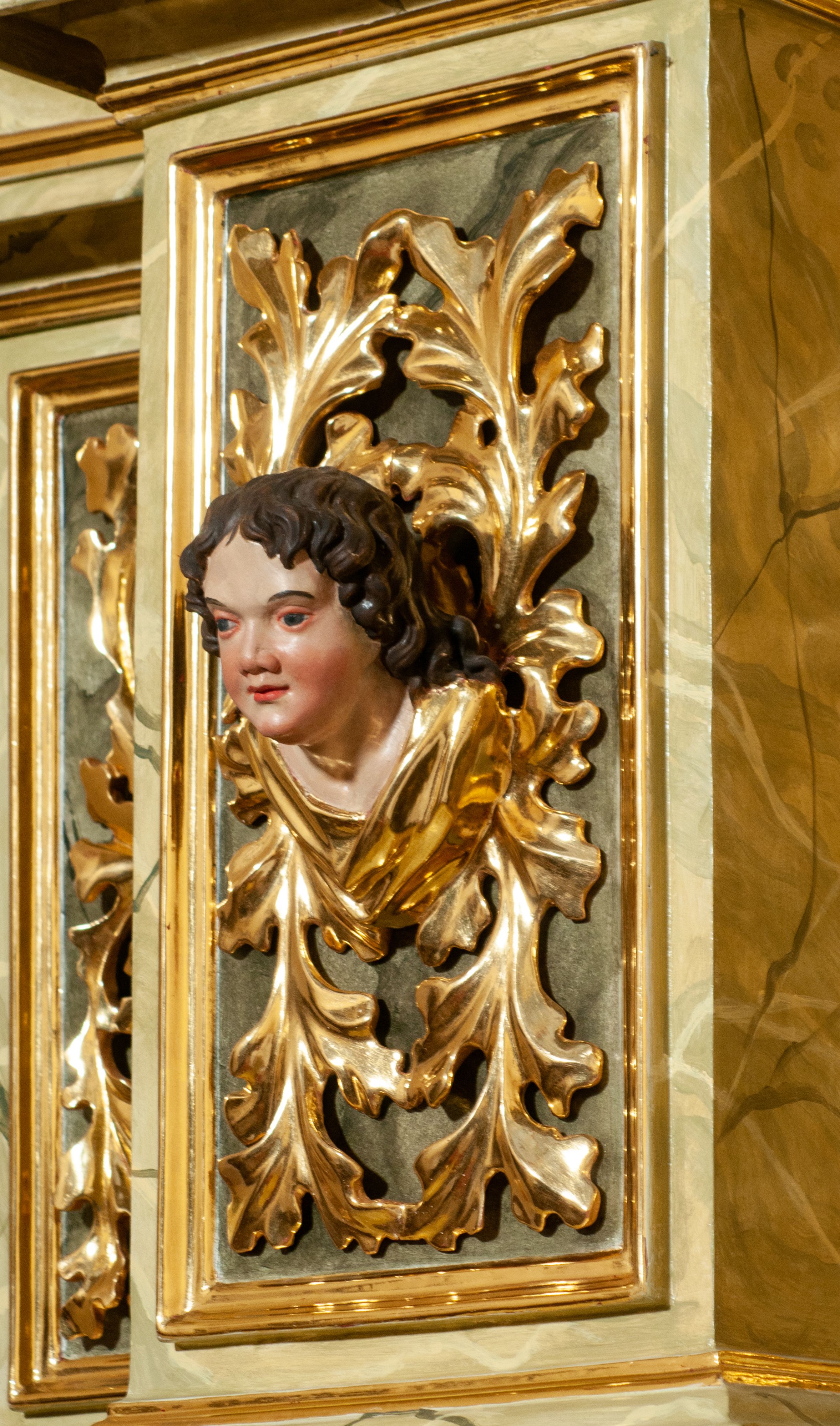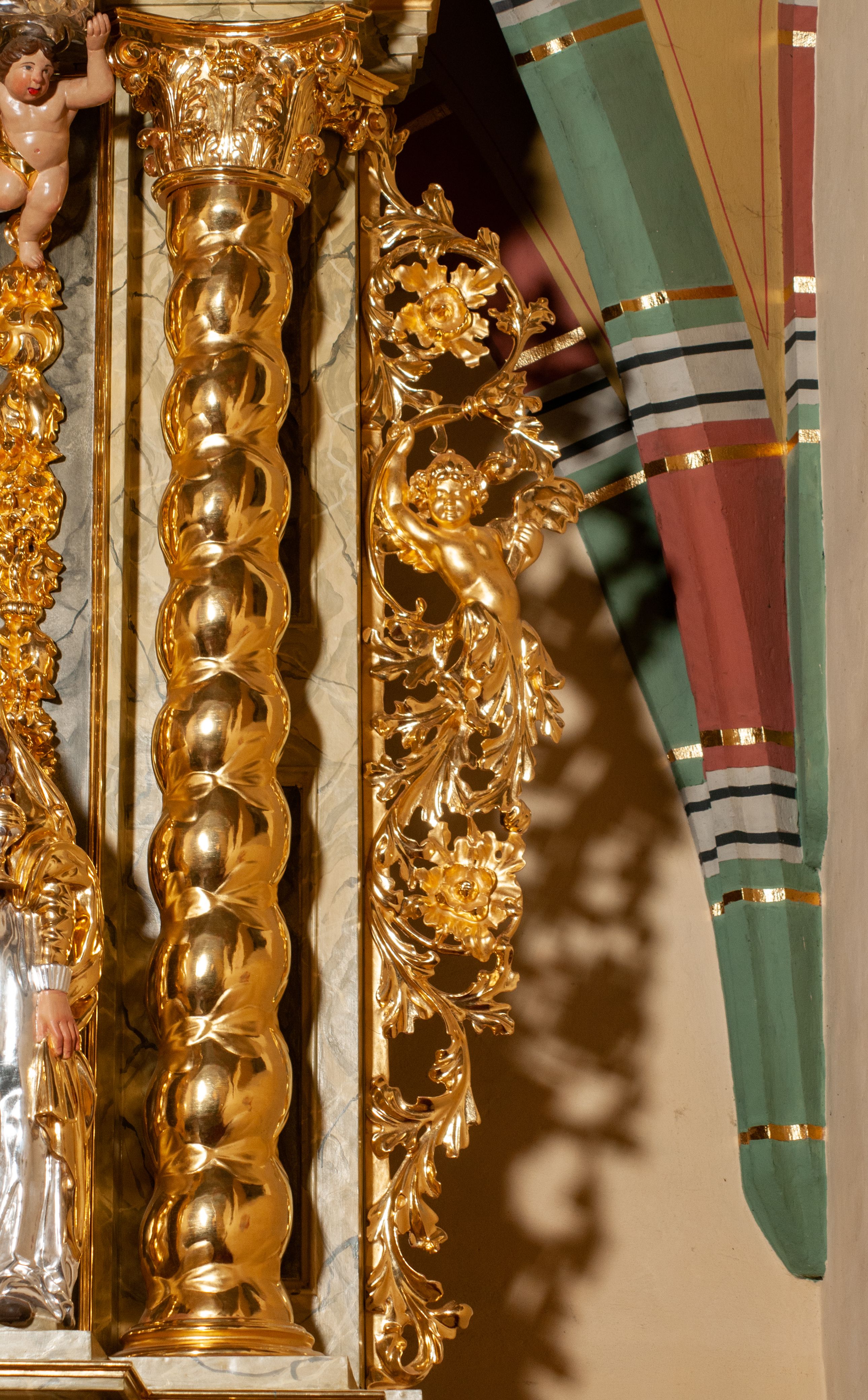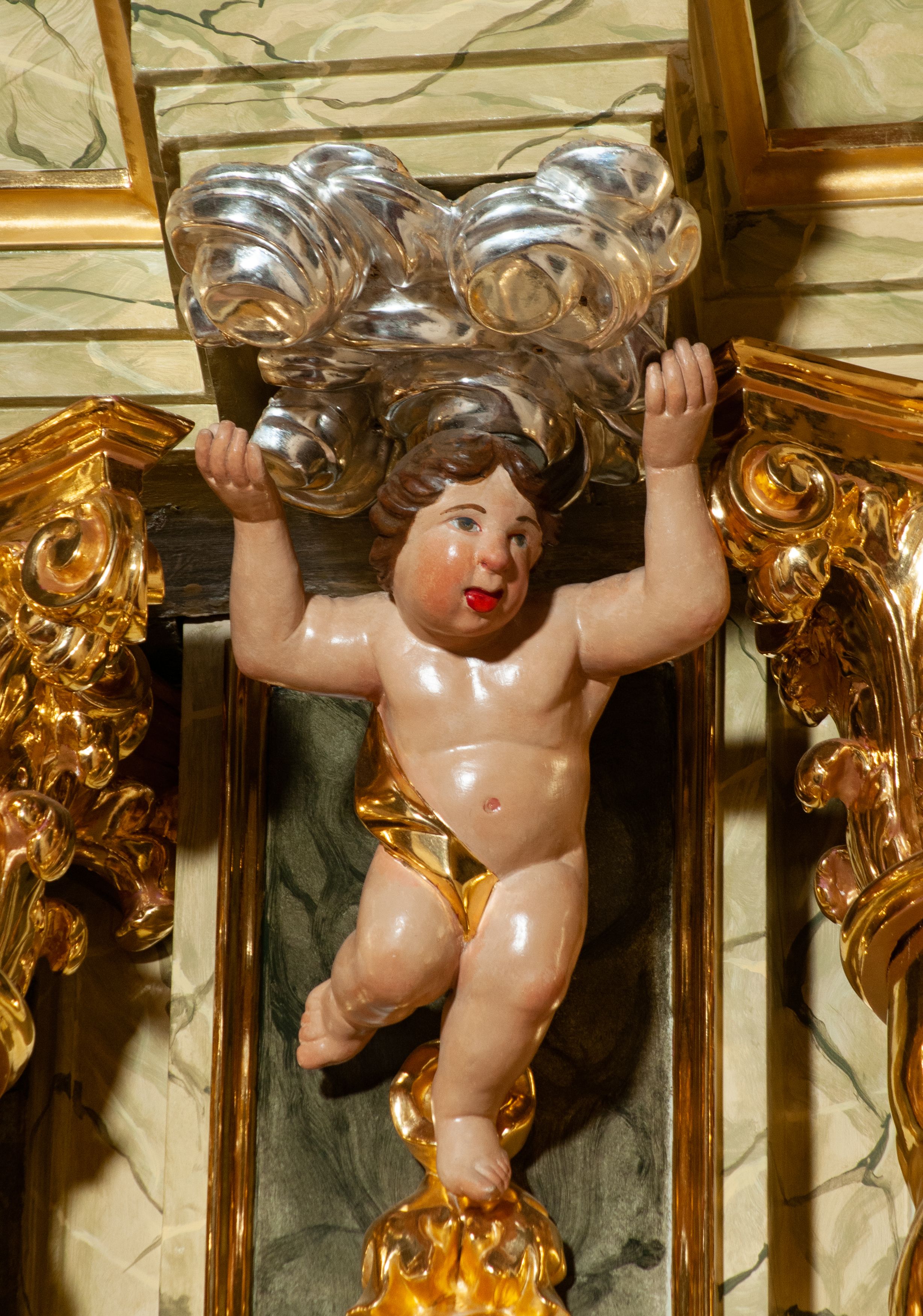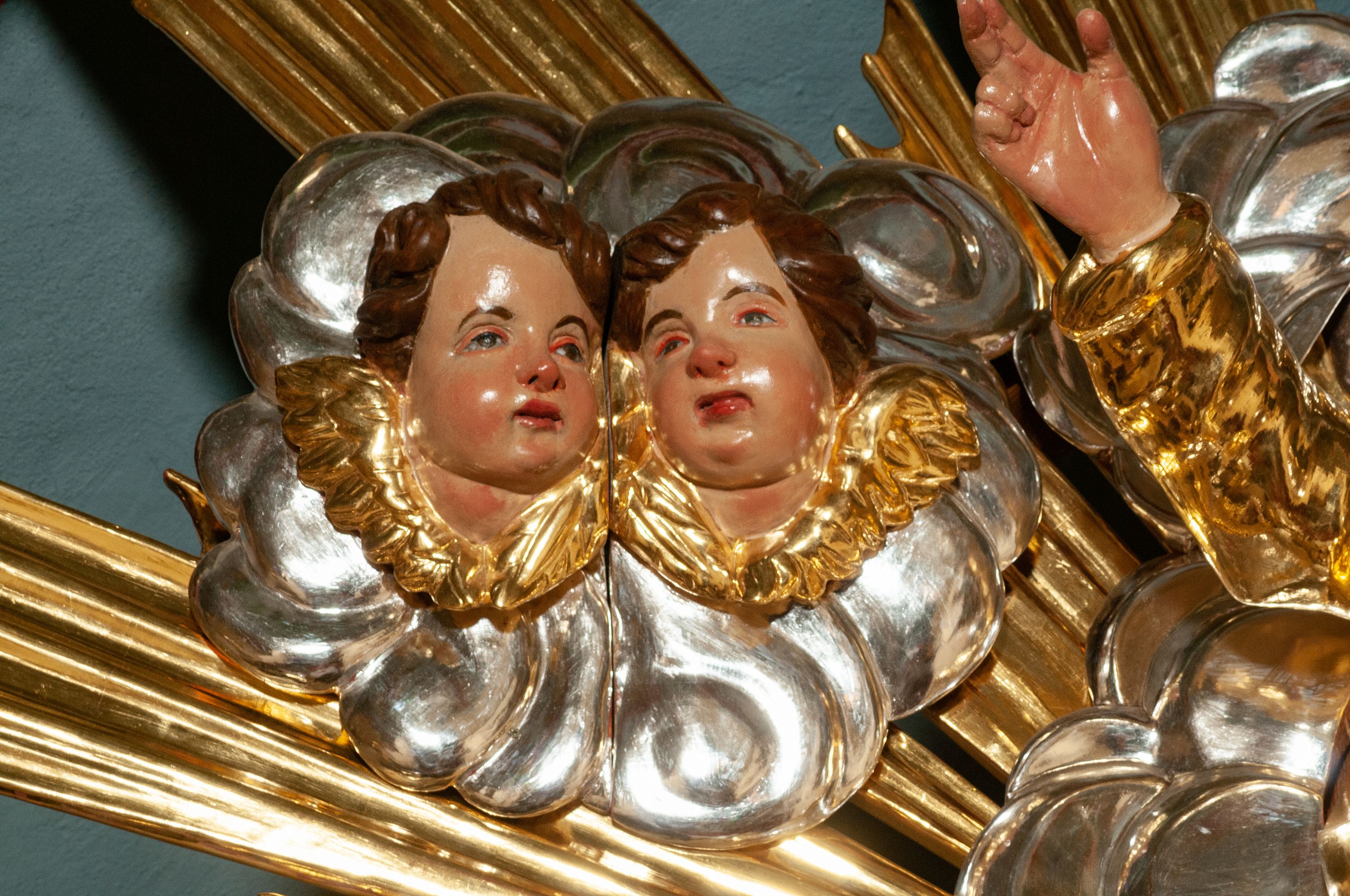 The high altar of the church in Wawrzeńczyce was built in the first half of the 18th century and rebuilt in 1870, statues of saints were added in 1877. The altar has a clear iconographic programme: on the axis there is the Holy Trinity as three figures flanked by two figures of saints who are former church patrons.
