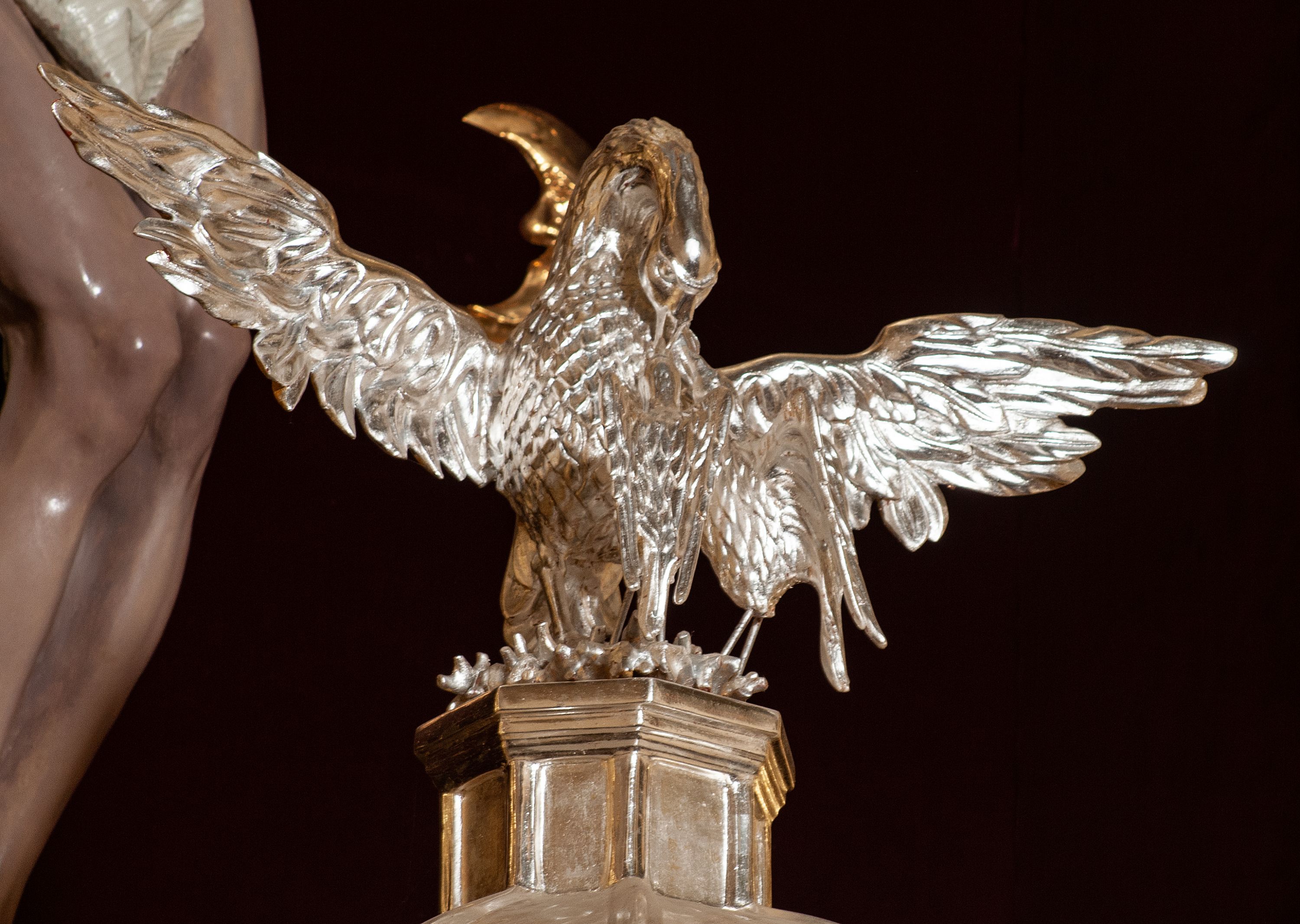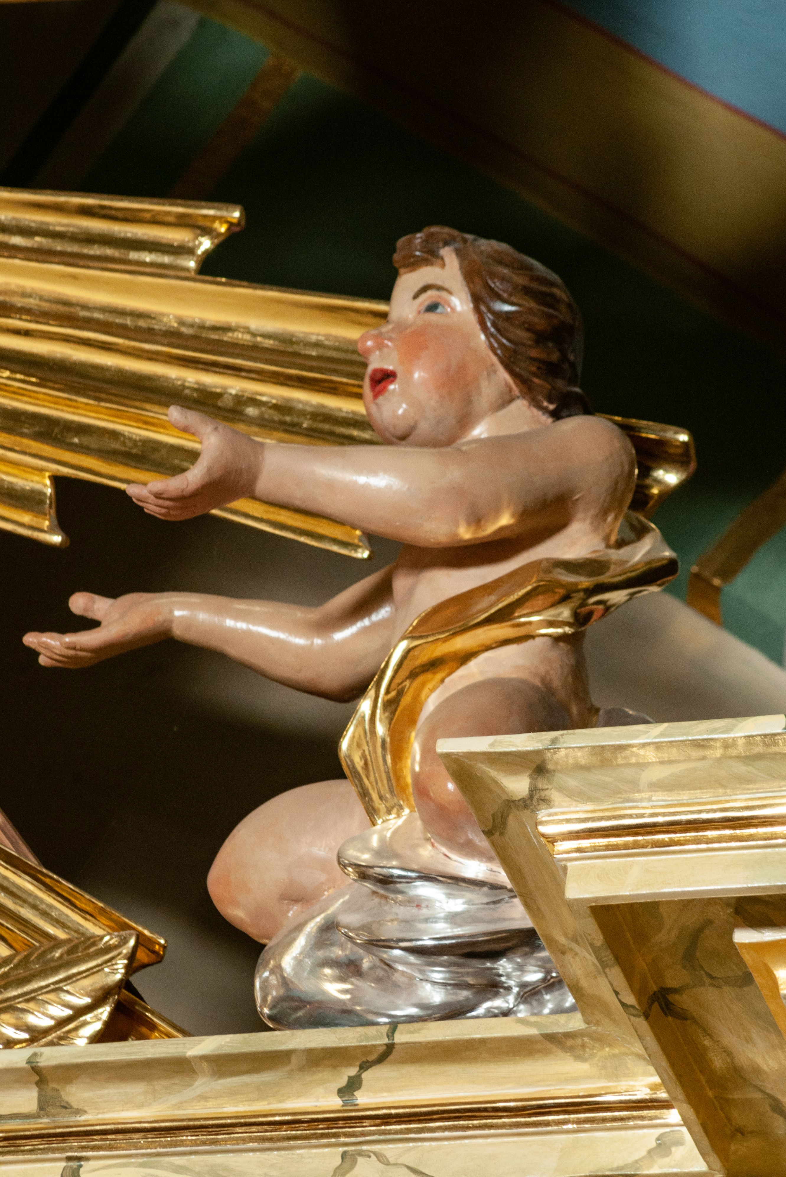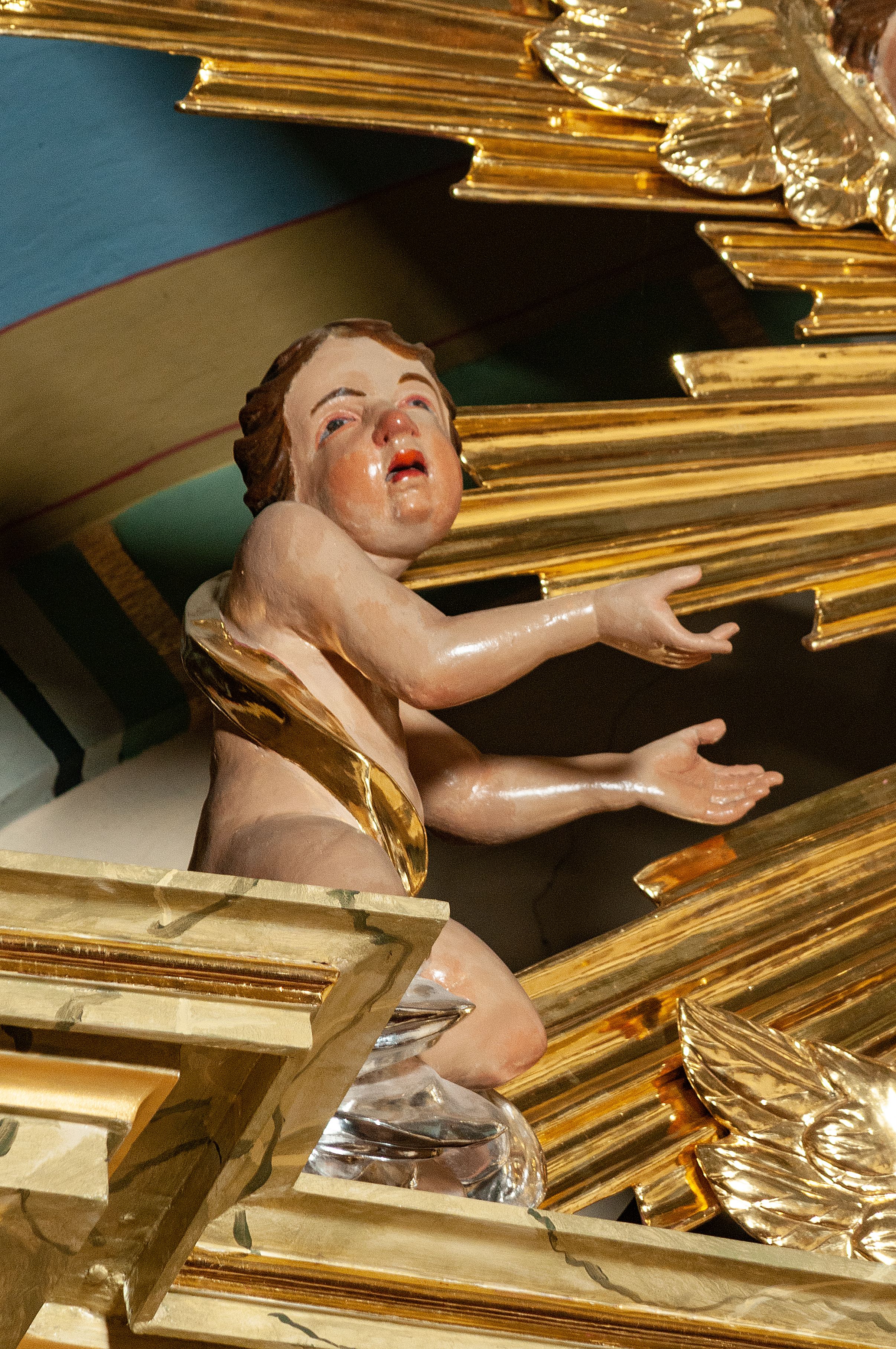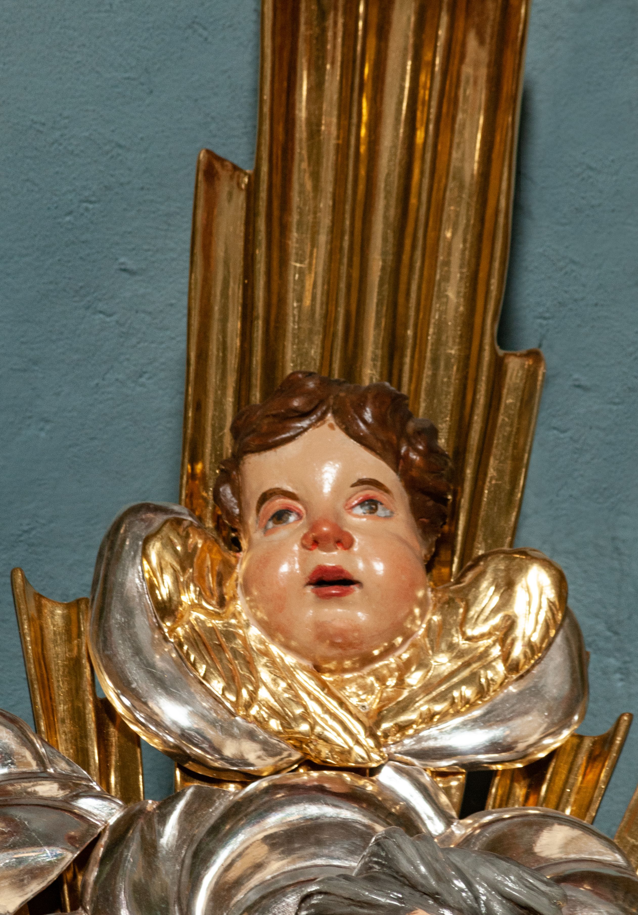 The high altar of the church in Wawrzeńczyce was built in the first half of the 18th century and rebuilt in 1870, statues of saints were added in 1877. The altar has a clear iconographic programme: on the axis there is the Holy Trinity as three figures flanked by two figures of saints who are former church patrons.