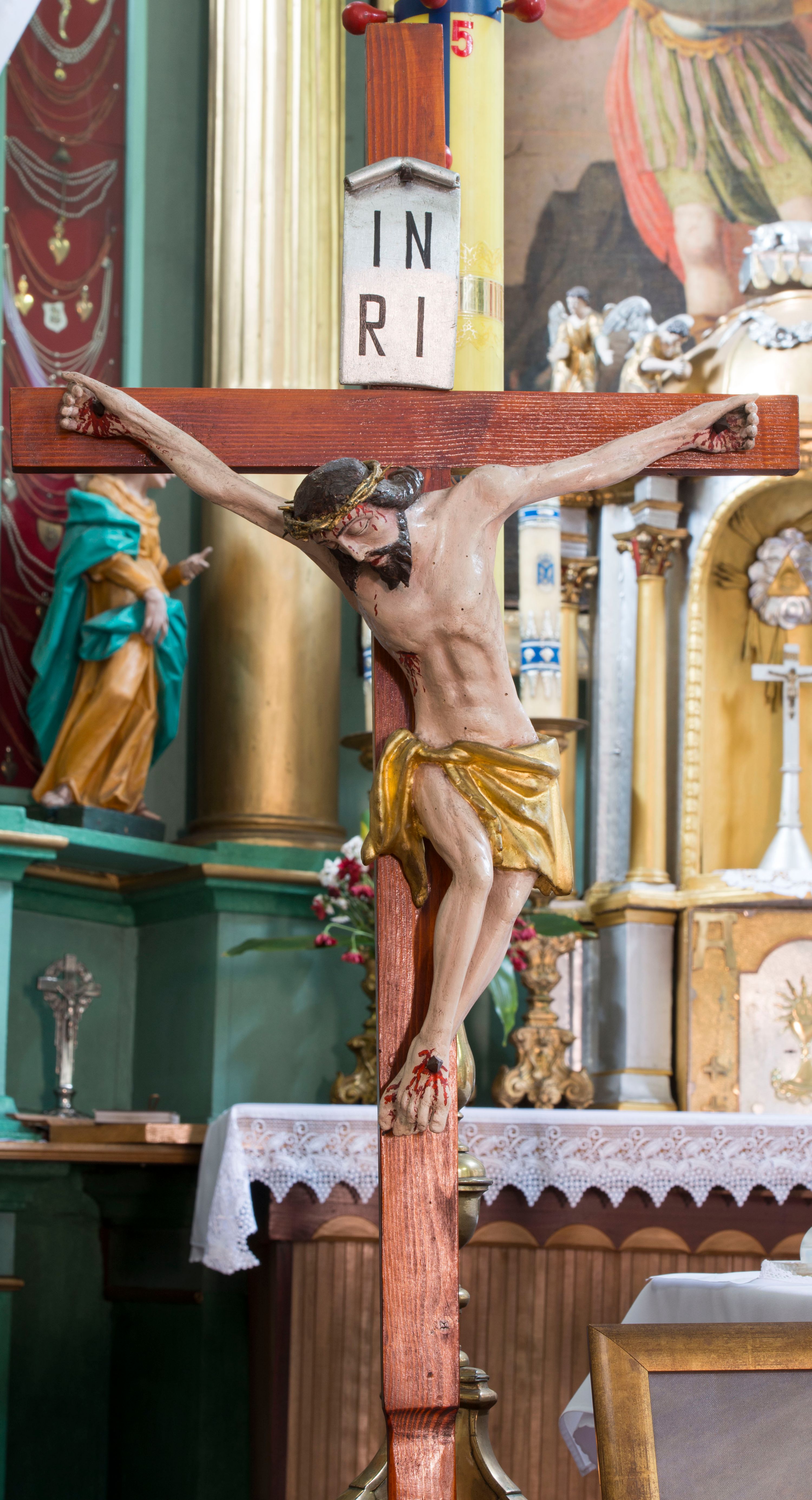 The altar was built during the construction of the church in 1828 and consecrated in 1834 by the Bishop of Tarnów, Franciszek de Paulo Pisztek. Together with two side altars, the pulpit and the choir, it is a coherent piece of furnishings, which is the work of a workshop using historising forms.