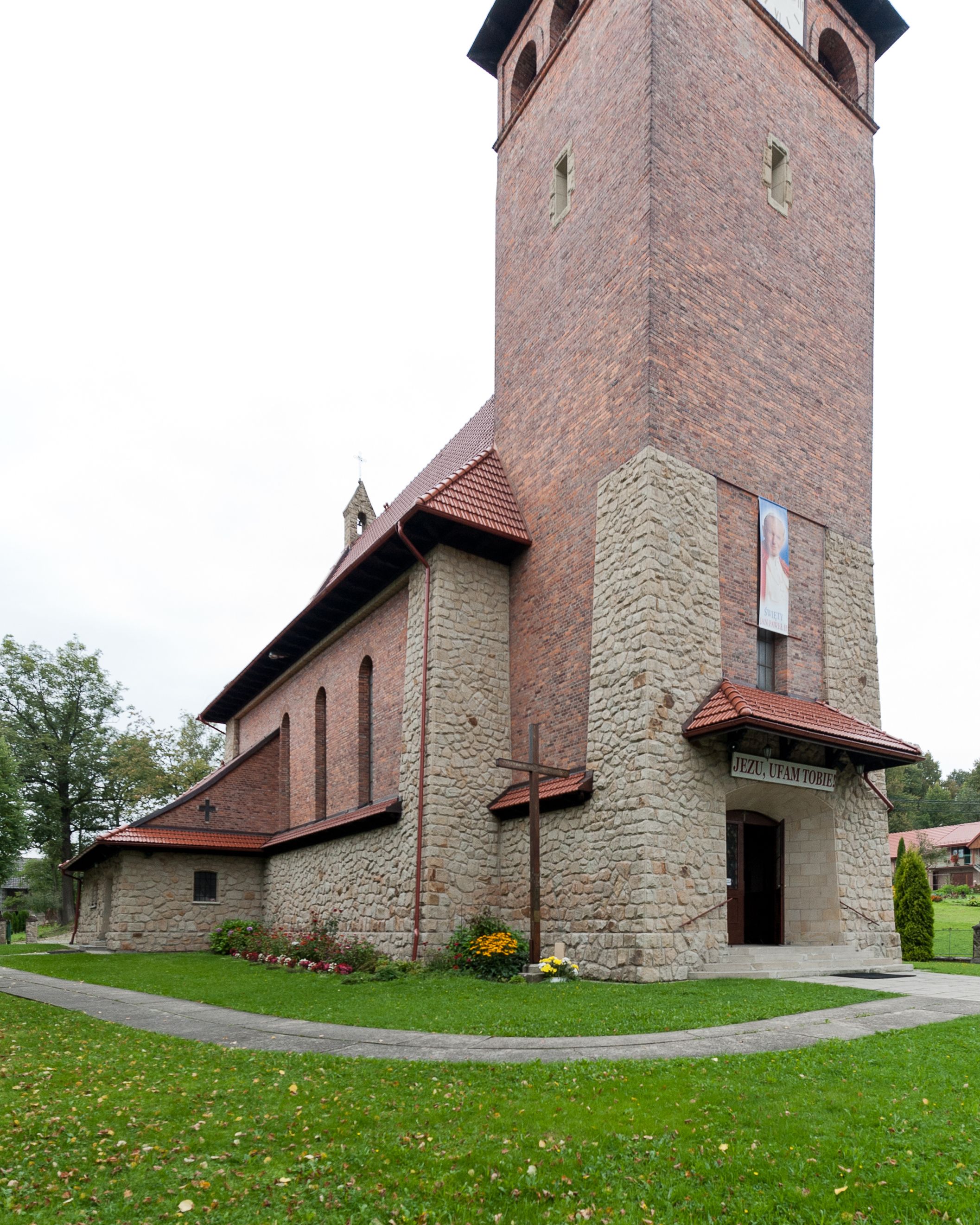 The church in Przytkowice was first mentioned in 1345. In the 15th, 16th, and 18th centuries, new wooden churches were built in the village. The last one, dating back to 1733, was moved to Skawinki in the year of completion of the new and first brick church. The current building was erected in 1948-1953 according to the plans of architect Otto Fedak from Oświęcim and with corrections of Józef Jamróz from Krakow, while the temple was consecrated on 31 May 1953 by bishop Franciszek Jop. In 1960, the interior polychrome was made by an artist from Krakow, Jadwiga Remer. In the 1980s, the roof was tiled, a marble floor was laid in the chancel, a communion step was made and the walls were covered with wooden panelling.