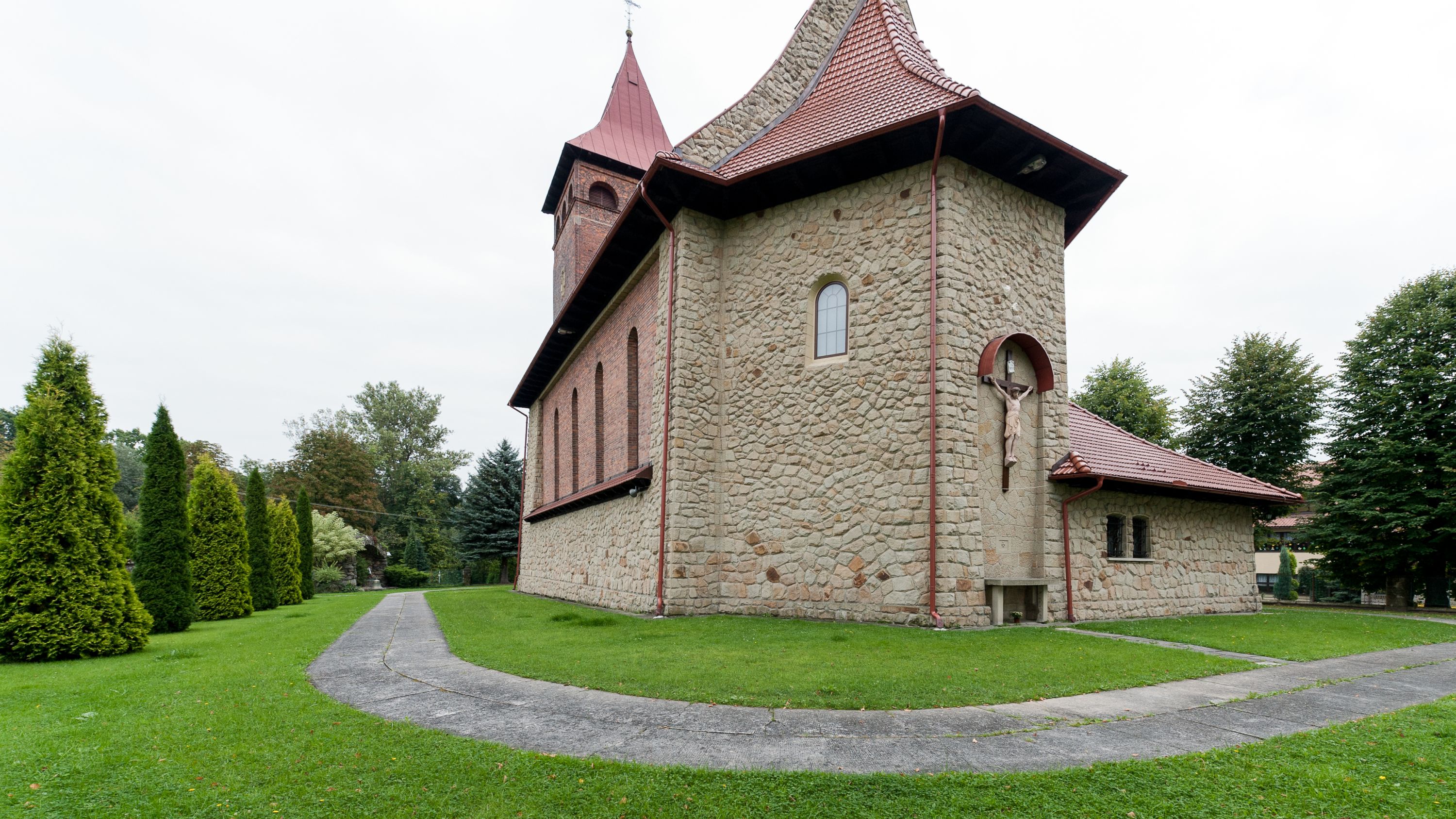 The neo-romanesque church in Przytkowice was built in 1948-1953. Otto Fedak - architect of the temple from Oświęcim - was also the author of the design of churc in Tenczyn. The most valuable monument of the church is the high altar from 17th century that constituted the side altar of the former temple. Polychrome was designed by Jadwiga Rymar from Cracow.