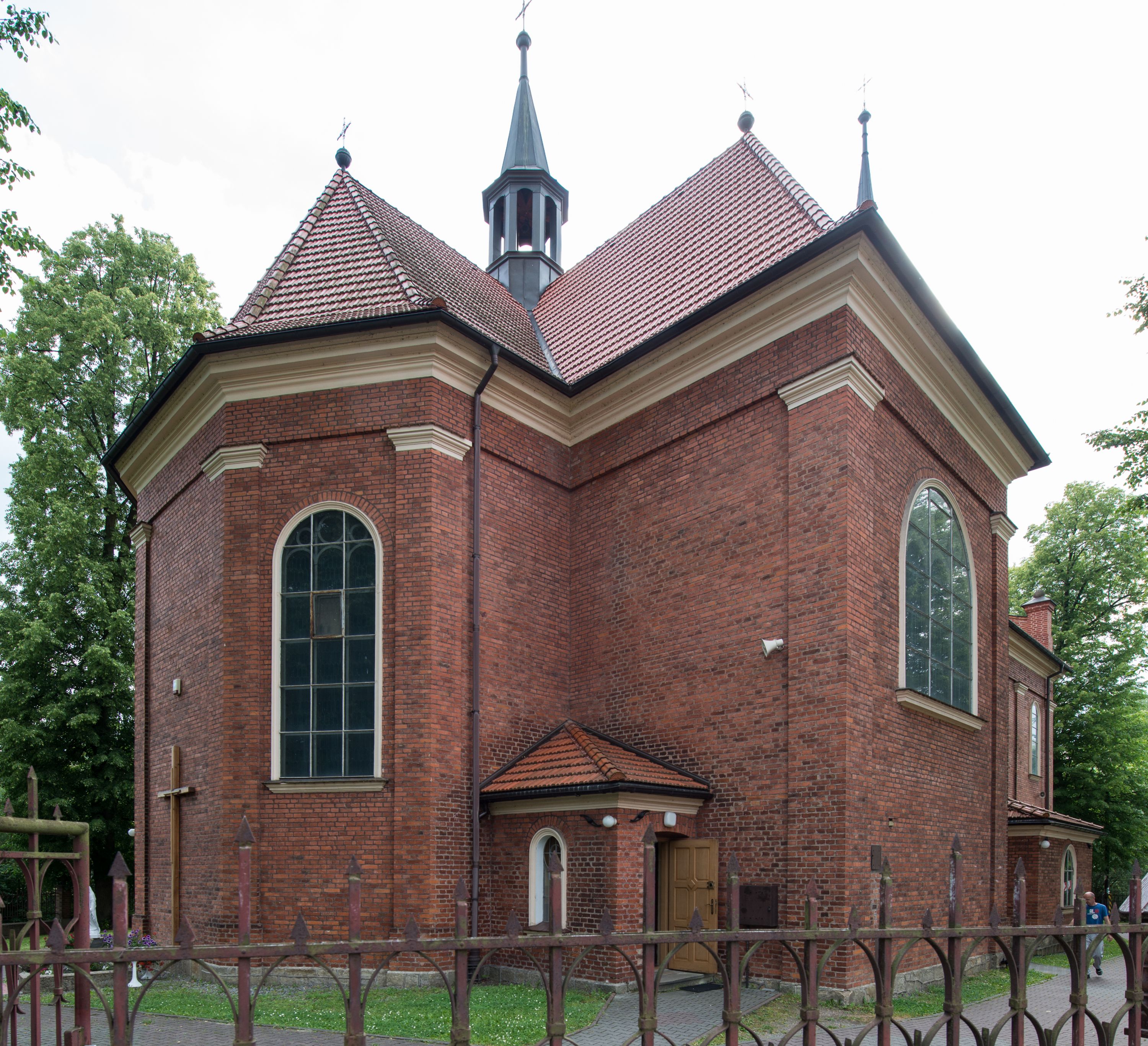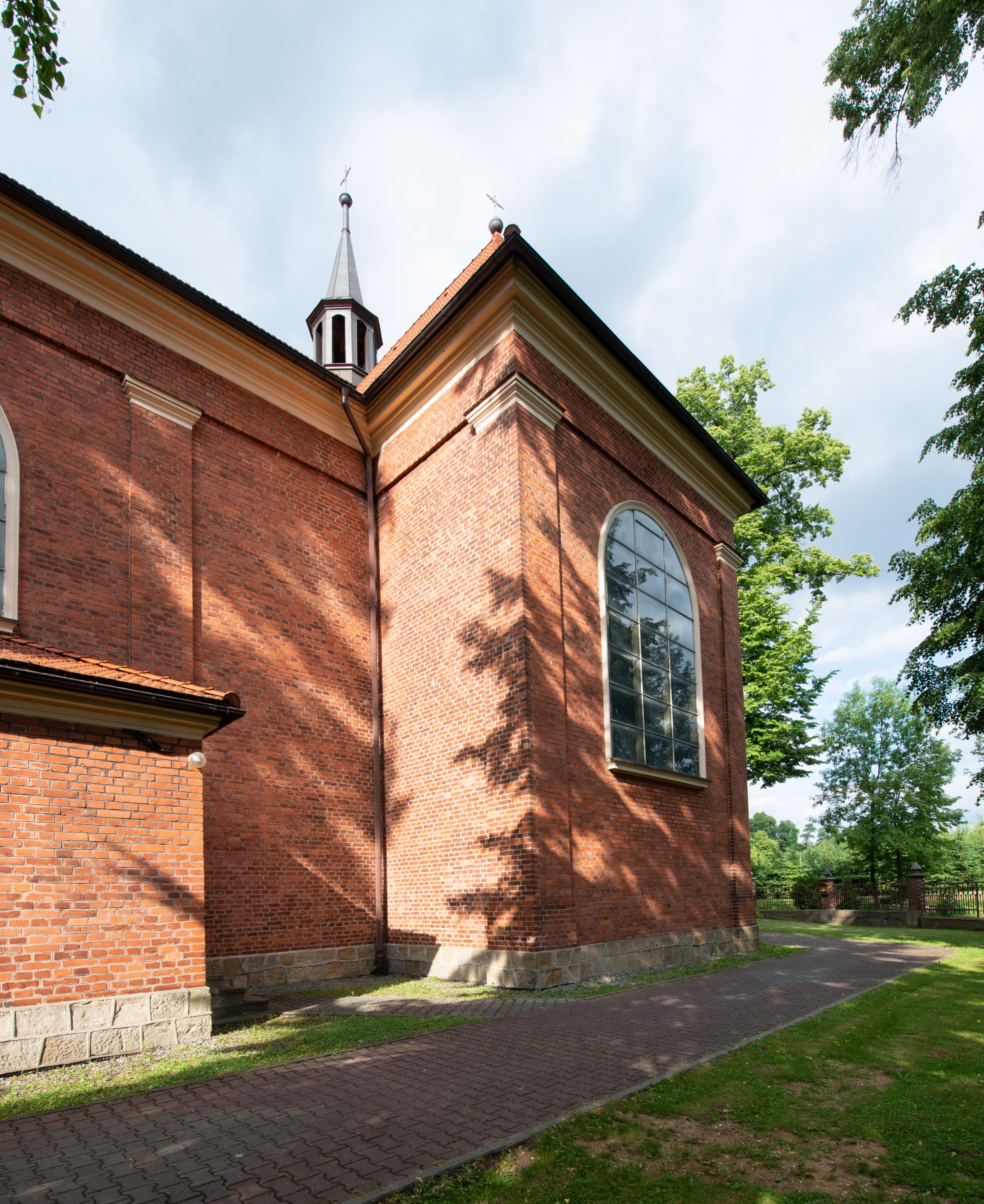 The former temple in Krzywaczka was too small for the growing number of parishioners. On 27 June 1911 a foundation stone was laid and the construction of a new neo-Gothic church started, according to the design of Stefan Müller from Krakow, who created it in 1909. The building was erected in the place of the former church in 1911-1912 under the direction of Bartłomiej Kowalczyk from Podstolice. On 4 August 1912, the church was blessed, and in 1924 the temple was consecrated by bishop Anatol Nowak. In 1930, a portal in the facade was created, designed by Jan Hołuj from Myślenice. In the 1970s, the church interior was repainted white, thus the polychrome which had been created right after the church was built was covered. At that time, the historic pulpit was also dismantled. What happened to the paintings from the former temple remains unknown. Parish correspondence, currently stored in the Archives of the Metropolitan Curia provides information on only two paintings of Christ Crucified, which were to be donated to the National Museum in Krakow. Two side altars were moved from the former temple. The high altar of the church in Krzywaczka was created in the sculpture workshop of Władysław Druciak in 1914. The artist signed a contract with the then parish priest, Józef Nowak, in 1913. The painting of Madonna of Częstochowa on the sliding panel was created by painter Szczurowski, and works at the altar were finished by goldsmith, Józef Małek. The altar was created in the neo-Gothic style, reflecting medieval– gothic models and replicating old forms and ornaments, creating a new whole. The triaxial altar combines elements which are typical for Gothic architecture, such as openwork turrets crowned with pinnacles, fleuron ornaments and crockets, pointed arches, gables or traceries. Druciak's creative oeuvre is referred to as an example of historism in sacral sculpture from the beginning of the 20th century. The central niche of the altar in Krzywaczka houses a relief of the Holy Trinity, which is a direct reference to the invocation of the parish, whereas the smaller niches showcase the statues of St. Isidore, St. Ambrose and St. Dominic. The larger niches are devoted to the Polish patrons: St. Stanislaus and St. Adalbert, whereas the altar finial features a statue of Joseph with Infant Jesus. Placed in the side chapel, the neo-gothic altar was also created in the first quarter of the 20th century. A painting of St. Therese of Lisieux is placed in the central area. Apart from the main one, the temple boasts two other altars. One of them features an extremely valuable sculpture of the Madonna and the Child, which was created in the 1420s or 1430s. The statue was created in the region of Lesser Poland, which was proved in old literature and subsequently confirmed in contemporary references, where it was related to the sculpture from Jarząbka Nowa from ca. 1440, which was classified by Henryk Mędrek as an example of the so-called Pilsen type, as well as to the statue from Janowice. Information obtained during the monument's last conservation was used to restore the original appearance of the sculpture which has undergone multiple transformations throughout the ages, particularly in terms of form. Visiting the temple in Krzywaczka, make sure to marvel its Rococo procession ciborium which is one of few existing examples of this branch of artistic craft, which, made of perishable materials, failed to survive until the present day. The ciborium was created in the third quarter of the 18th century. The piece is a characteristic combination of abundantly sculpted, openwork frame decorated with Rocaille elements, with a material Intrados and suspended sides. The ciborium in Krzywaczka is additionally ornamented in the corners with four flaming vases which magnify the expression of the piece. Windows of the temple are decorated with bordure glazing created in 1912. According to the authors of "Corpus Vitrearum (...)" the same glazing was made in the church in Morawica by glazier Stanisław Wróblewski, which suggests his authorship of the stained glass in the local church.