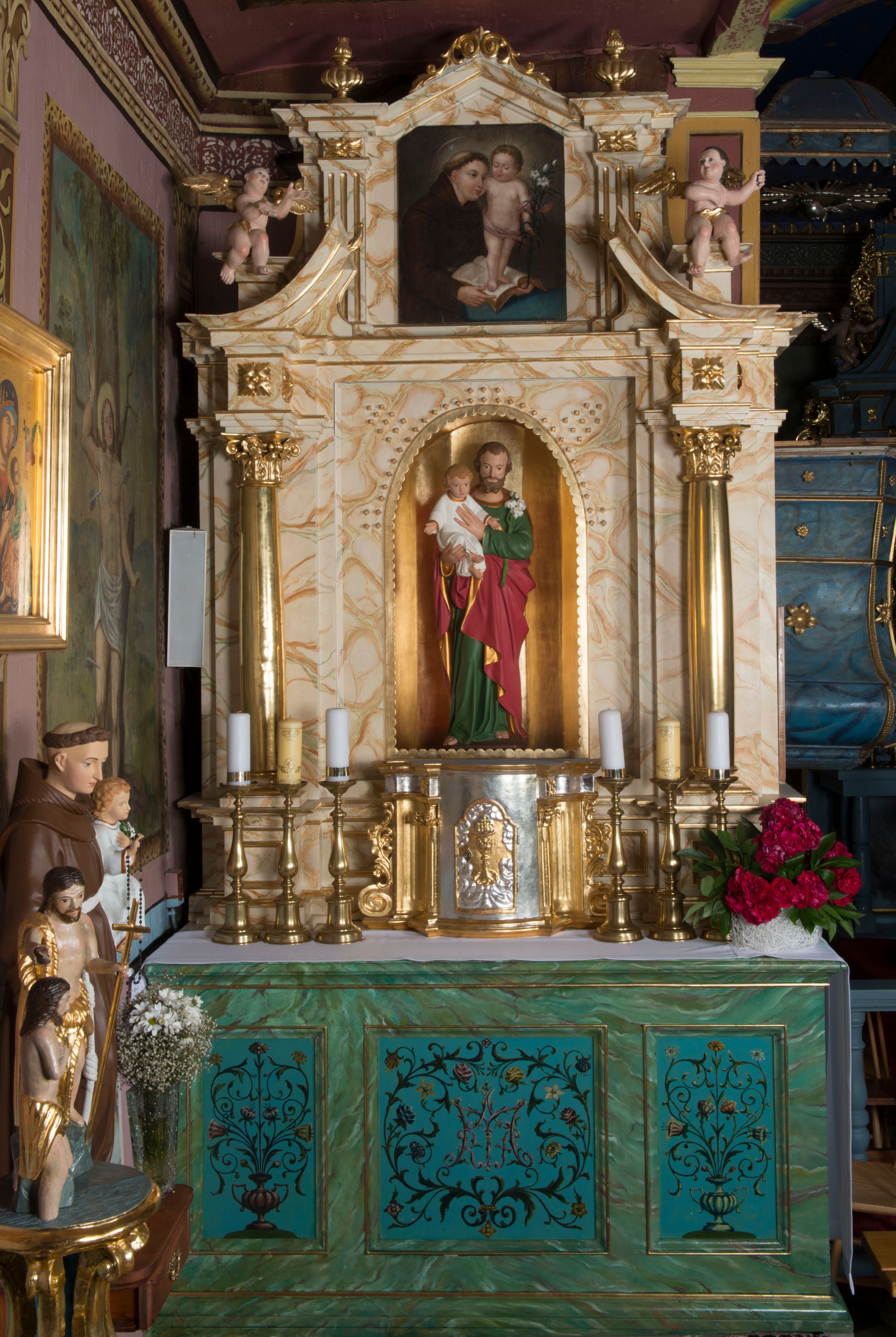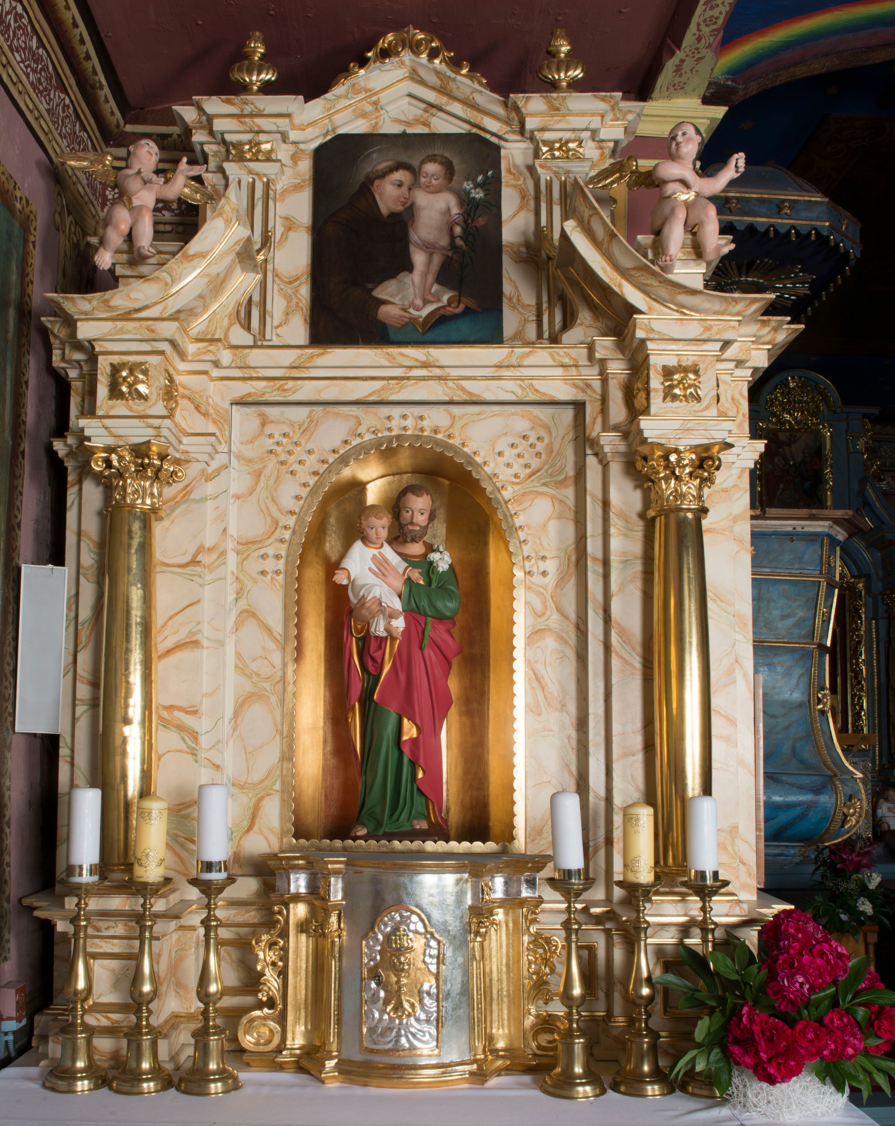 Stylistically, the pair of side altars in the parish church is a reference to the high altar.