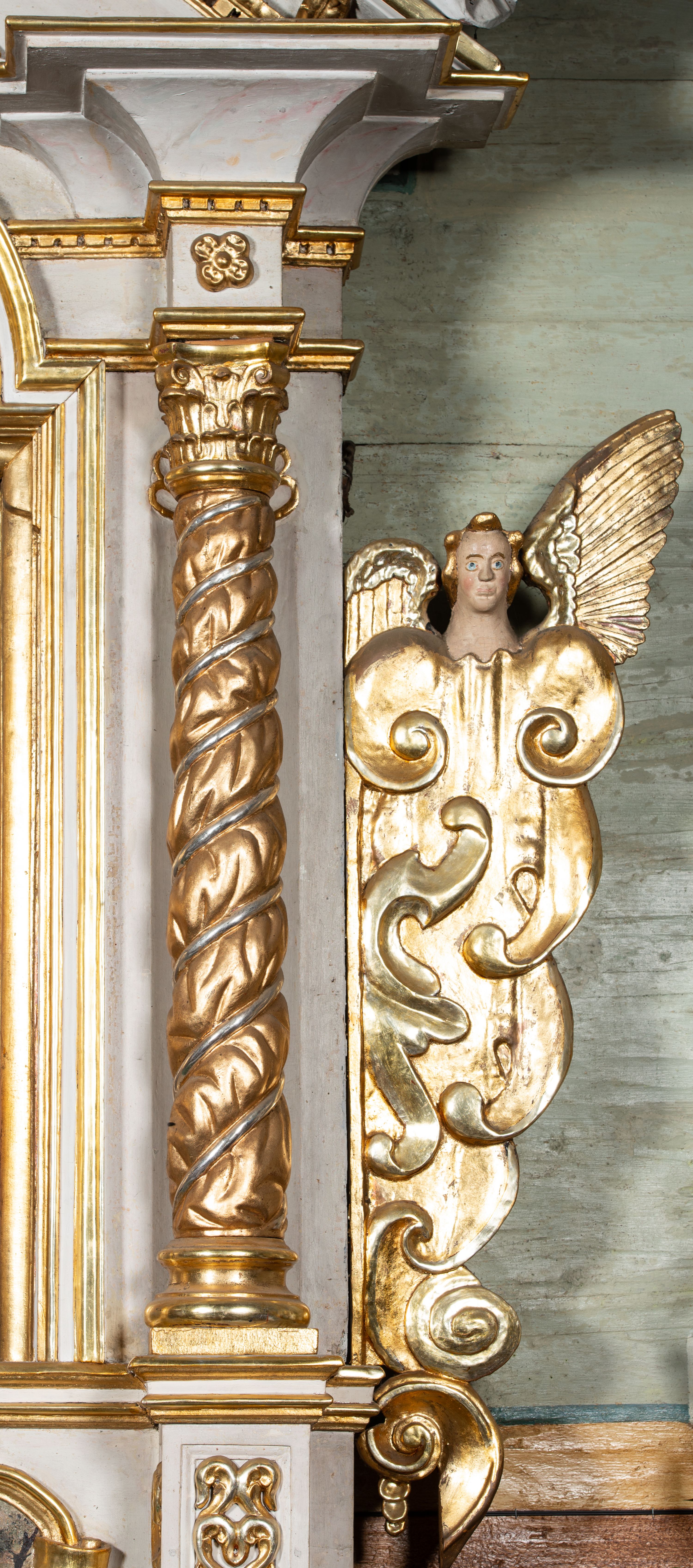 The altar at the north wall of the church in Lachowice was made in the early 19th century, certainly before 1837. Maintained in the style of the classicising Baroque, it is an example of provincial art characterised by significant lateness of form.
