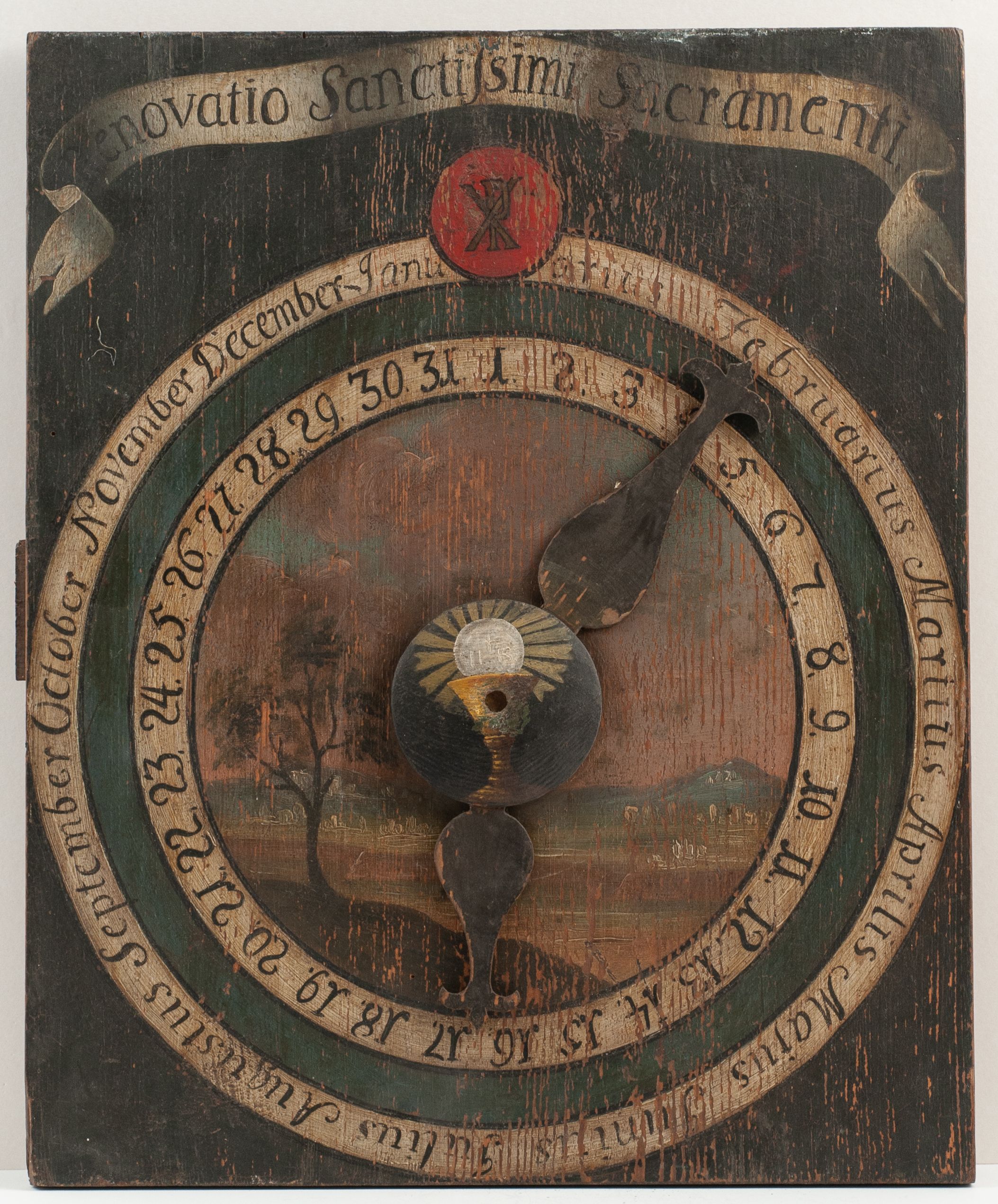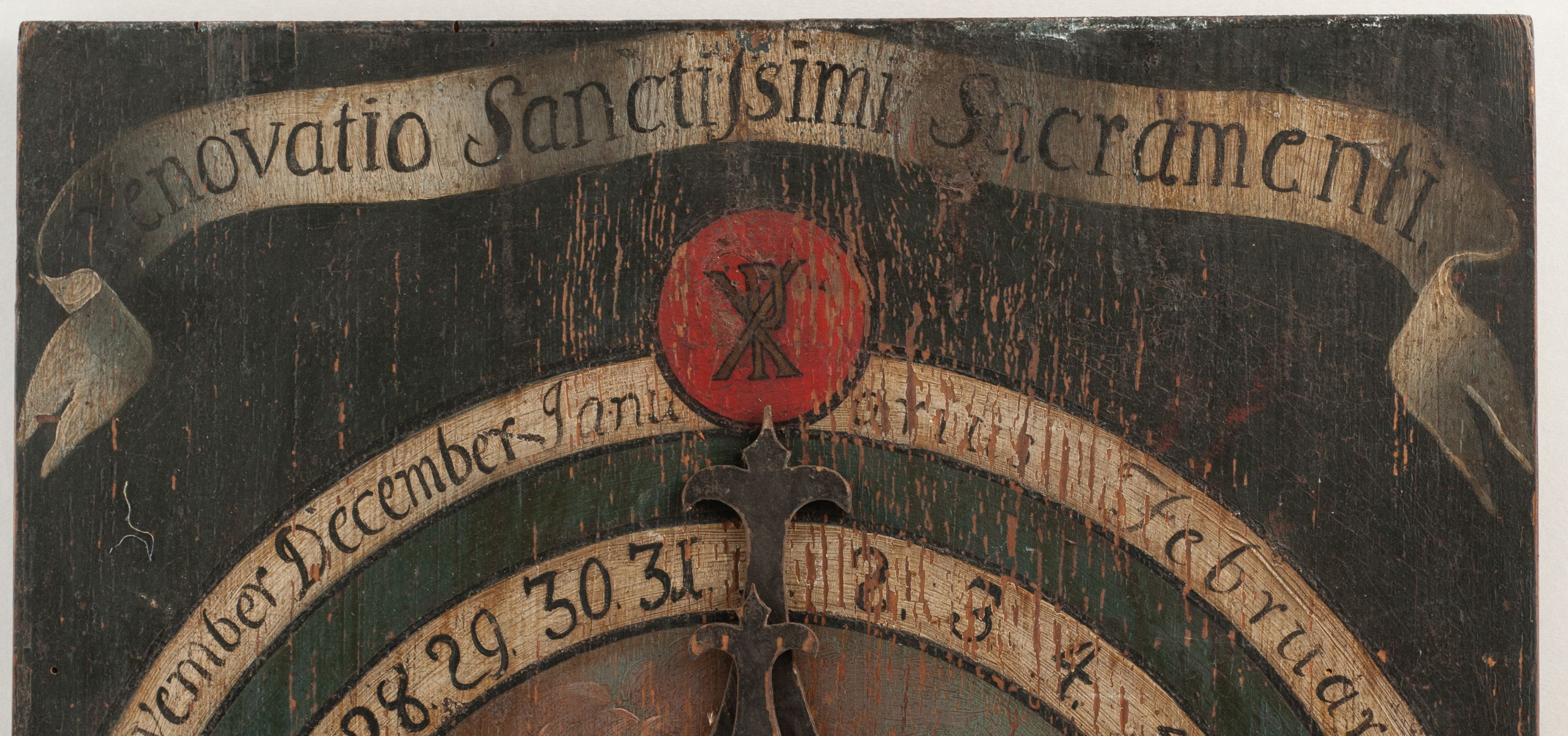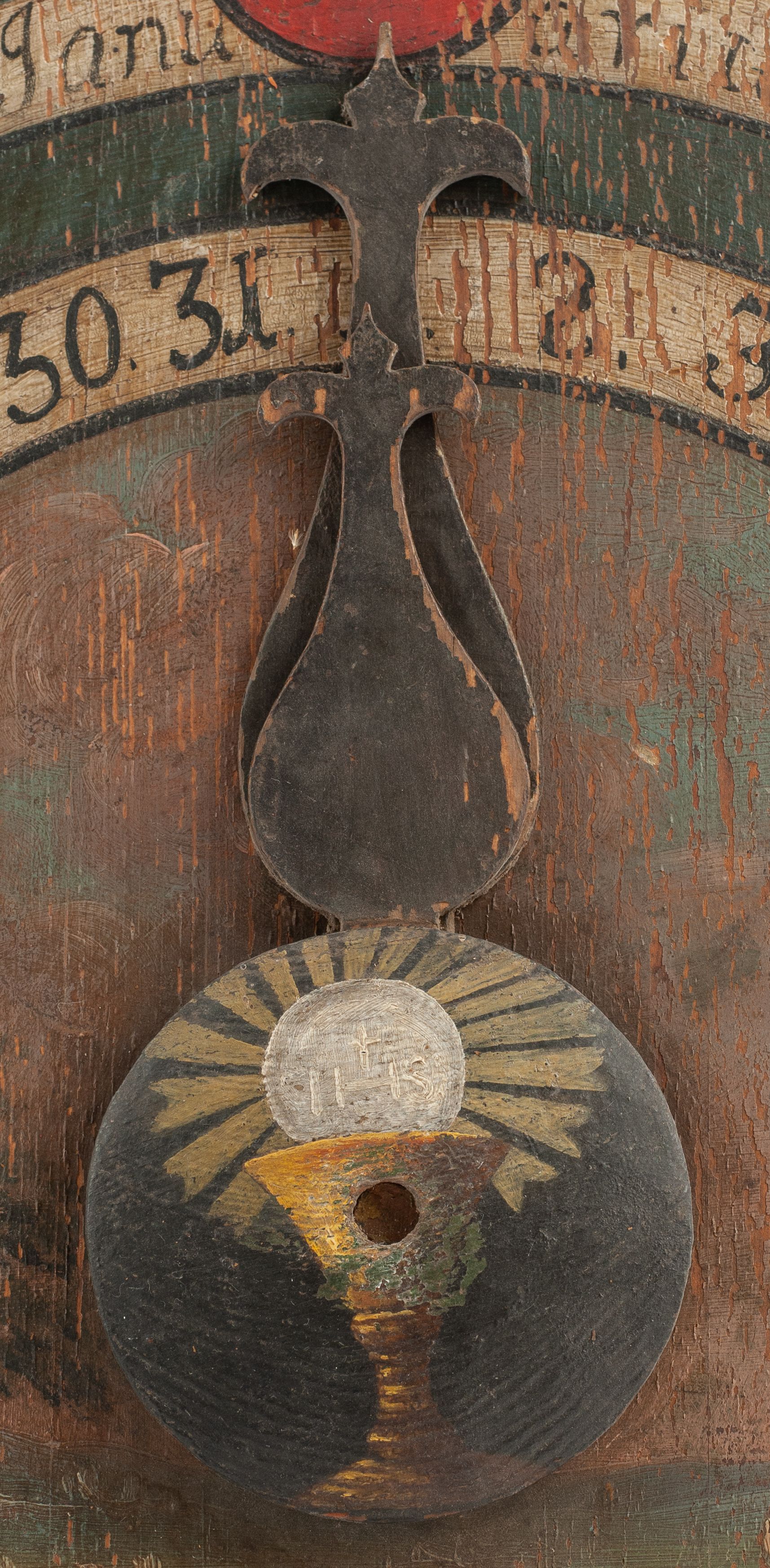The L'Orologio Eucaristico – for the supply of consecrated elements, i.e. Hosts and consecrated bread – was used to mark the date of supplying the Hosts. It was made before 1783, as indicated by the episcopal visitation record. Due to the small number of preserved examples of this type of objects, the L'Orologio Eucaristico of Czulice is a unique example of "Renovatio Sanctissimi Sacramenti".