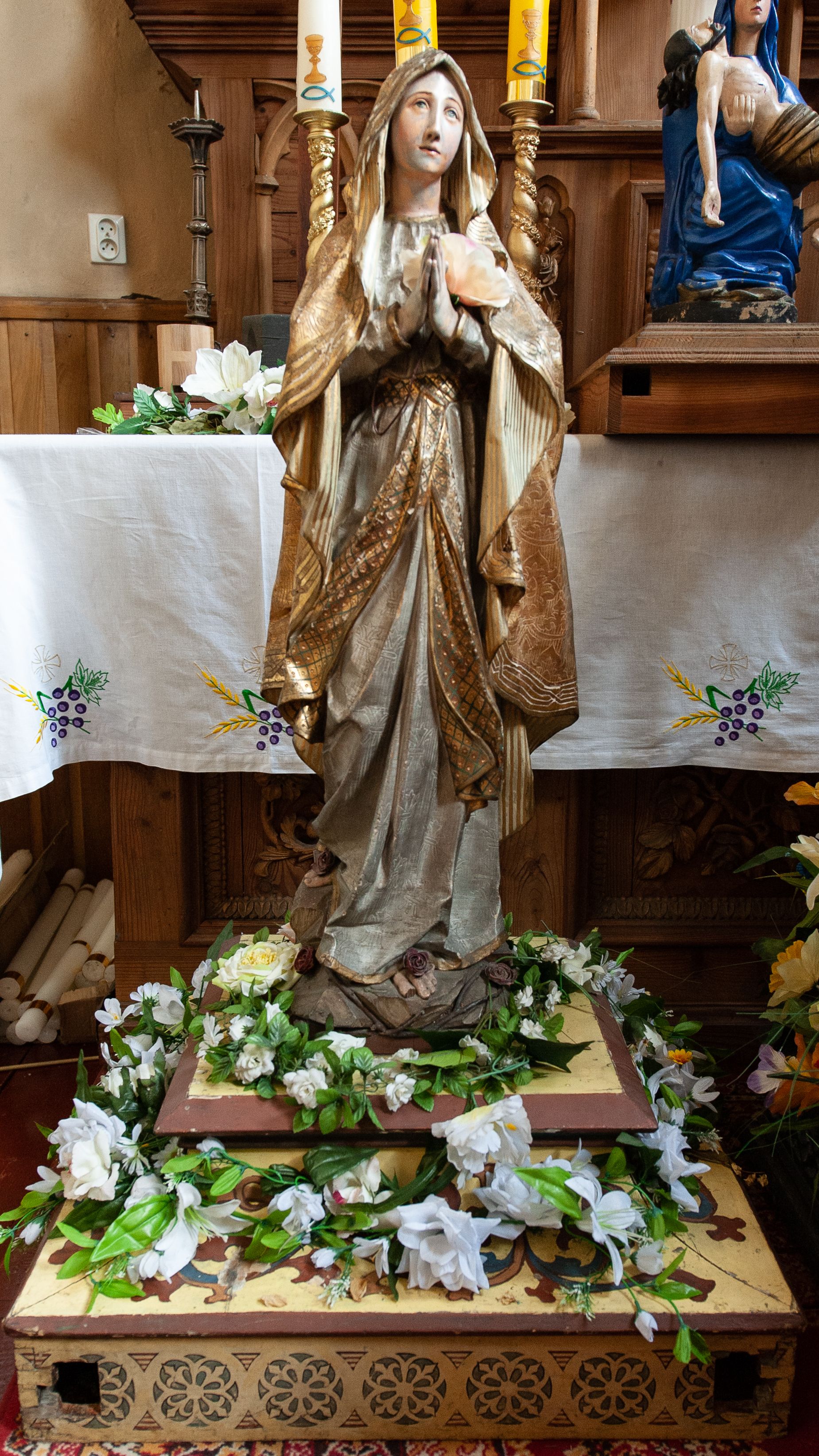 Procession float with the figure of the Madonna was created before 1928. It depicts the Mother of God, whose form is inspired by the iconographic type of Our Lady of Lourdes and shows a tendency to idealization.