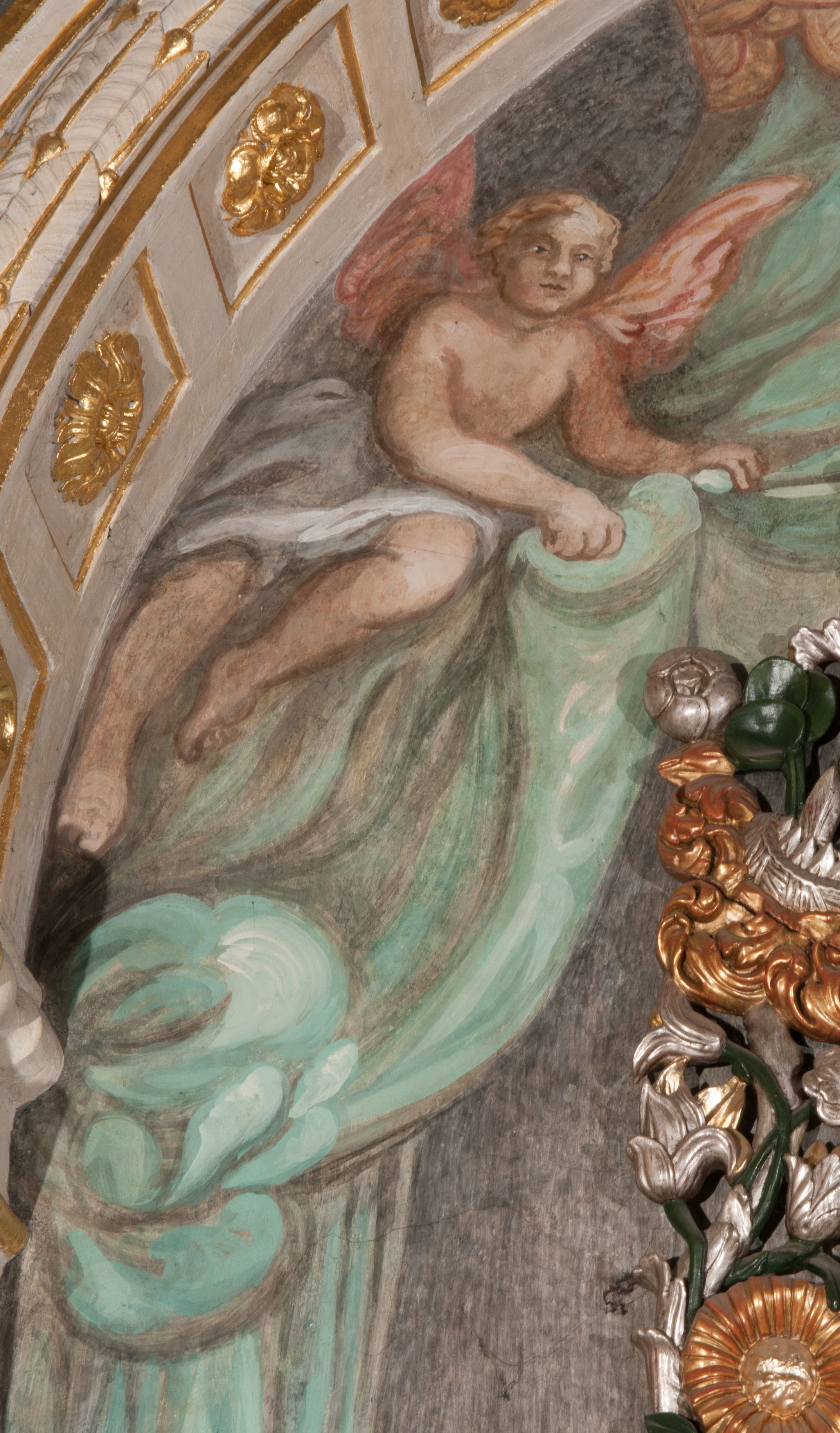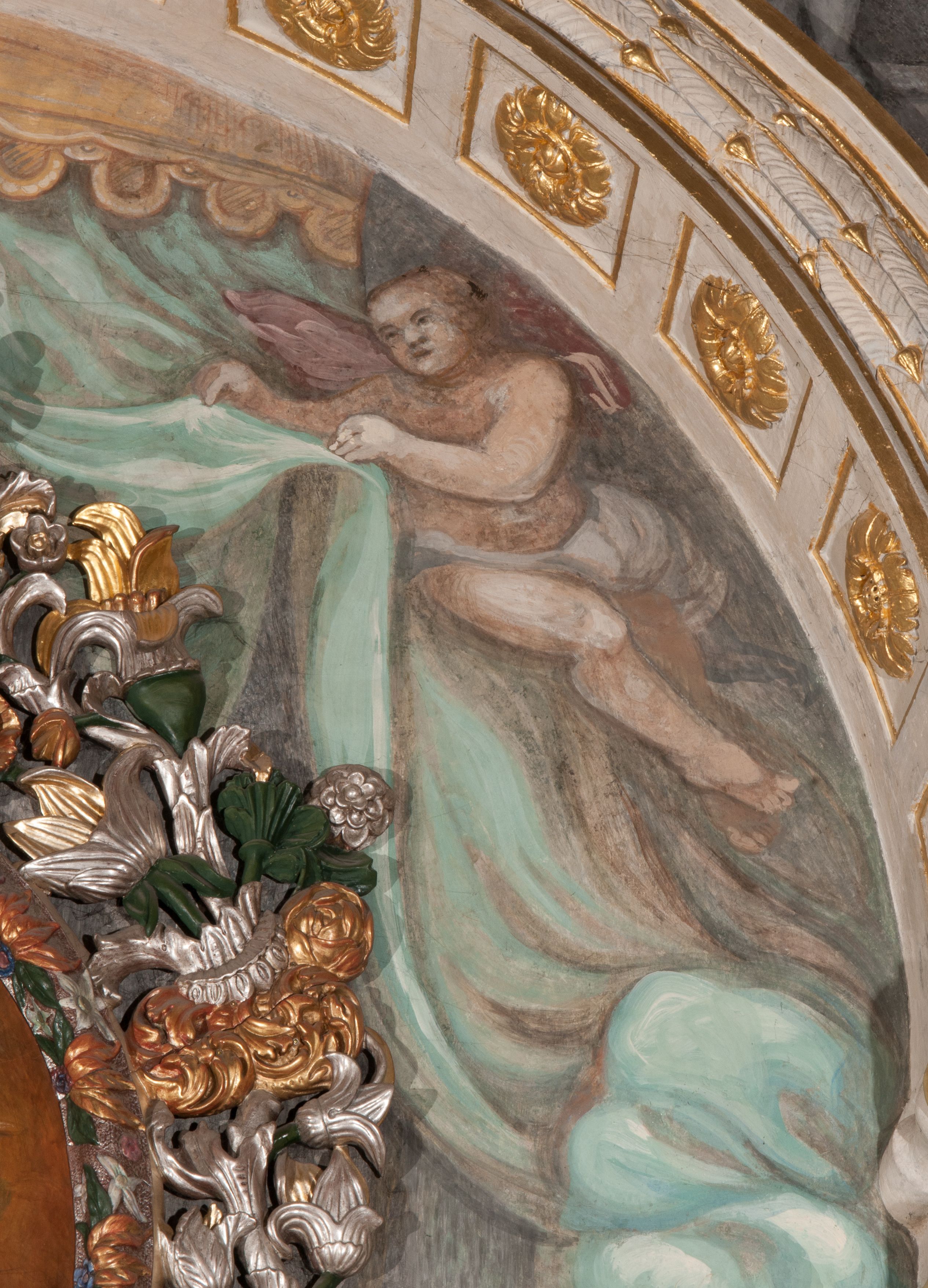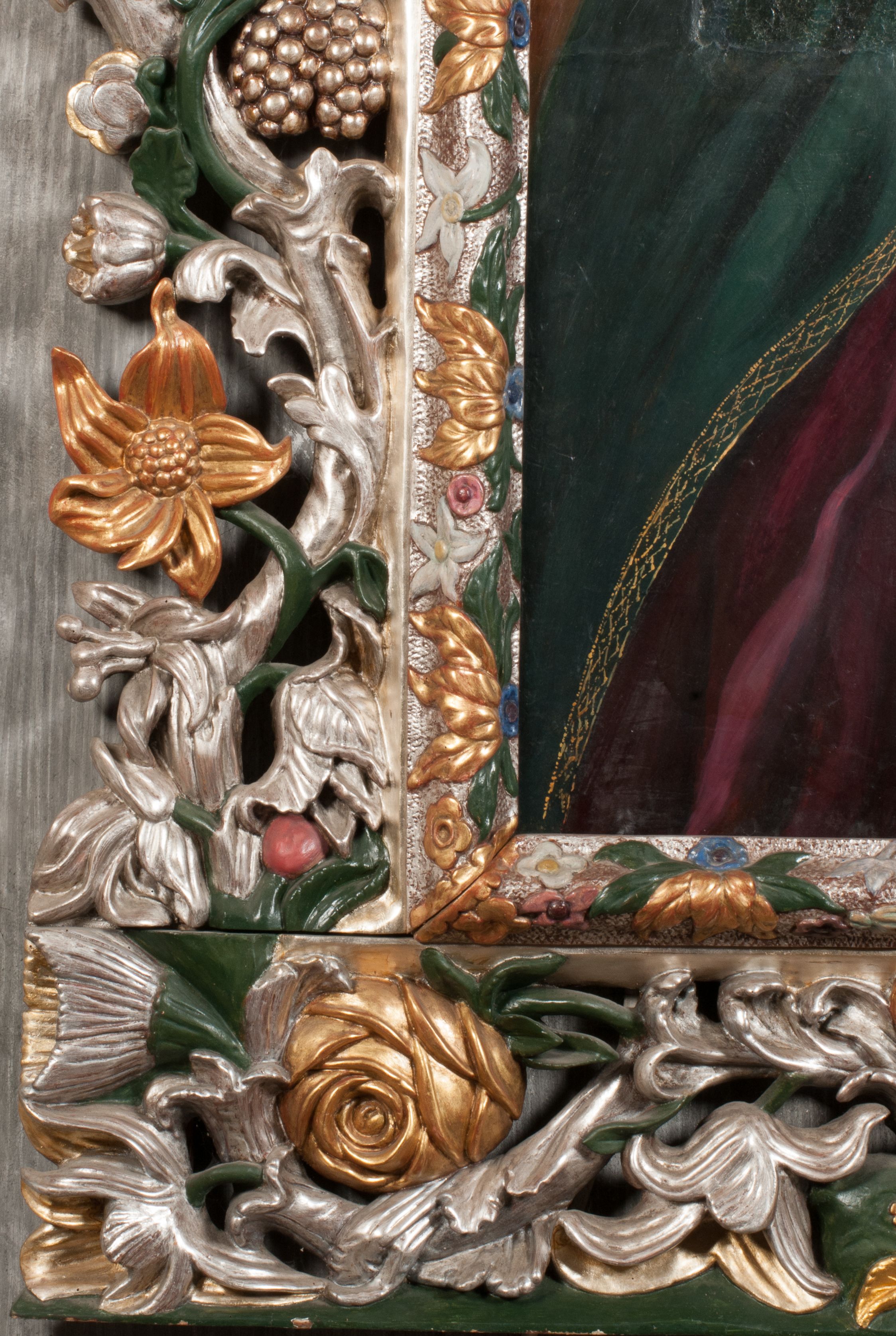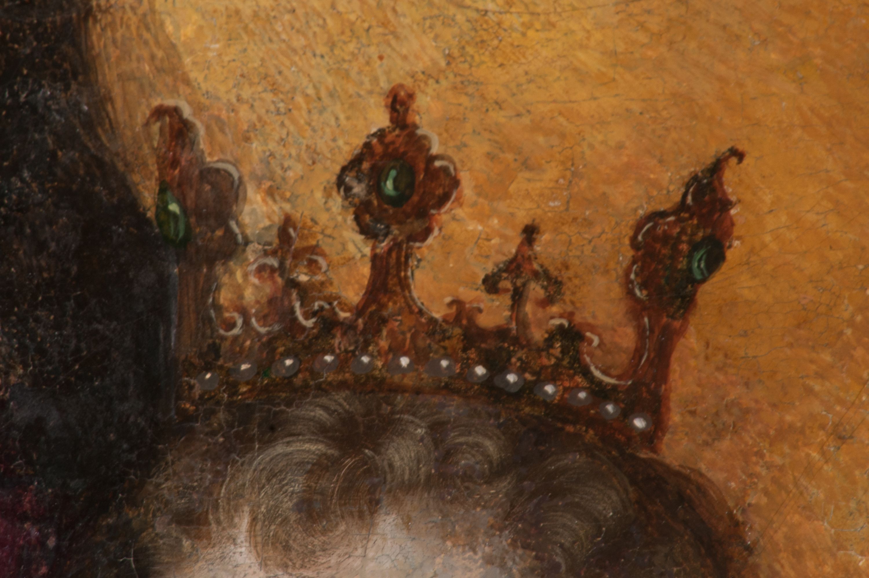 The painting of Madonna and the Child was probably created in the 17th century. Originally, it was much smaller in size (later a large part of the canvas was added and painted). In the 18th century, it was placed into the altar, and after 1964 it was set back to an ornamental frame. Perhaps it was funded by Jan Klemens Branicki (died in 1673). Madonna and the Child is depicted as the Queen of Heaven, as evidenced by attributes such as the crown on her head and the sceptre in her hand or the orb held by the Child.