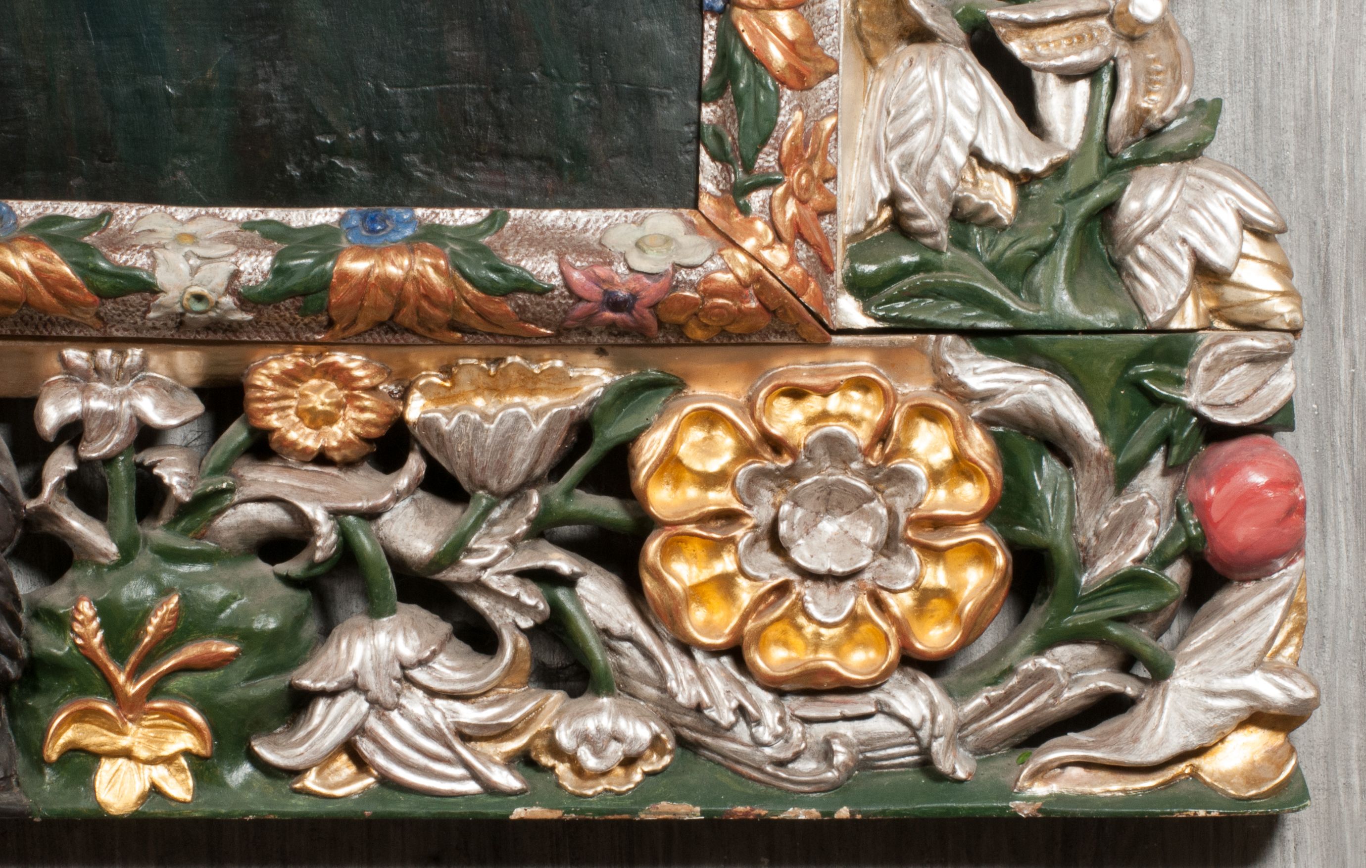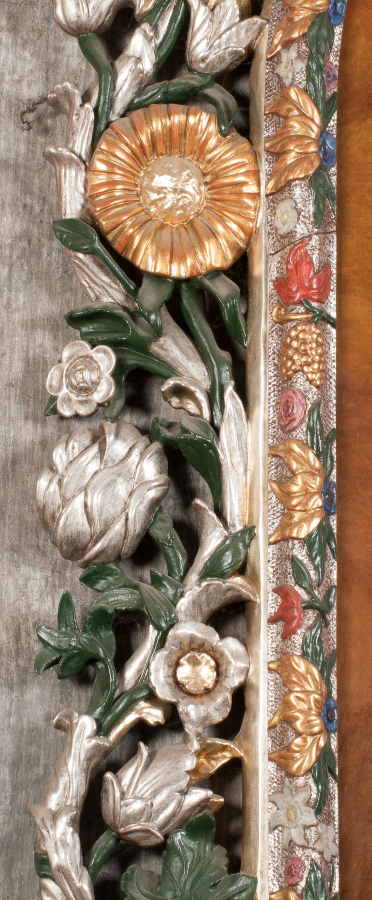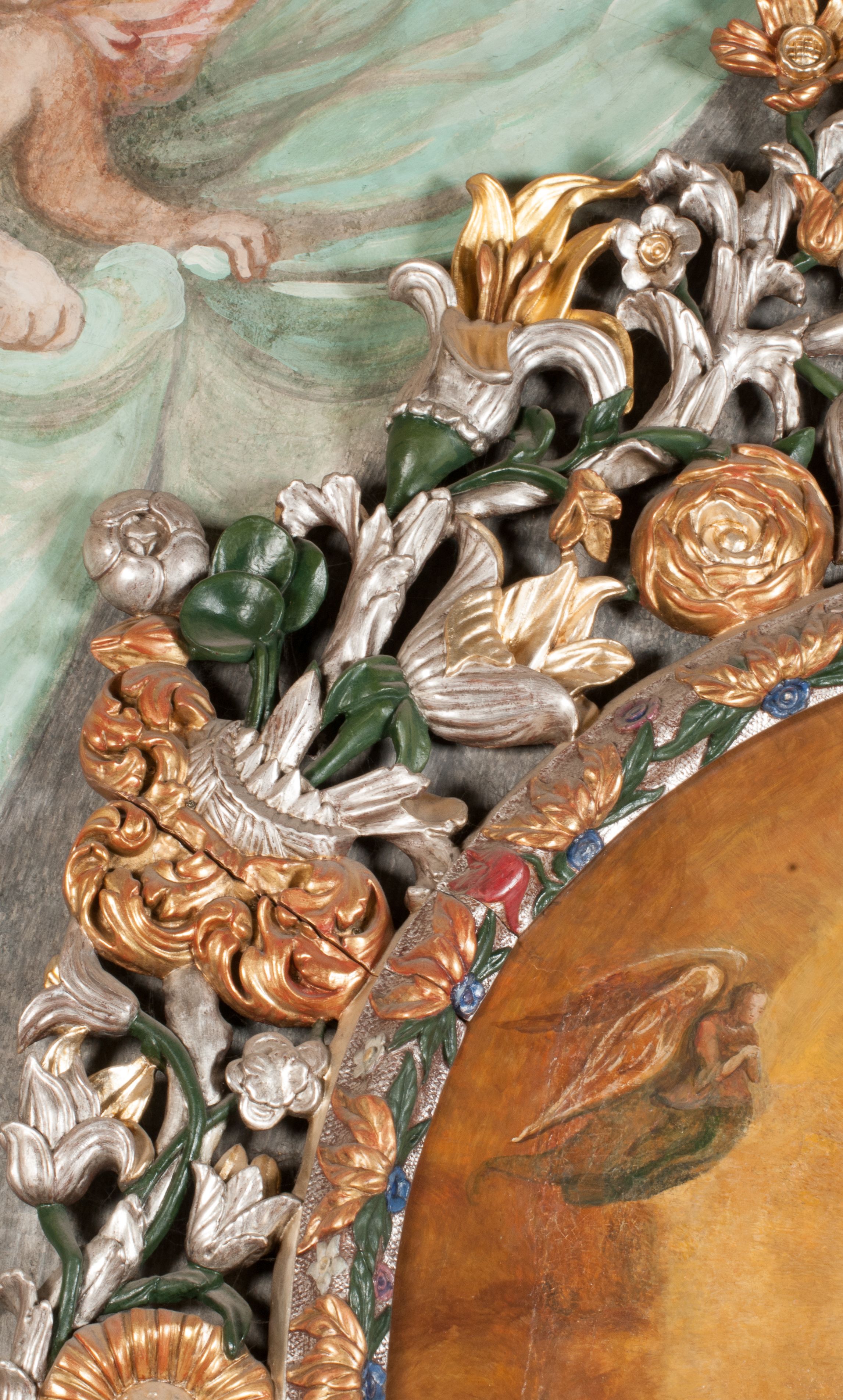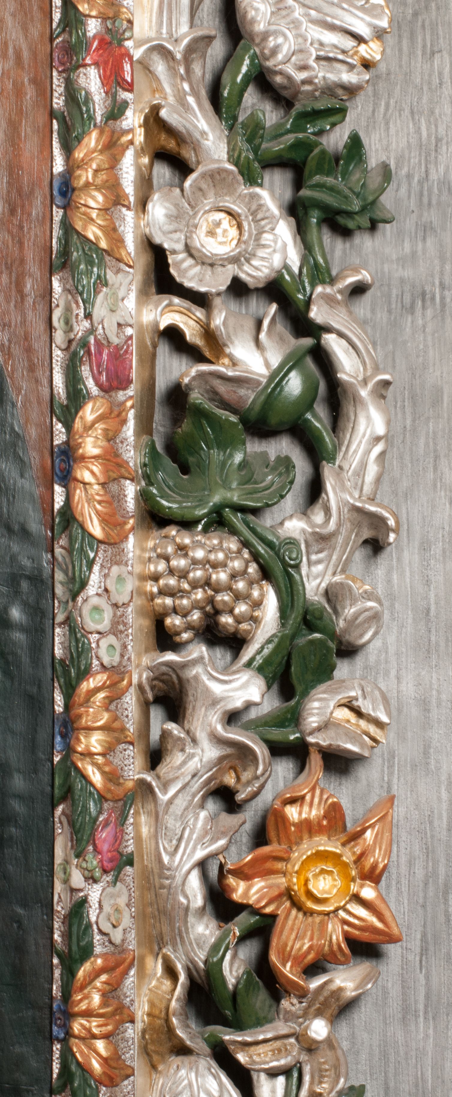 The painting of Madonna and the Child was probably created in the 17th century. Originally, it was much smaller in size (later a large part of the canvas was added and painted). In the 18th century, it was placed into the altar, and after 1964 it was set back to an ornamental frame. Perhaps it was funded by Jan Klemens Branicki (died in 1673). Madonna and the Child is depicted as the Queen of Heaven, as evidenced by attributes such as the crown on her head and the sceptre in her hand or the orb held by the Child.