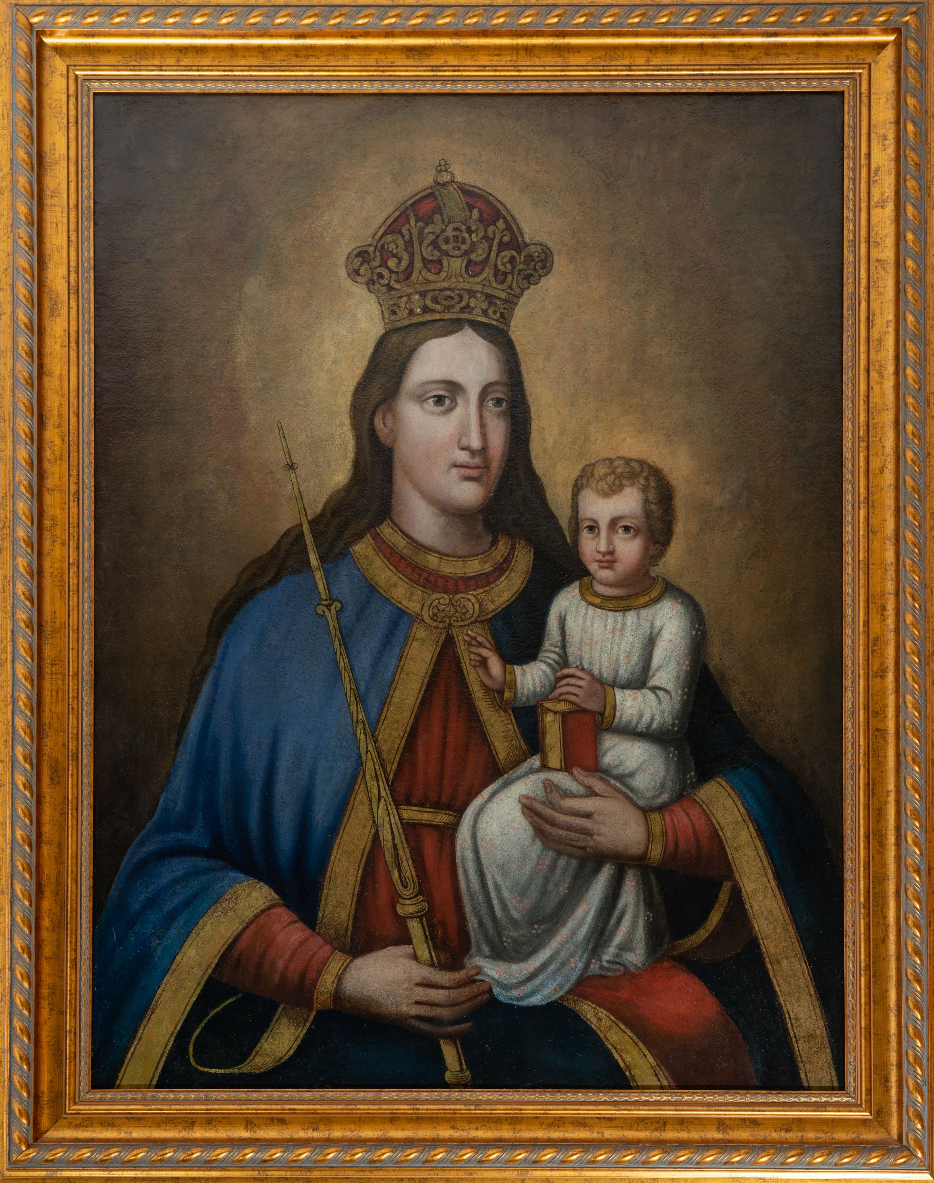 Probably the author of the painting of Madonna and the Child is Sebastian Stolarski, a painter from Myślenice, who worked in many churches in Western Galicia, often copying older works. The work in question also repeats the conventional compositional system, but the method of modeling of the face, treating the drapery and the colour scheme of the garments is already typical of the 19th-century painting.