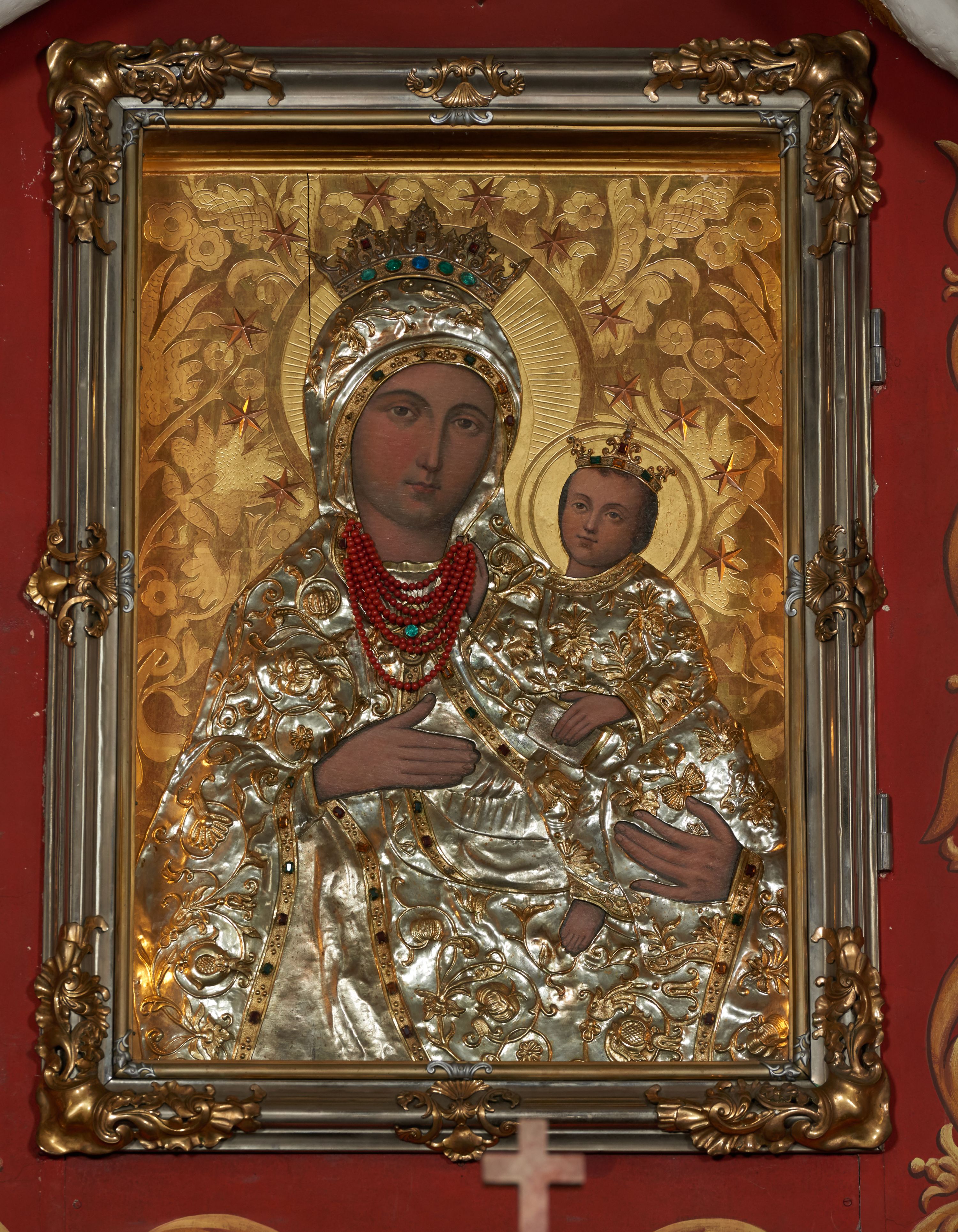 The painting of Madonna and the Child exhibited in the high altar of the parish church in Inwałd, has been famous for its miraculous image for centuries. The way the figures are shown gives grounds for combining the painting with numerous Marian representations of Cracovian Hodegetria type preserved in the region of Lesser Poland.