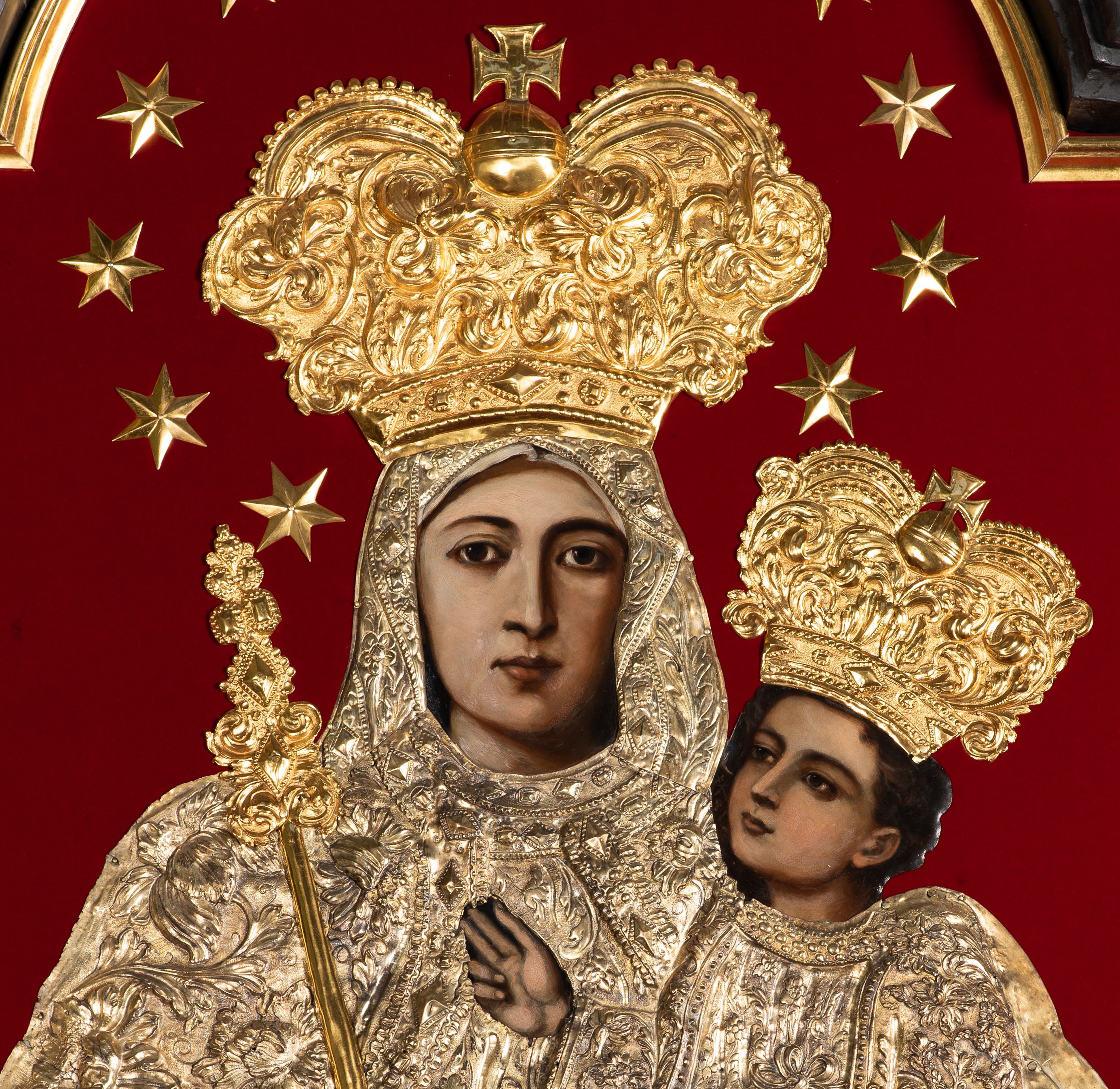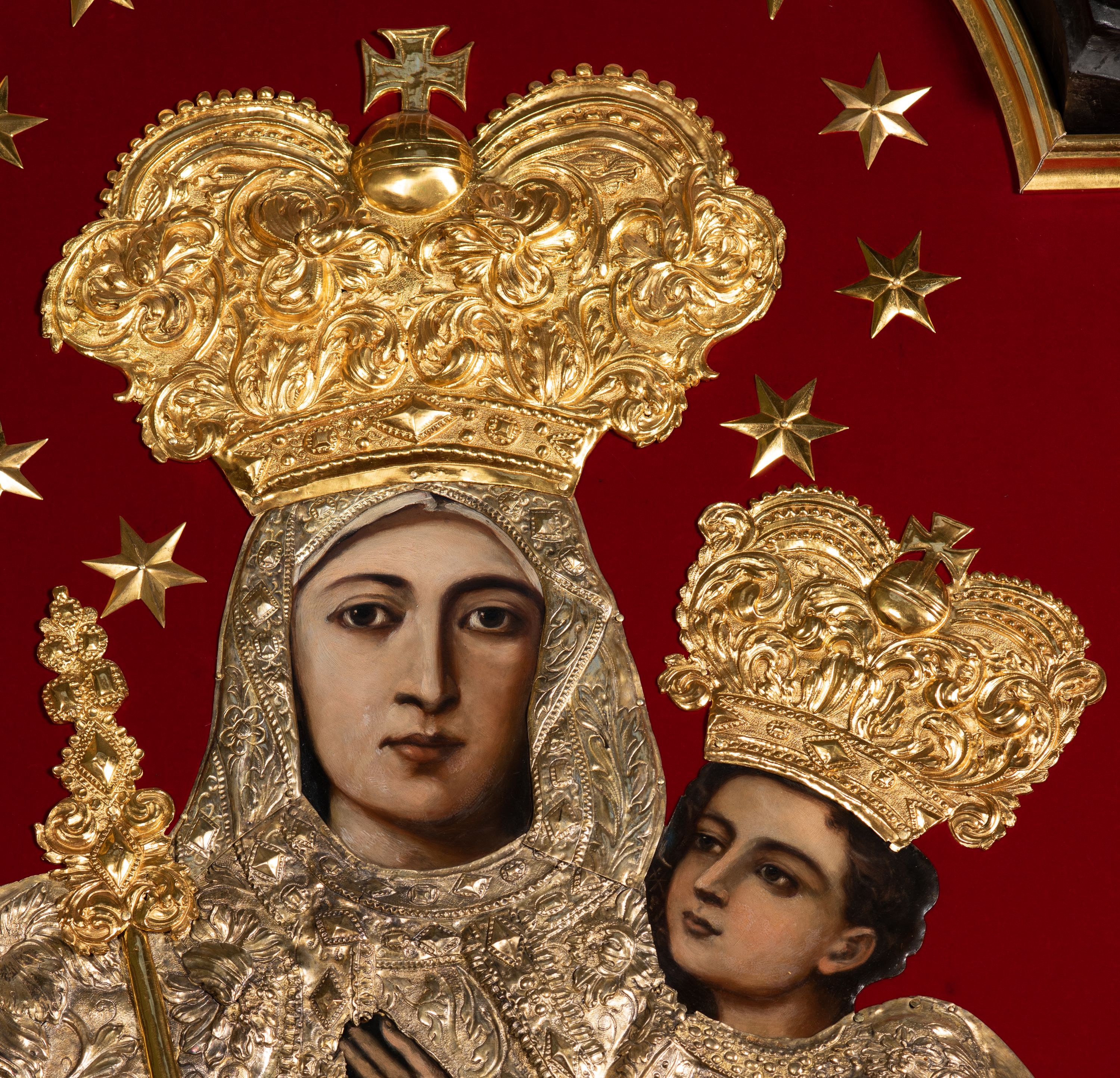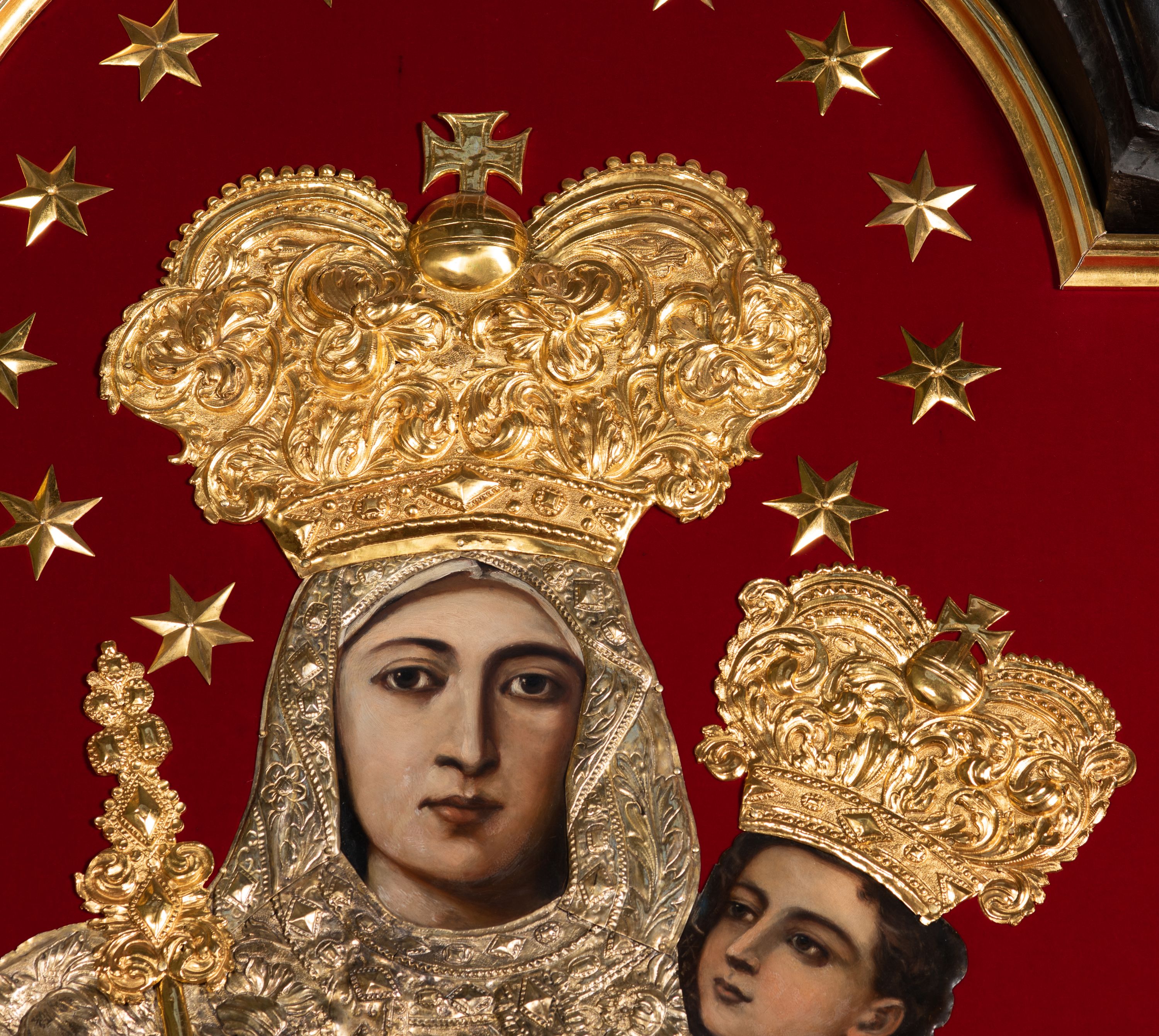 The painting "Madonna and the Child" is composed of parts made at different times. Robes and crowns originate from the early 18th century and originally decorated another image. After the renovation of the church, they were transferred to another altar, joined with a depiction of Mary from the beginning of the 20th century and pieced together at the bottom.