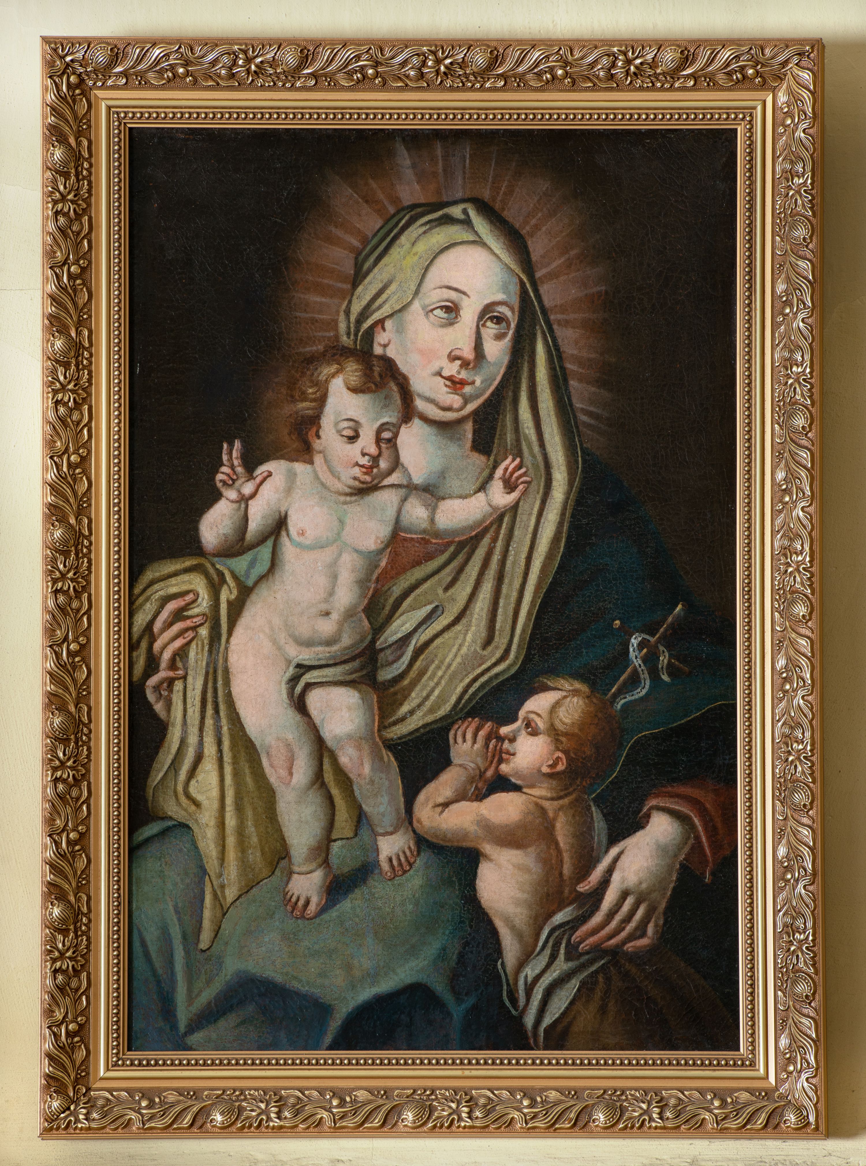 A painting depicting the Virgin Mary, the Child and St. John the Baptist, hung on the northern wall of a chancel, was probably made in the 17th century.