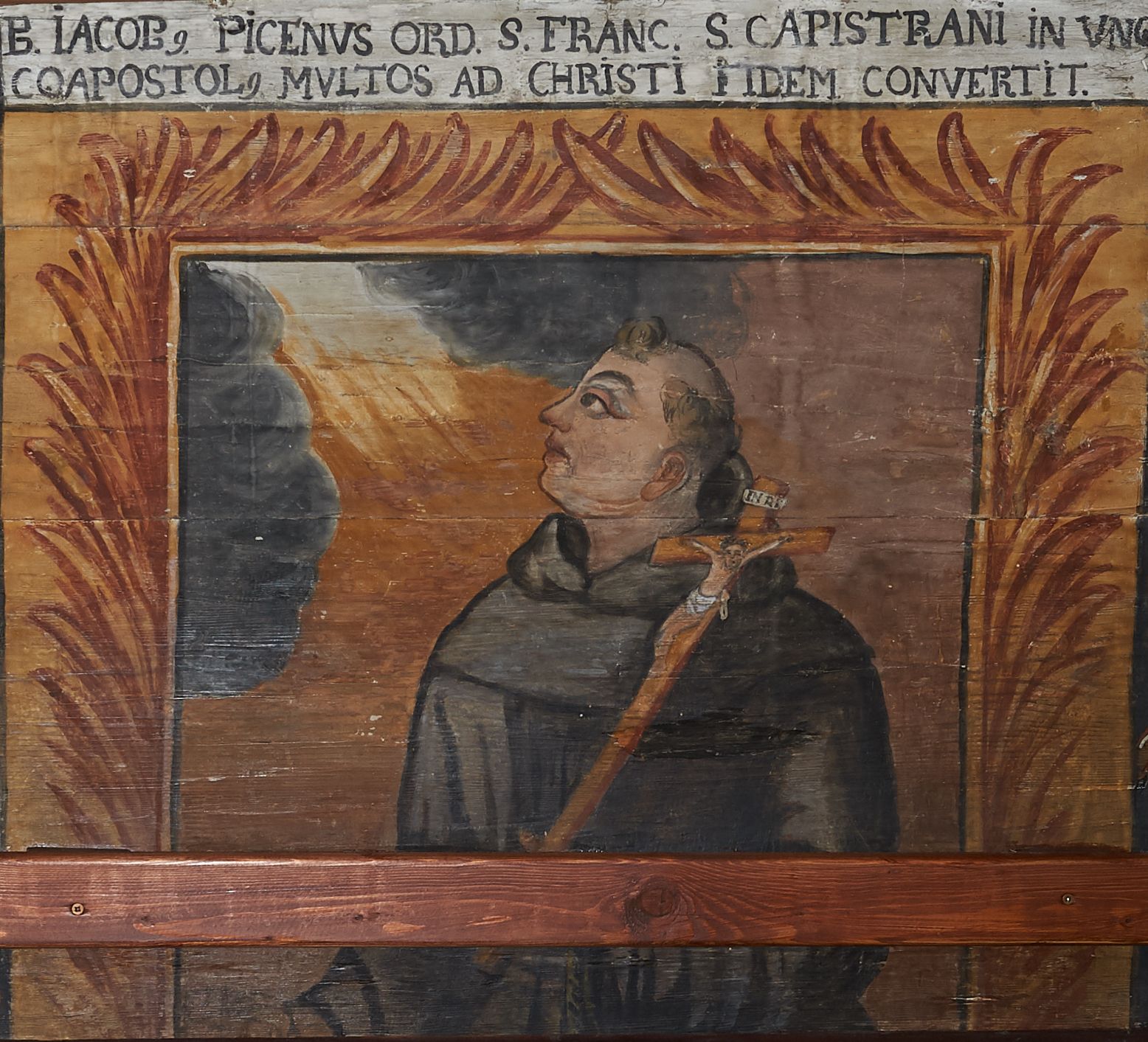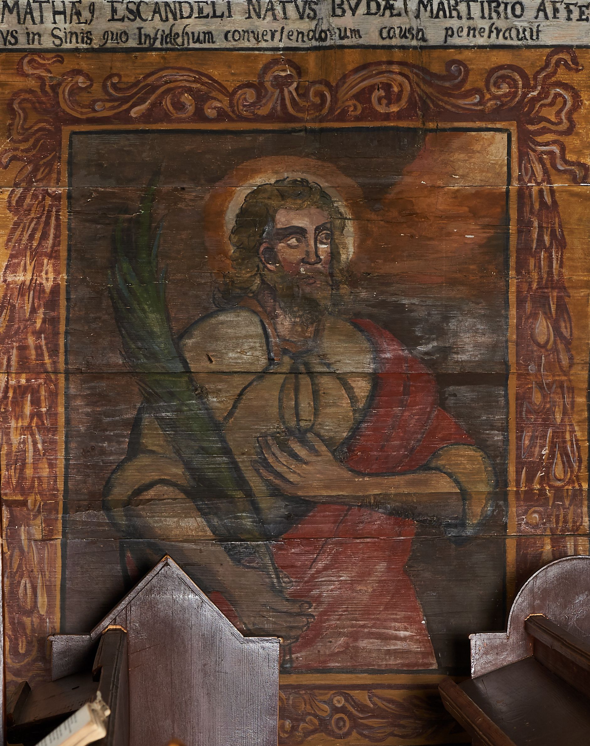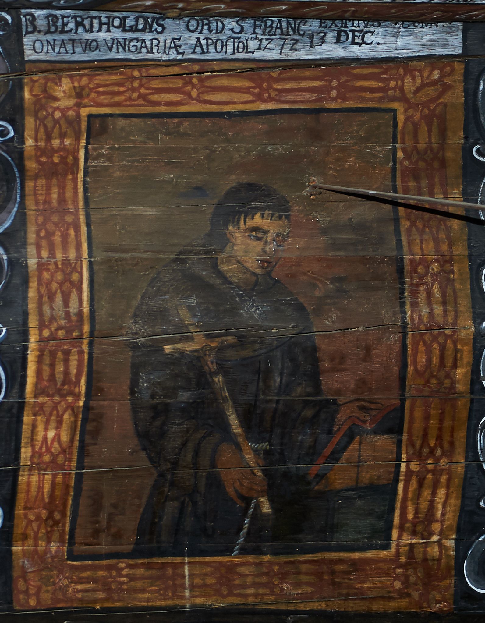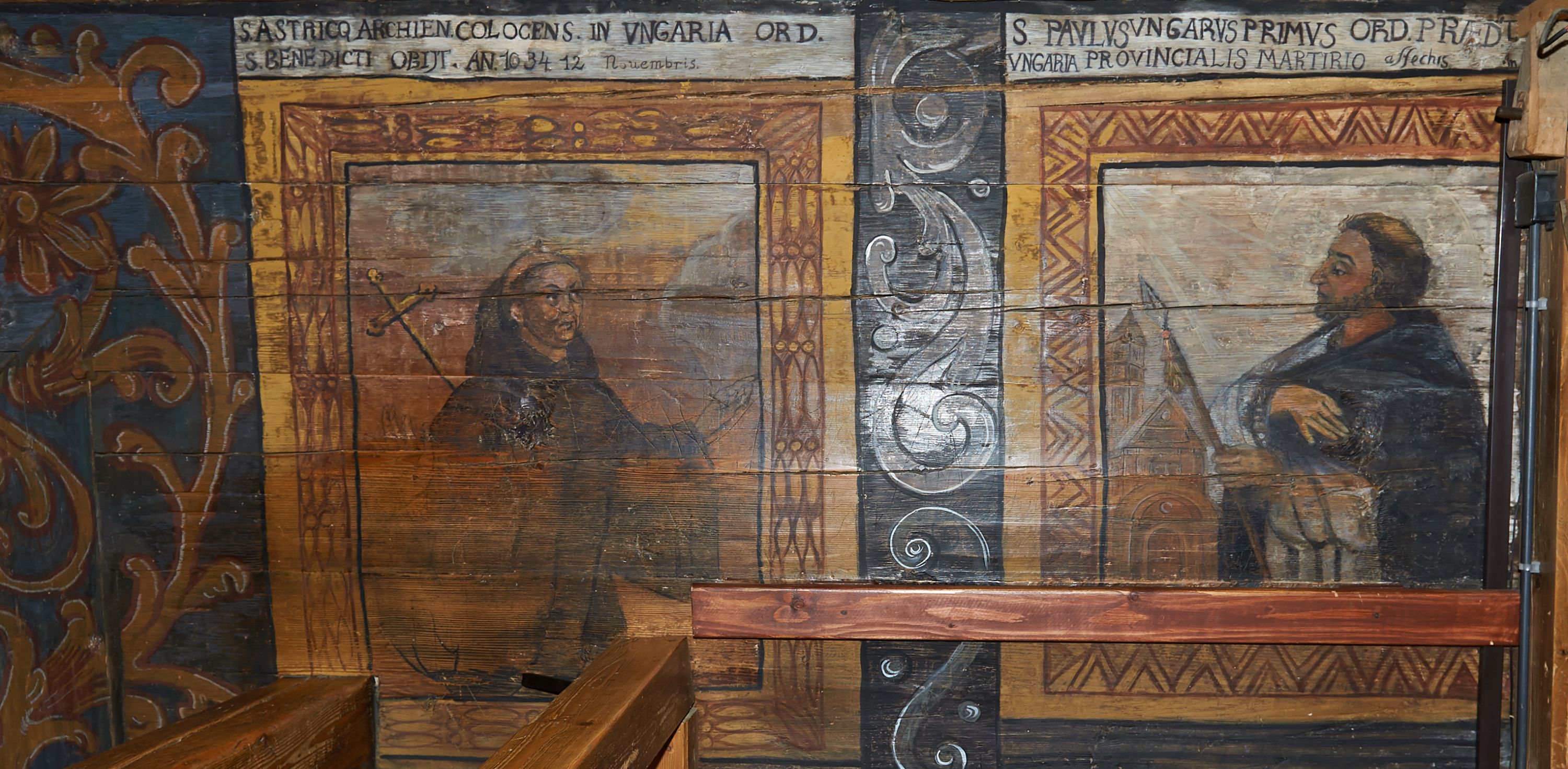 The wall polychrome of the church was created by anonymous painters in several stages. It is assumed that in the years 1656 to 1711. The most important paintings include 14 paintings depicting scenes in Saint John the Baptist's life. The second series of polychromes includes 49 images of saints and blessed people connected with the history of Christianity in Hungary: 4 kings, 2 princes next to the altar, 11 bishops and St. Gunther at the bottom of the chancel's walls, another 15 saints and blessed people (conventuals, martyrs and hermits) under the organ front in the nave on the northern wall and on choir on the western wall. There are also 16 women on the roof truss in the nave, under the ceiling. This part of the polychrome was probably made in 1711, as this date can be seen on the rood beam. The subsequent series of polychromes is the Ten Commandments, painted on the choir front. It depicts keeping or breaking the commandments. These are pictures in lives of peasants, burghers, petty nobility and manor houses in the 17th/18th centuries. Polychrome is all the more valuable as it is the first presentation of a national costume of Orava. The devil was also imagined in six scenes.