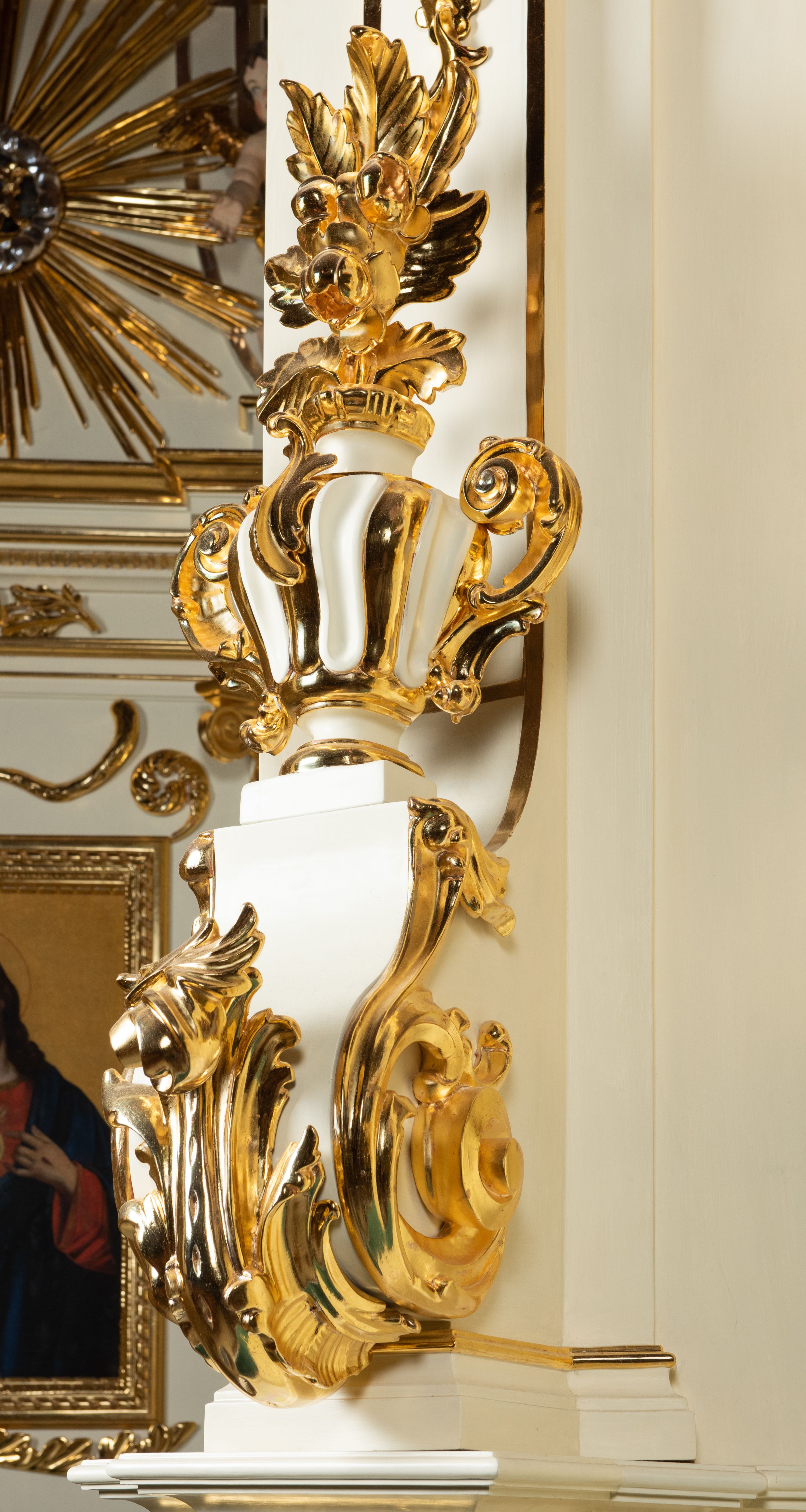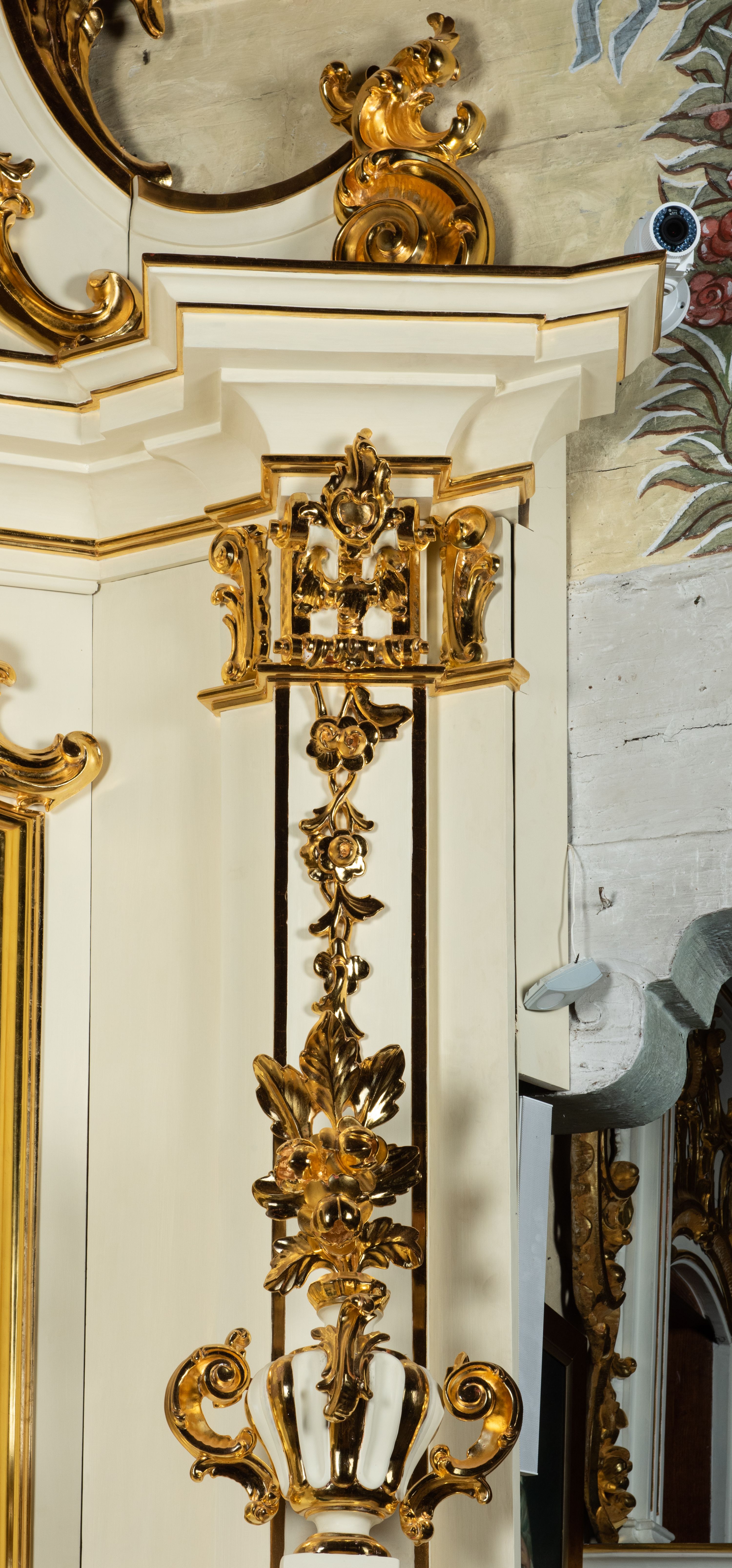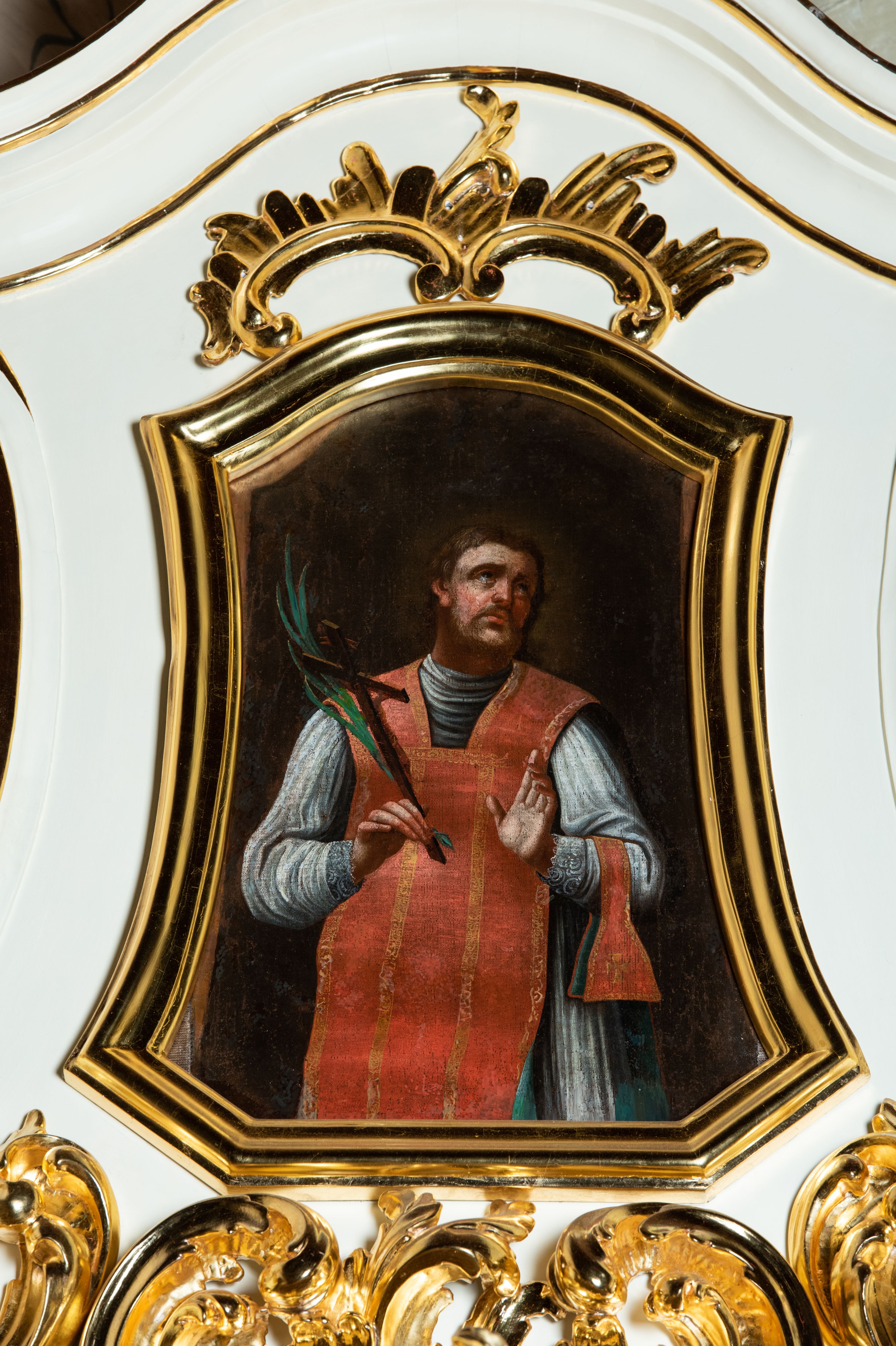 The side altar in the church in Marcyporęba was made in Rococo style probably by an anonymous employee of Antoni Gegenbaur in the second half of the 18th century. In the middle area there is a painting of Our Lady of Perpetual Help, and in the altar finial there is a painting of Saint Valentine.