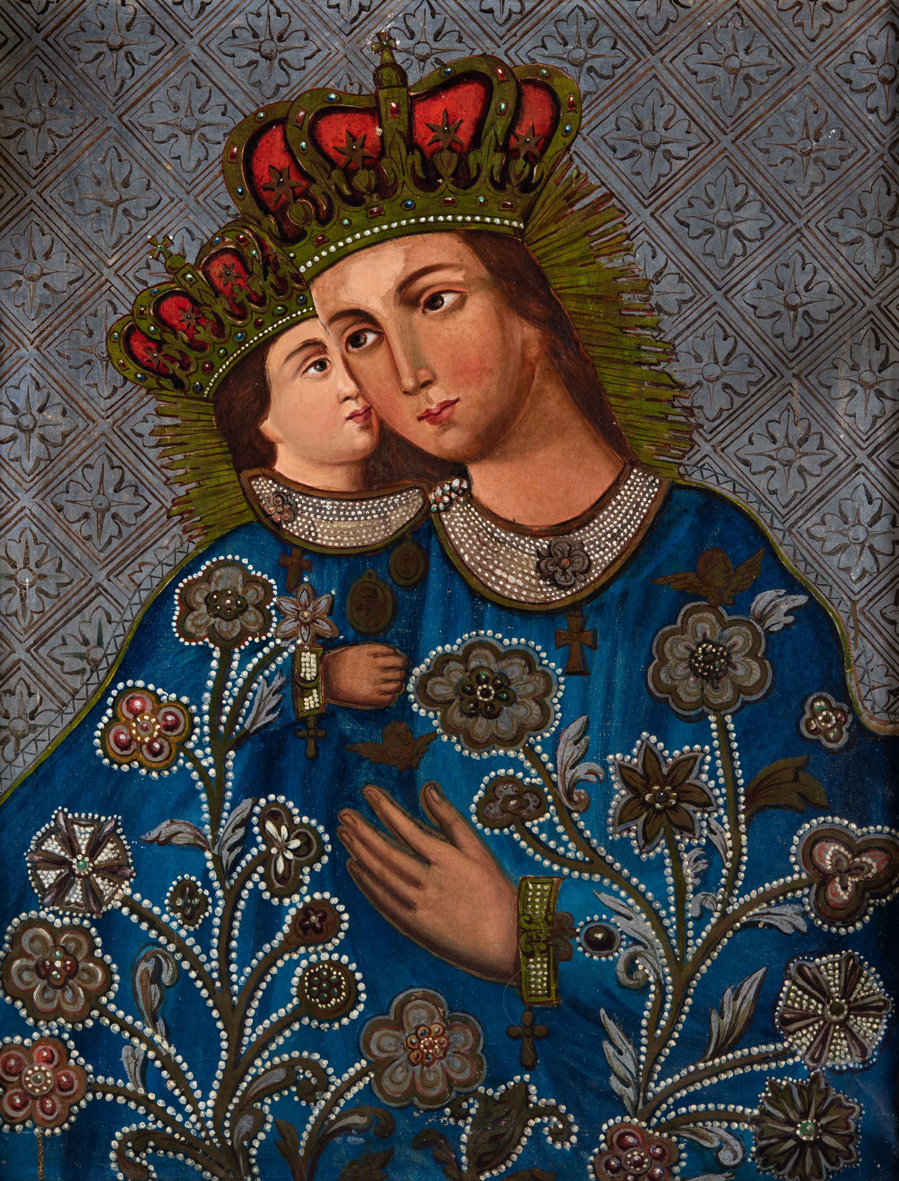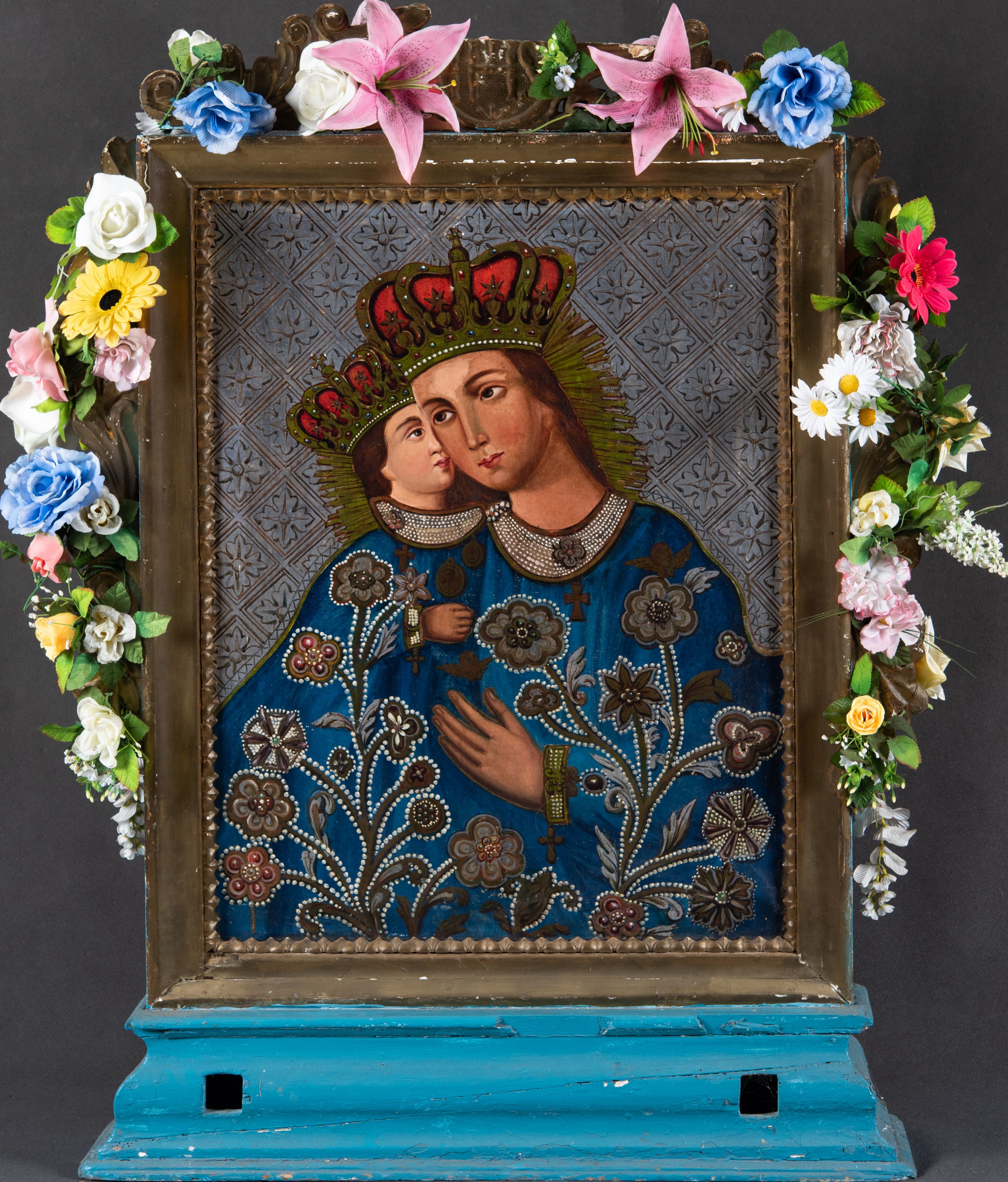 The procession float in the parish church in Włosienica on the obverse depicts Our Lady of Calvary, while the reverse side is occupied by the scene depicting Our Lady of La Salette. The dating factor is the theme of the reverse side of the procession float referring to the apparitions in La Salette, which took place in 1846 and which were recognised by the Church in 1951. Therefore, the procession float was created in the second half of the 19th century.
