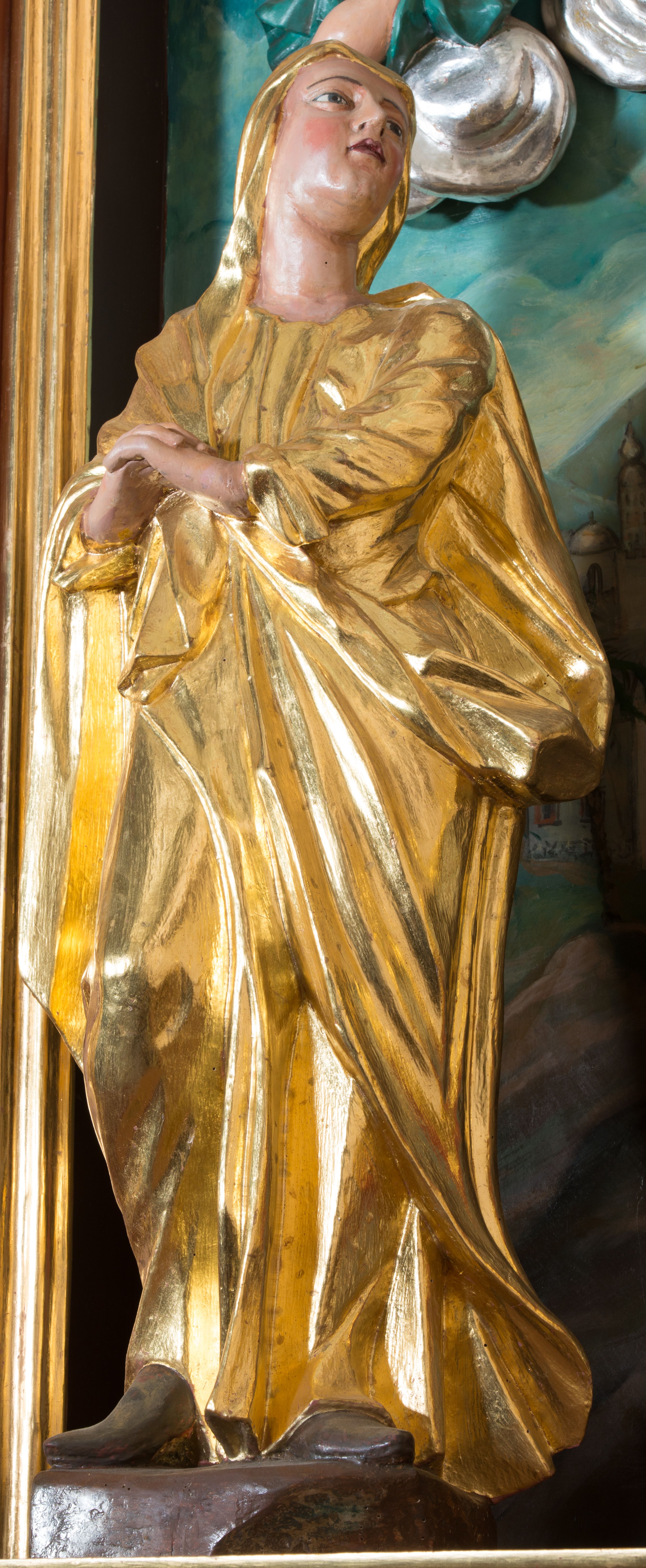 The sculpture of Our Lady of Sorrows was made in the 18th century in an unknown sculptural workshop. The sculpture belongs to, the so called Crucifixion Groups with the John the Evangelist and Mary Magdalene which illustrates a scene described in the Gospel of Saint John.