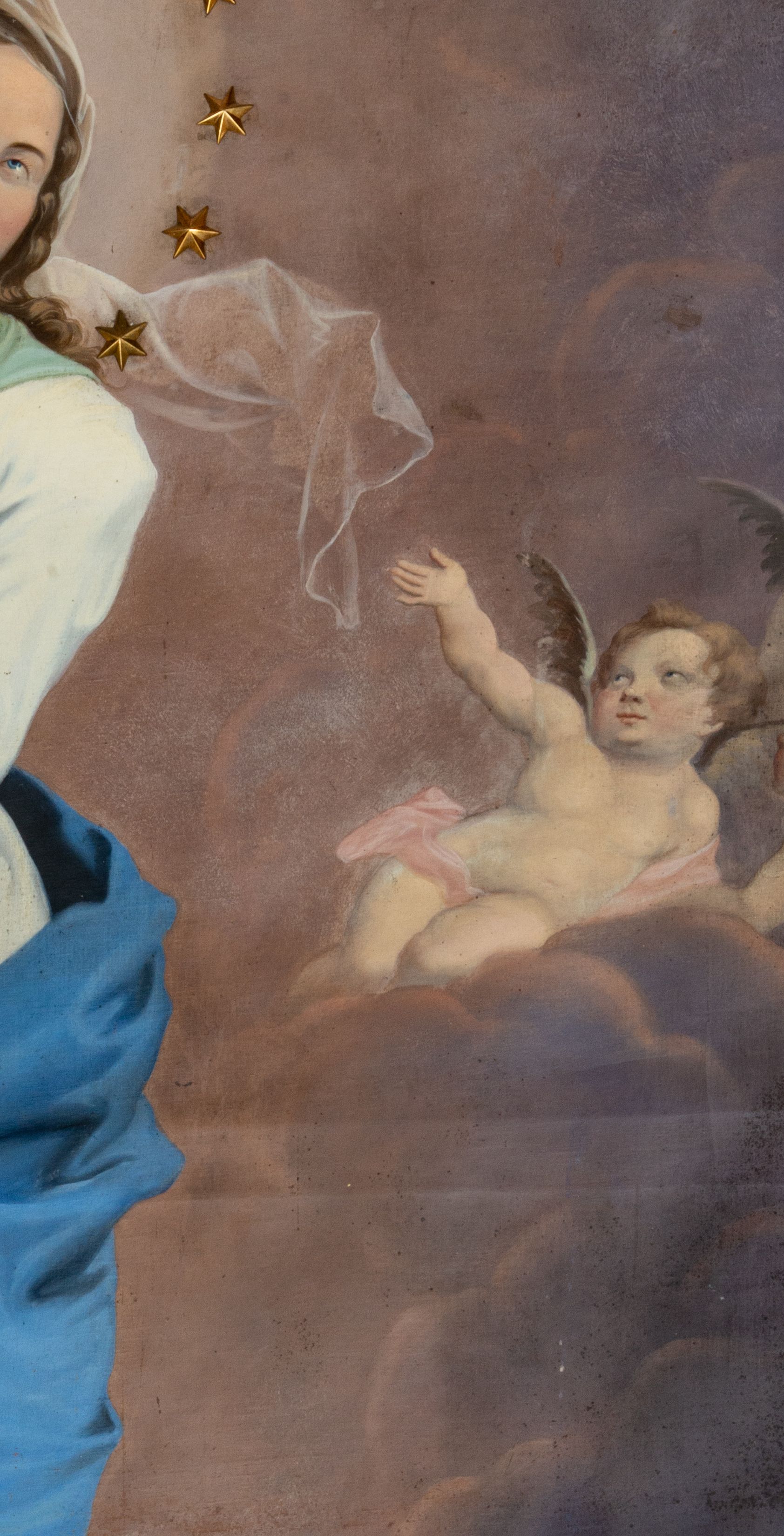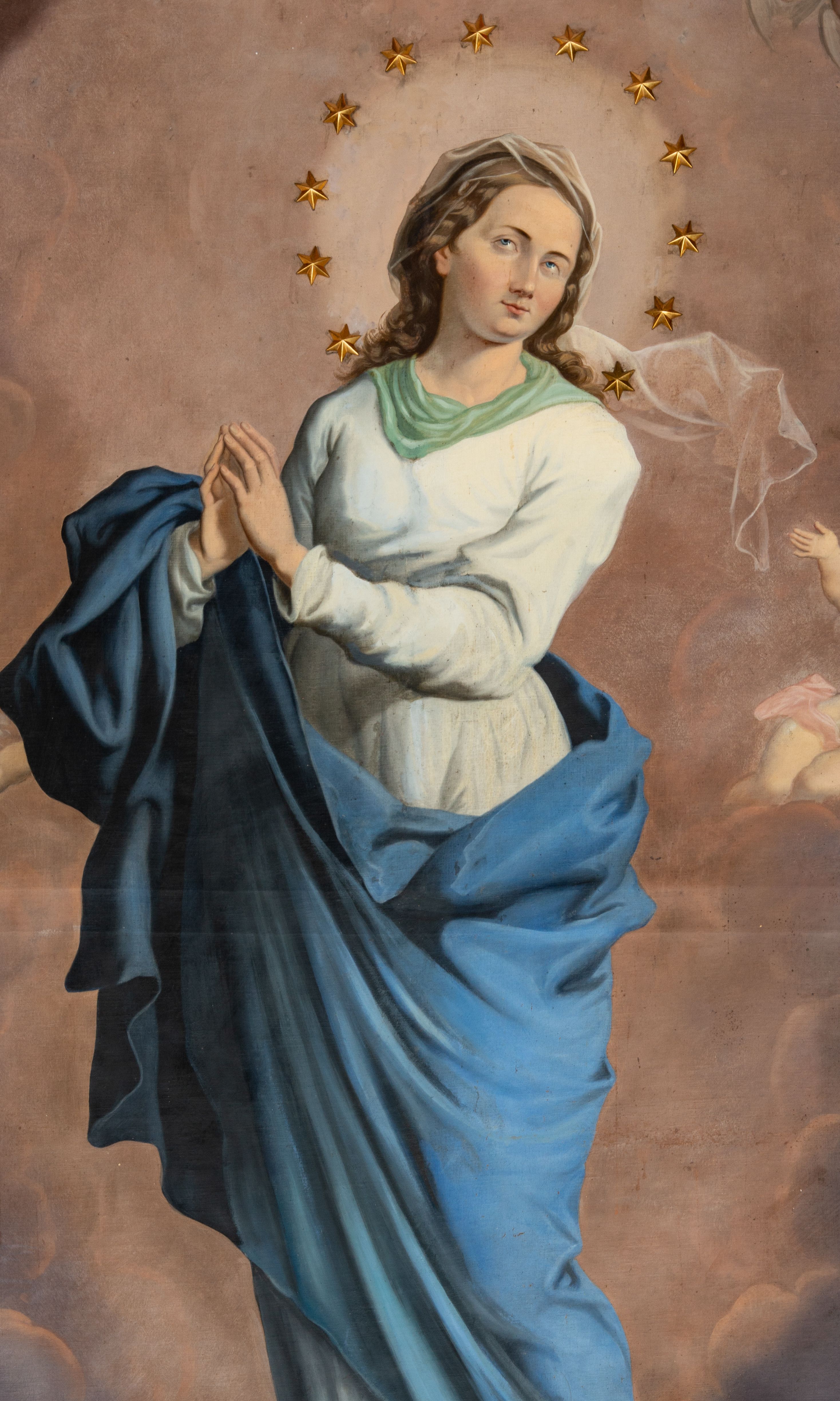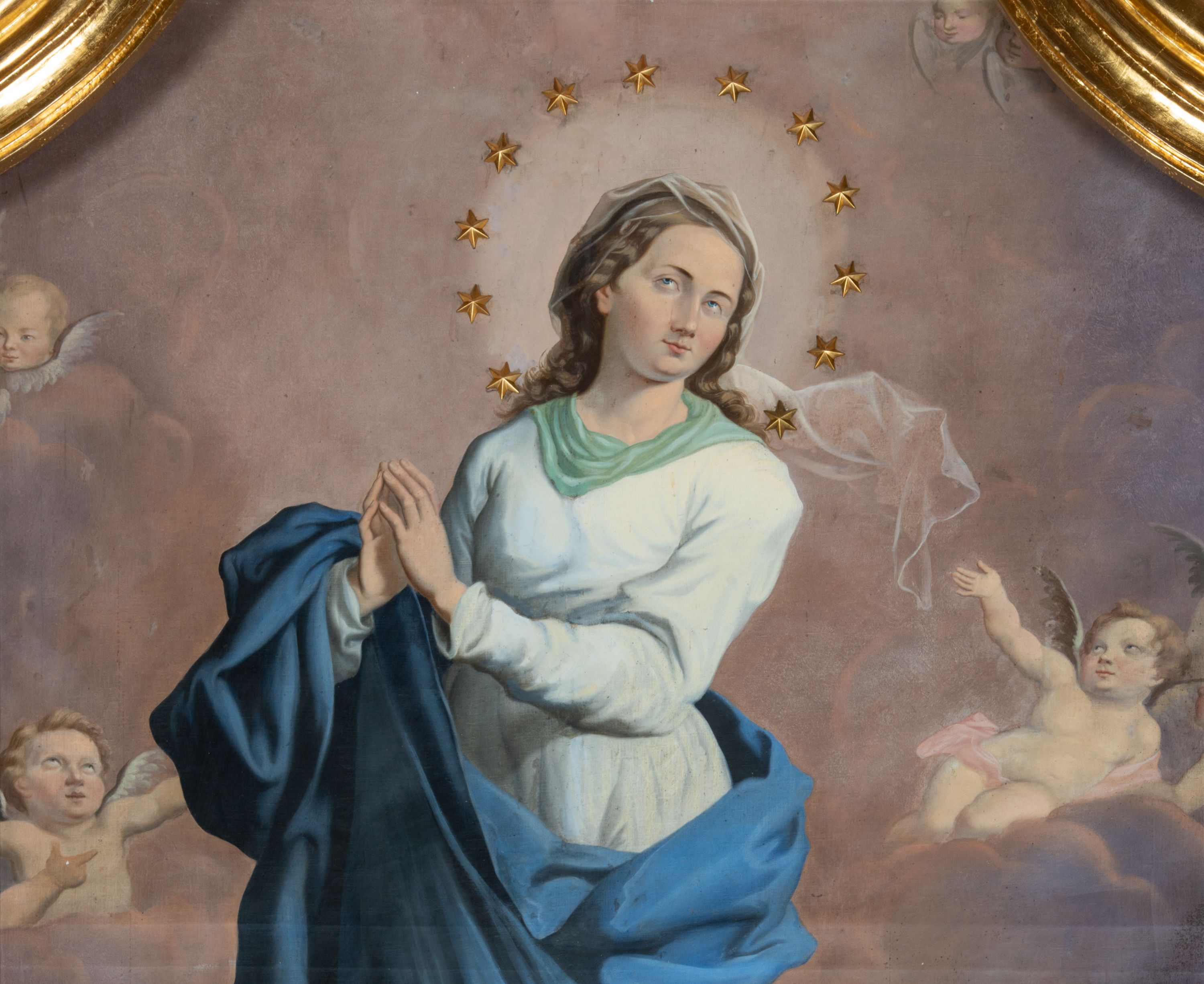 The painting "Our Lady of the Immaculate Conception" was painted by an unknown artist in the 19th century. Our Lady was shown in the traditional iconographic convention, in reference to the words from the St. John's Book of Revelation.