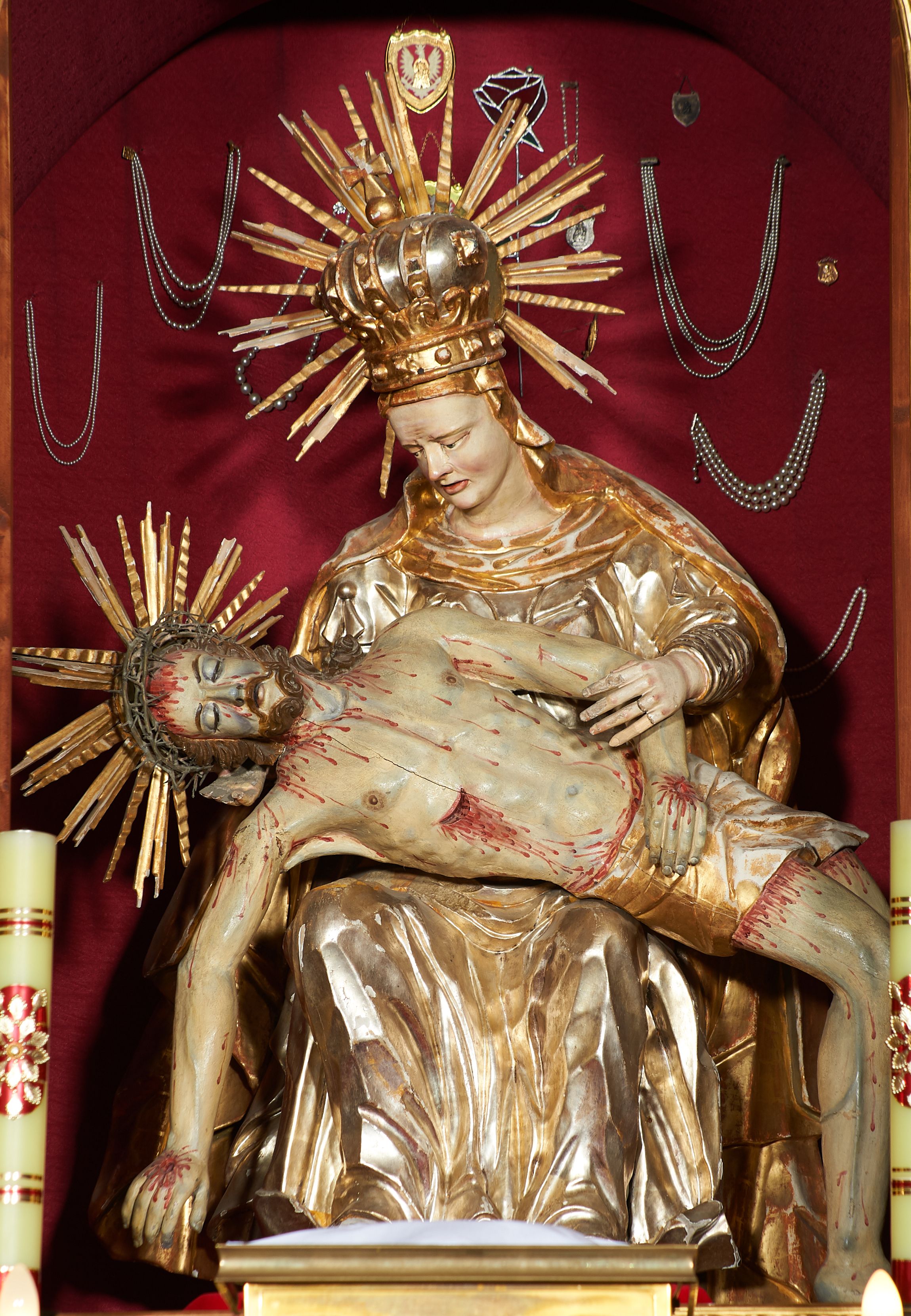 The sculpture was created in the first half of the 18th century in an unknown sculpture workshop. It depicts Pietà – one of the most common iconographic themes, found in churches since the Middle Ages. Originally, the sculpture was located in the chapel of Our Lady of Sorrows and constituted an integral iconographic complex with the sculptural decoration of the altar, on which it was placed.