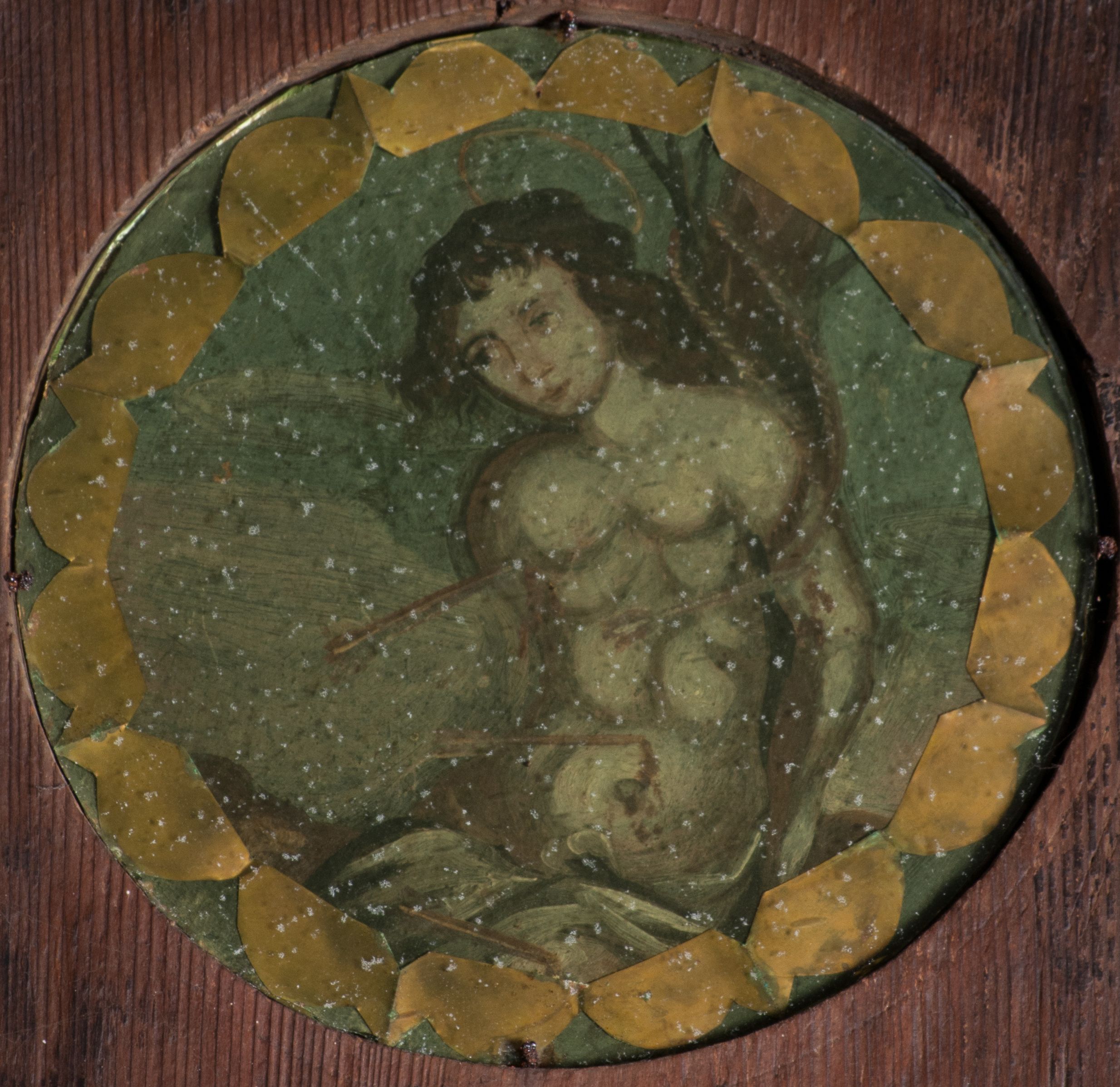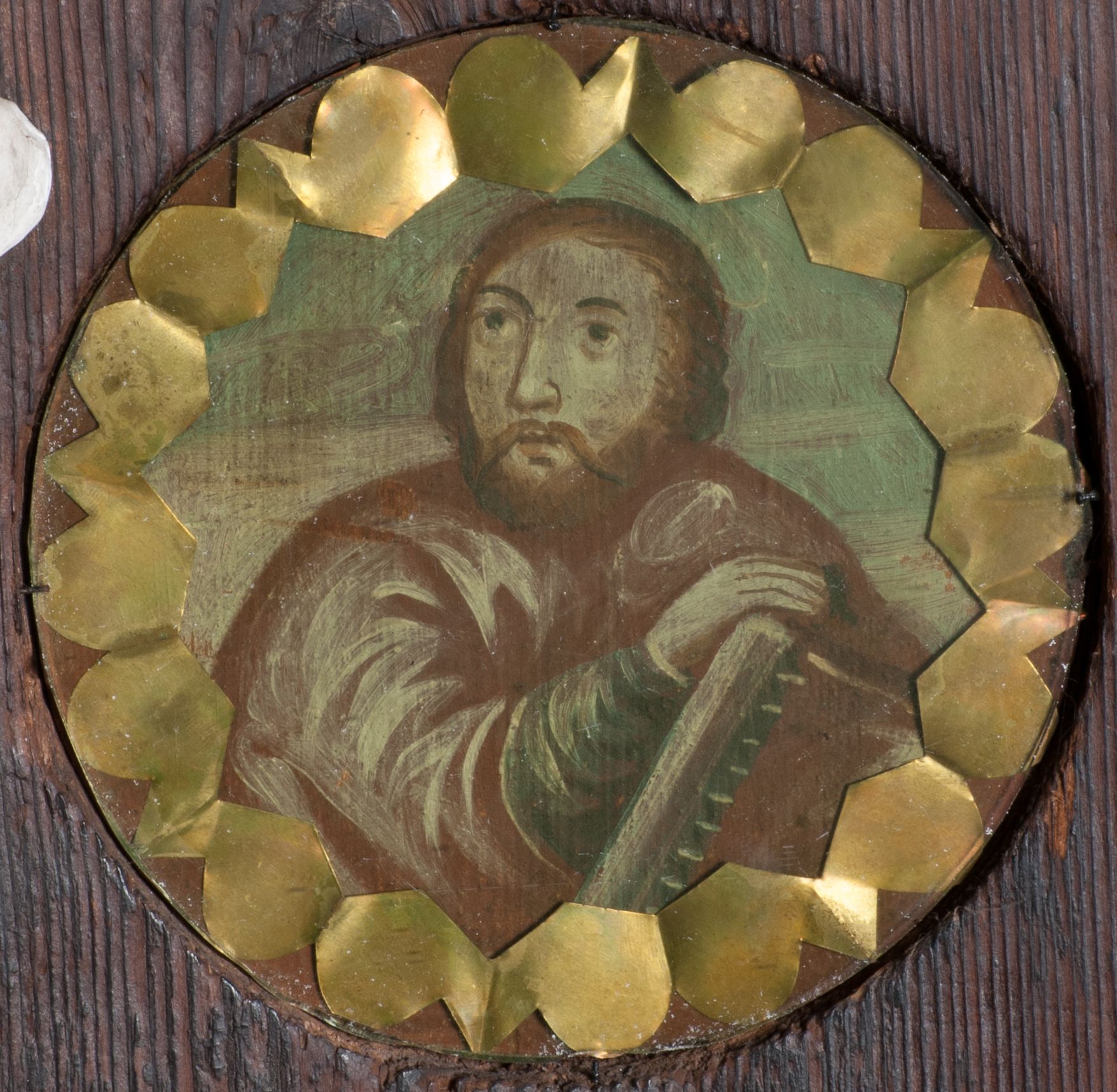 The portable altar with the painting of Madonna and Saints was most probably created in the second half of the 19th century or the first half of the 20th century. It served as an object for private devotion and probably belonged to the furnishings of a private flat, perhaps one of the priests or rectors of the church of St. Sebastian in Wieliczka, as evidenced by the statue of this saint in its altar finial.