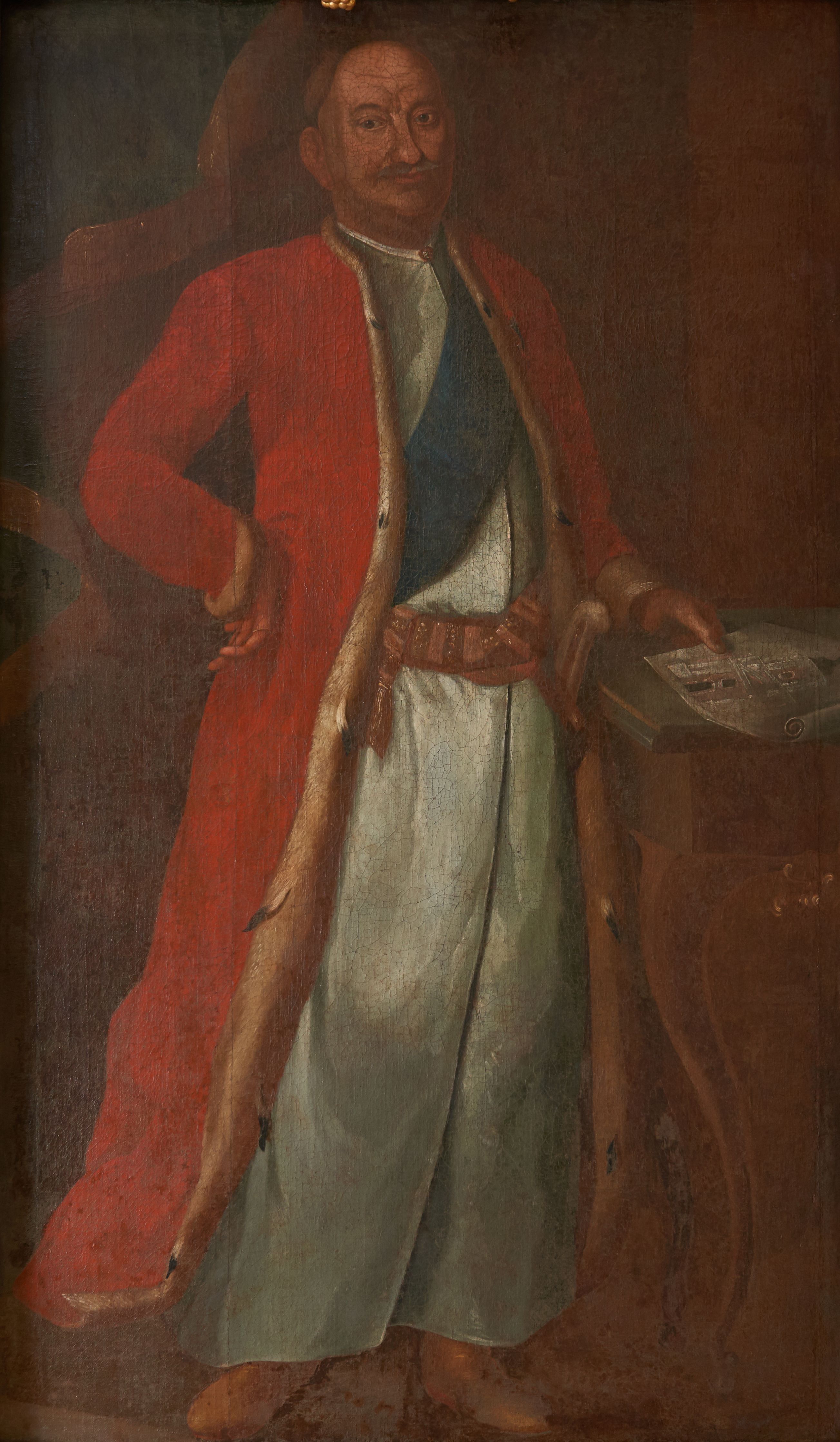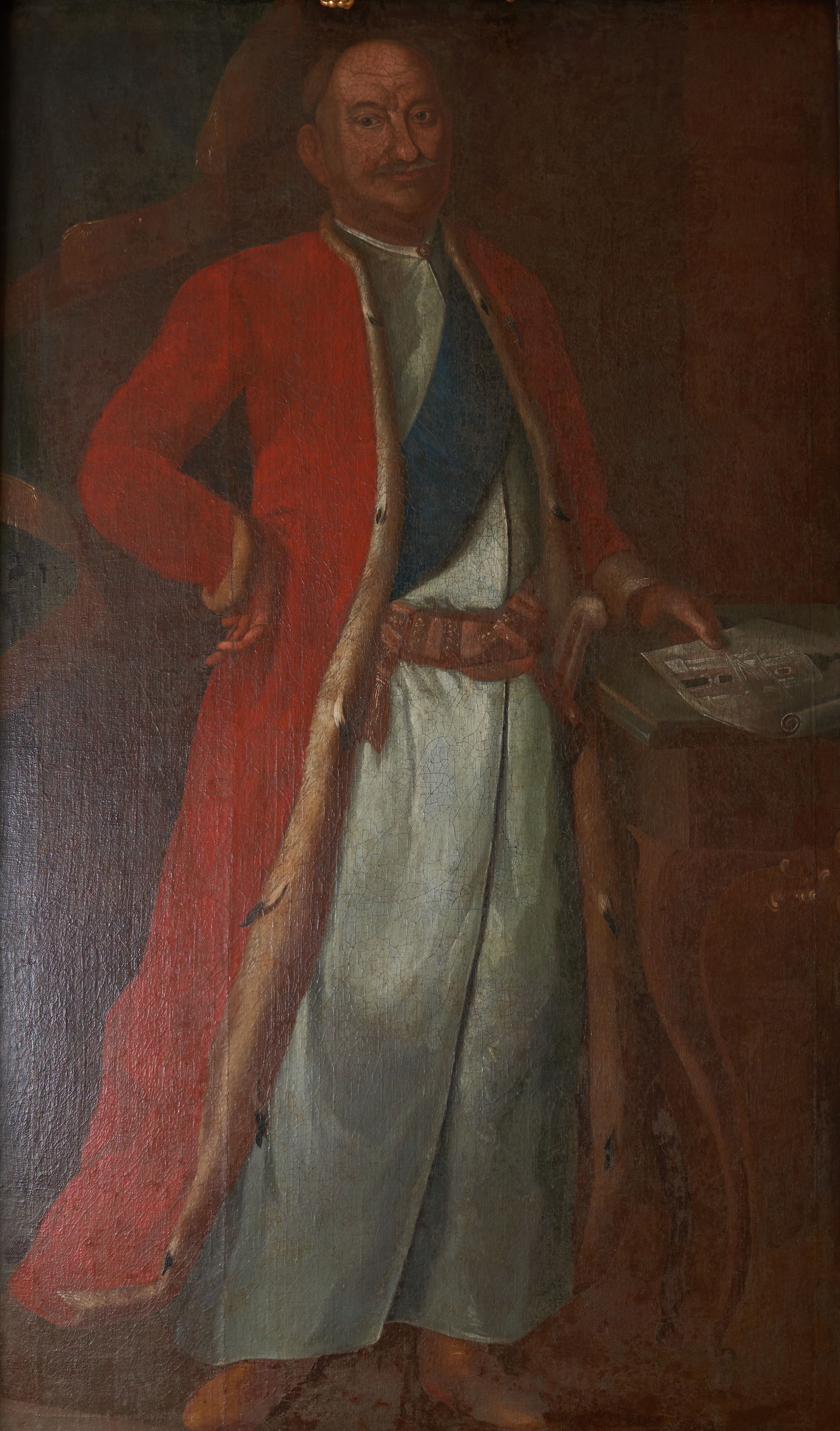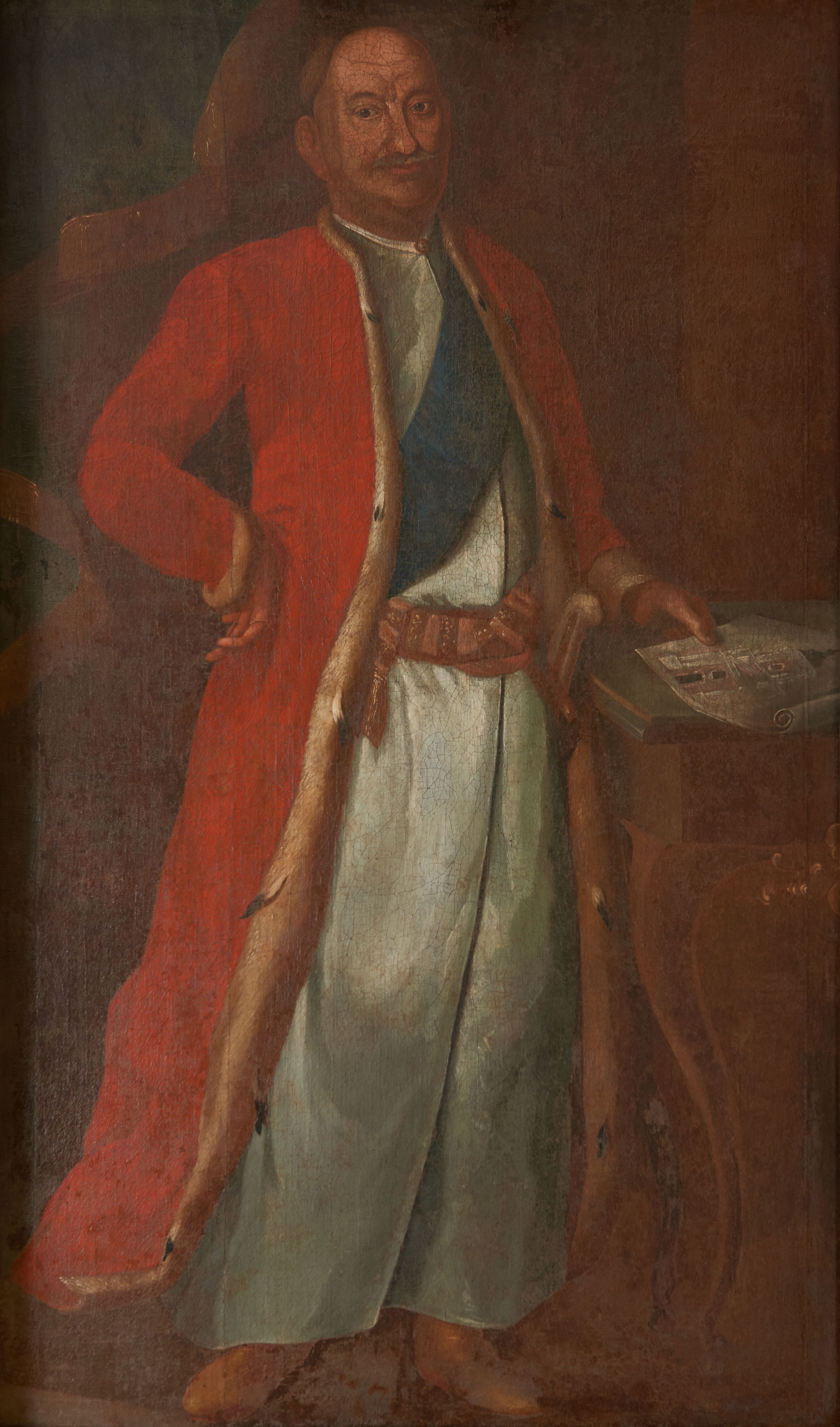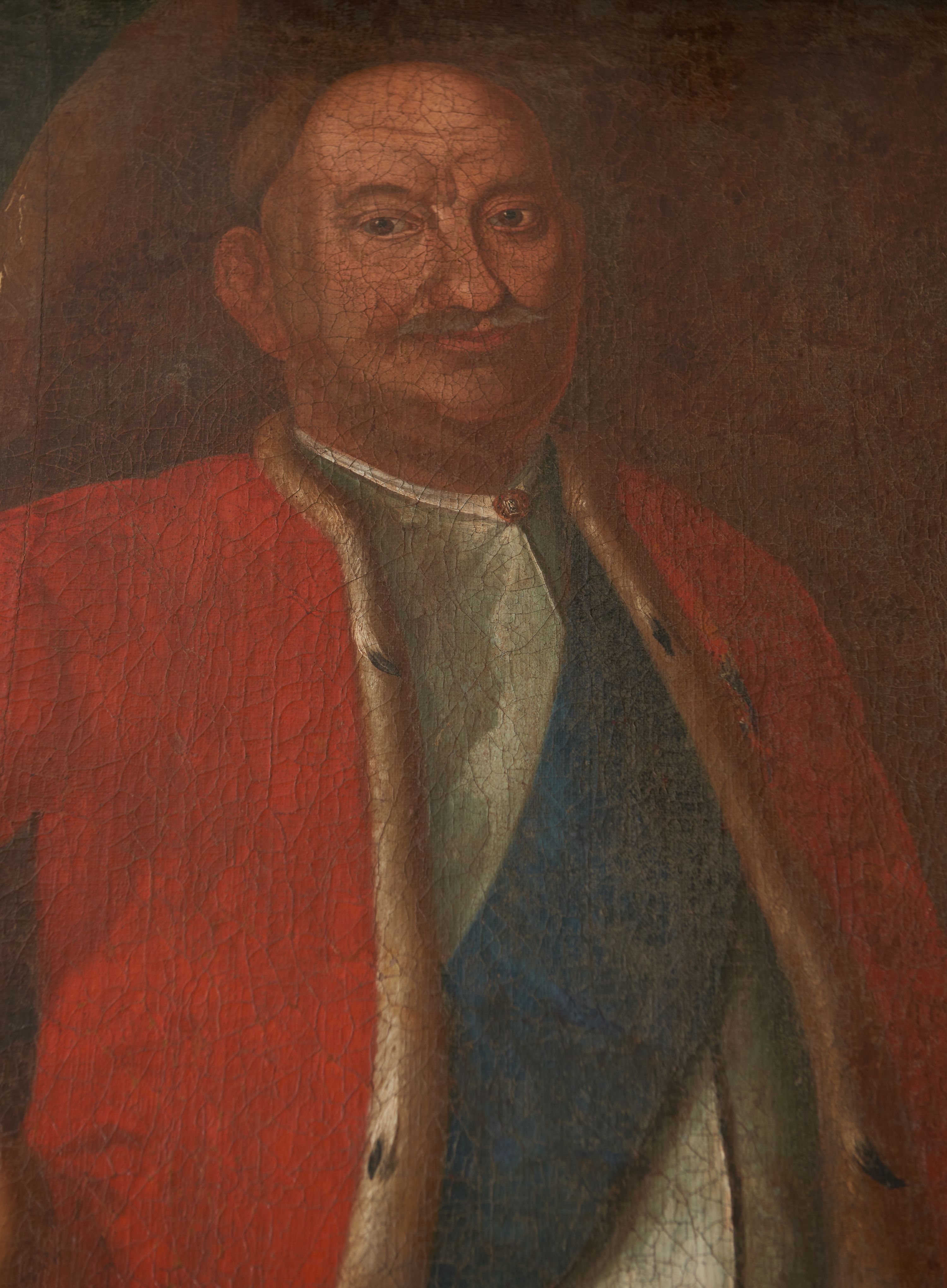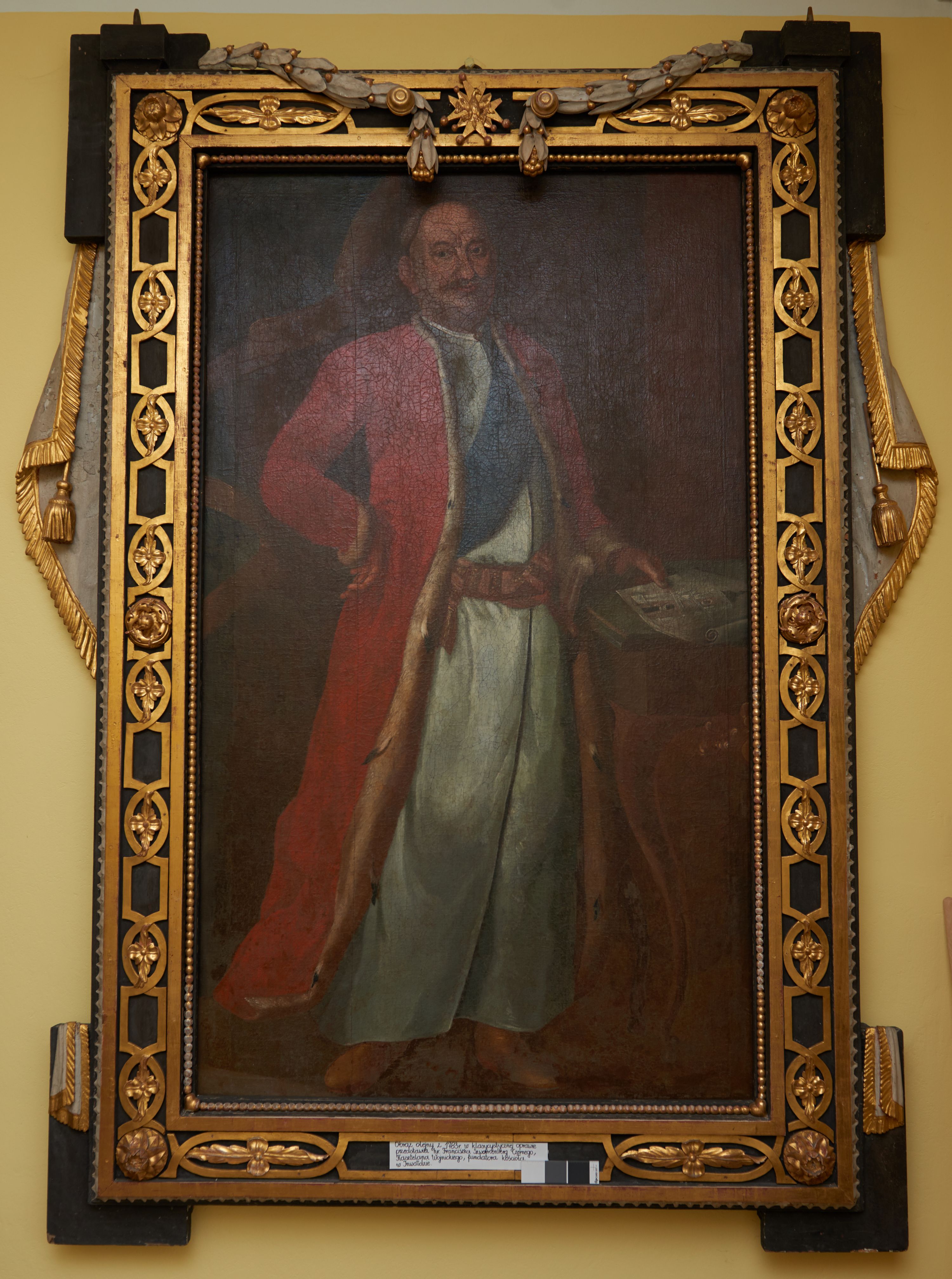 The painting, in the style of secular Polish Baroque painting, depicts a Castellan Franciszek Szwarcenbreg-Czerny, one of the most eminent patrons of sacral architecture in the mid-18th century.