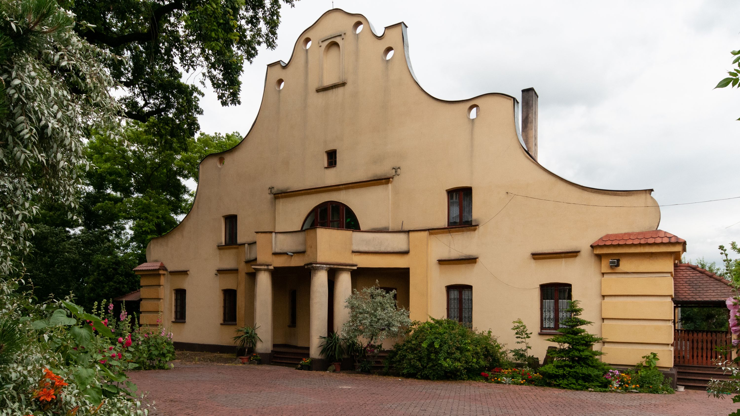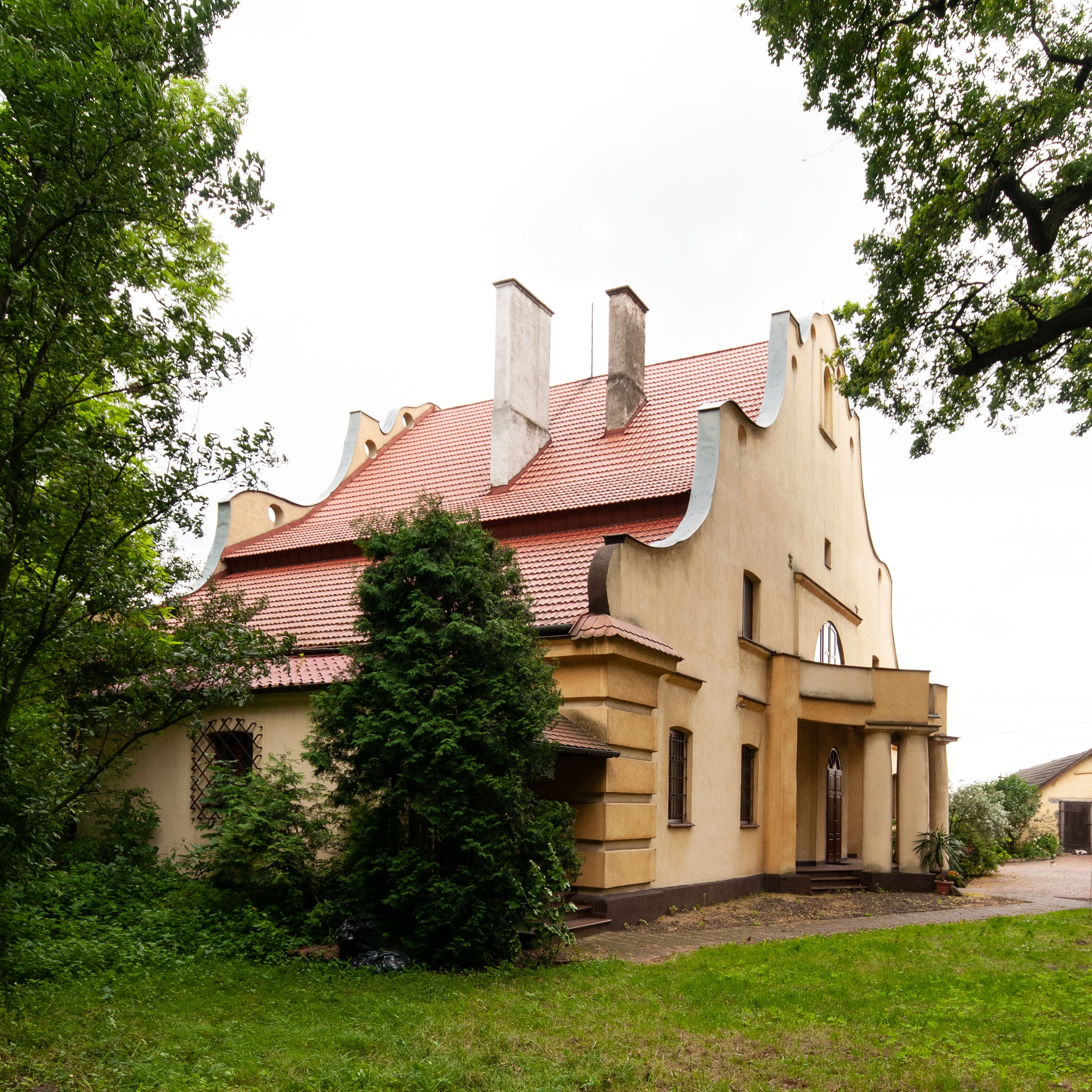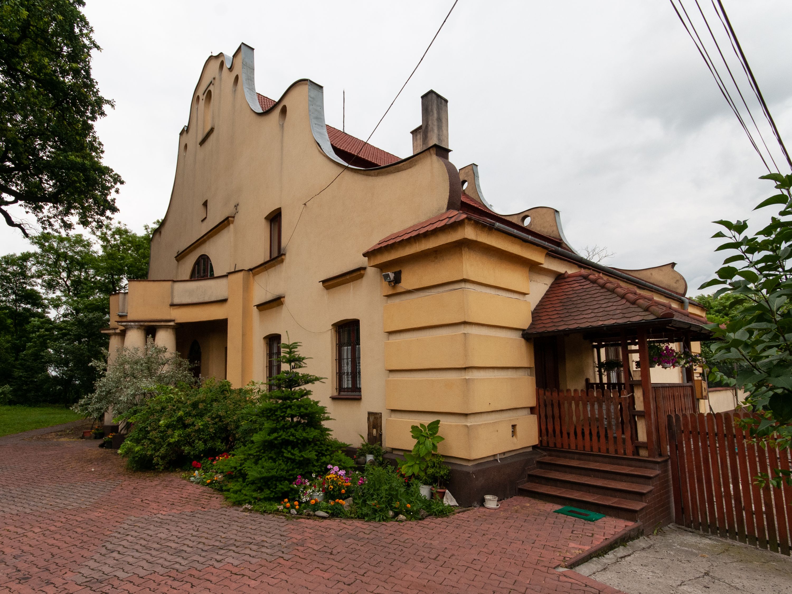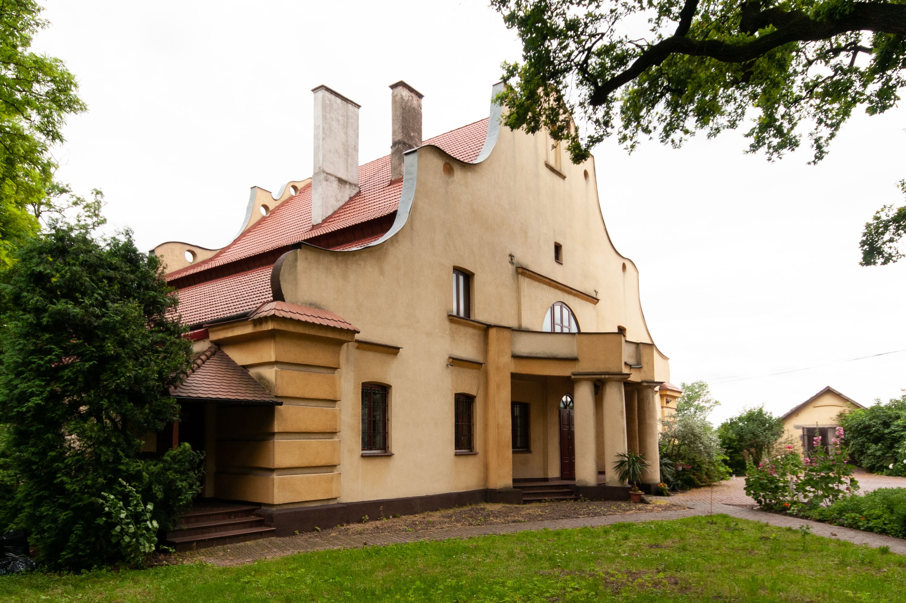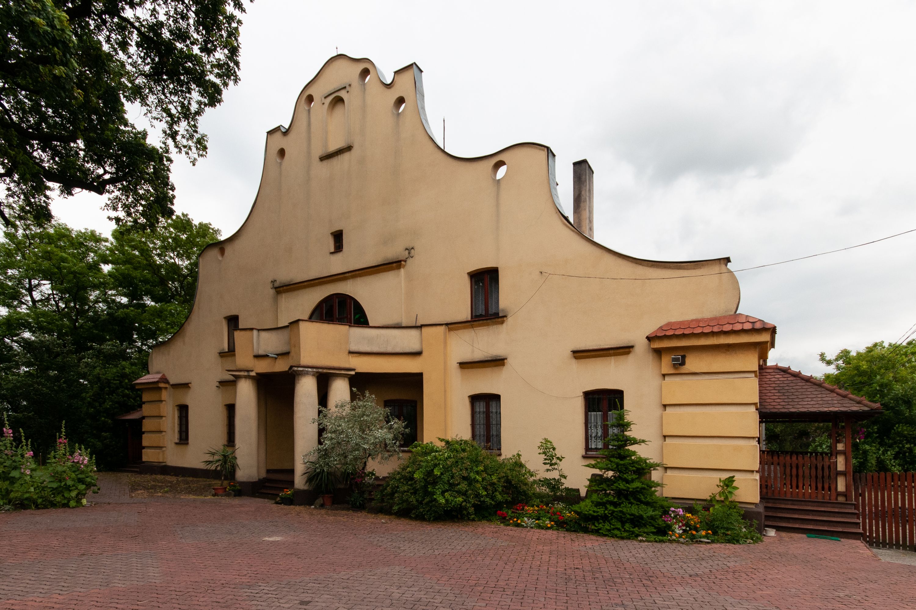 The presbytery was built in 1922-1923 and is a rectangular, functional building, covered with a gable roof. Its extended façade has features of Baroque architecture whose concave-convex shape relates to Baroque art. However, the extended entrance with a window above uses solutions typical of modernist period.