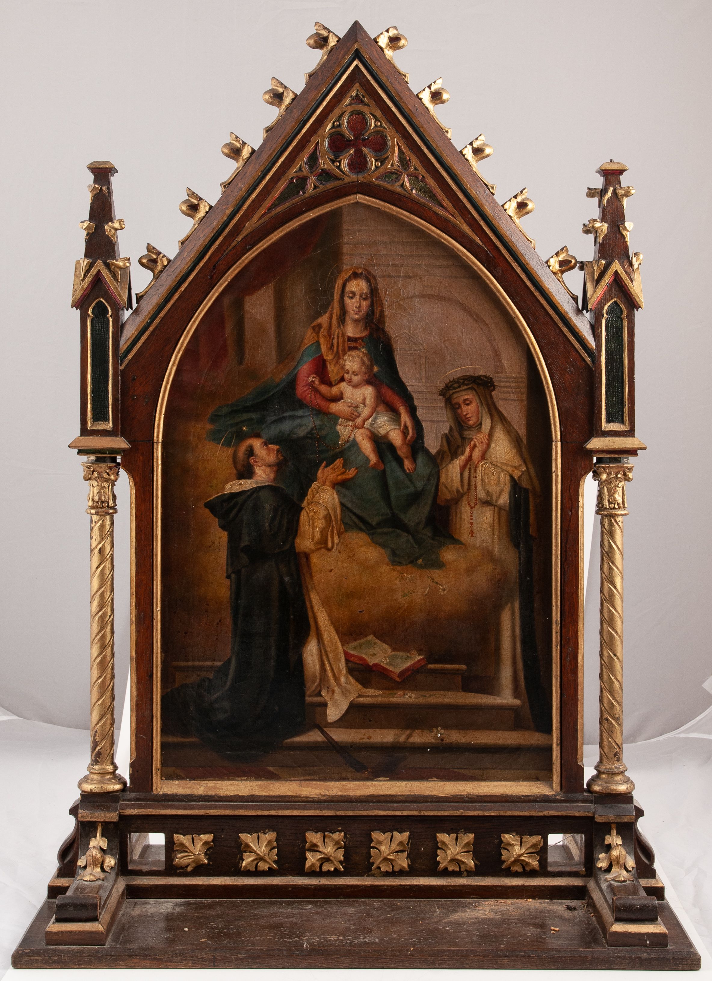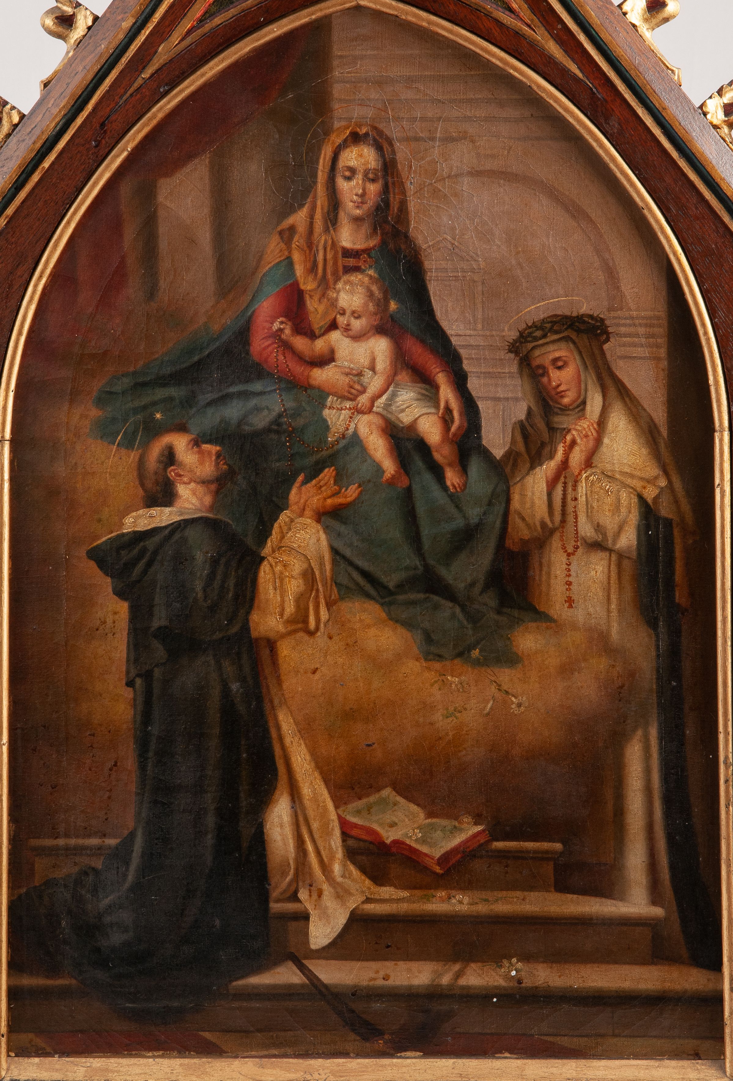 A two-sided procession float with paintings depicting Our Lady of the Rosary with Dominican saints and St. John the Baptist, was made in the second half of the 19th century in neo-Gothic style.