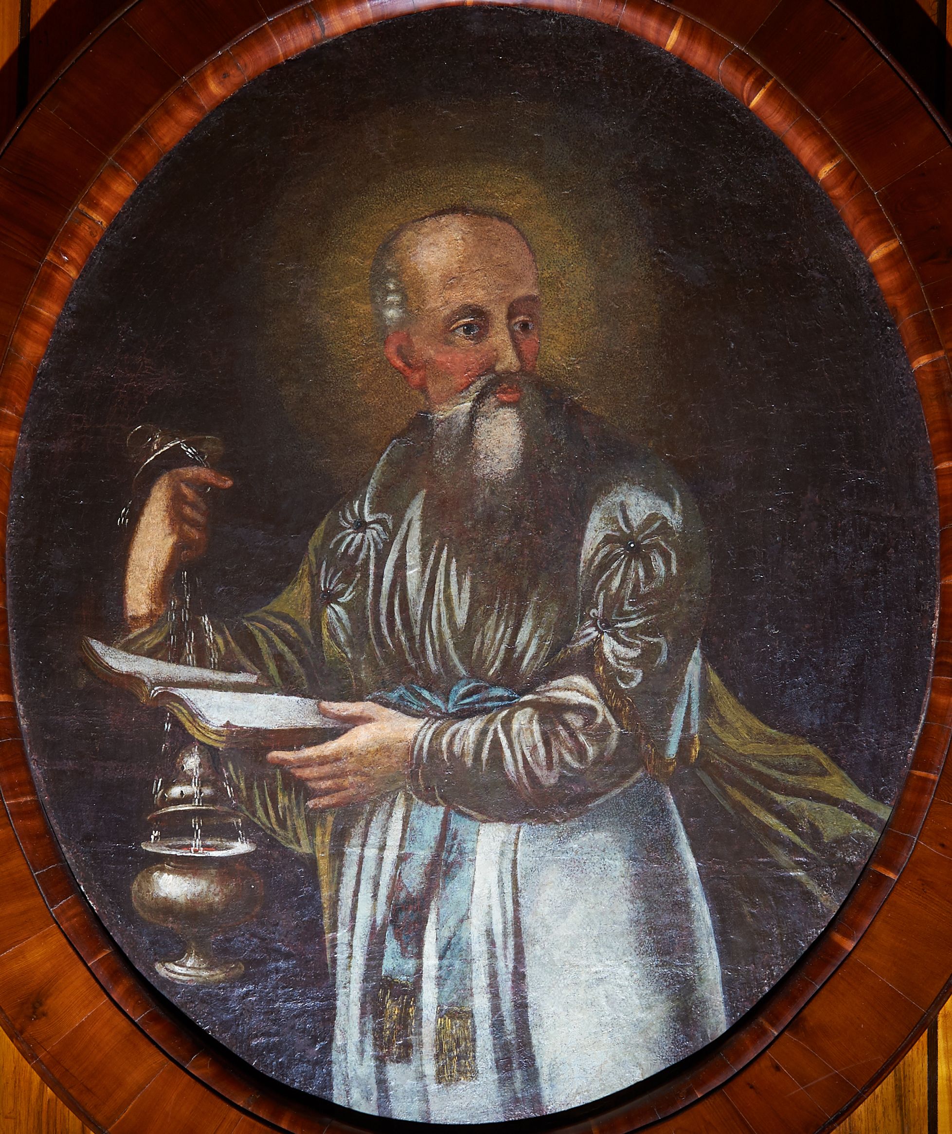 A painting from the 18th century, depicting Zechariah – a prophet, St. Elizabeth's husband and father of St. John the Baptist. It belongs to the series of images representing the Blessed Virgin Mary's family and several characters from the Old Testament, who are a prefiguration of Christ, i.e. Jacob, David and Abraham. The paintings are located in the main nave of the church in Brody.
