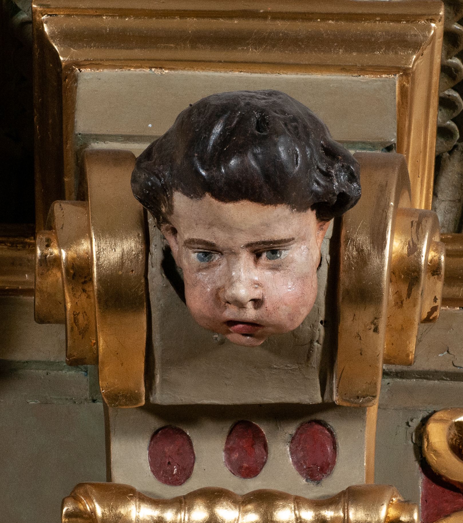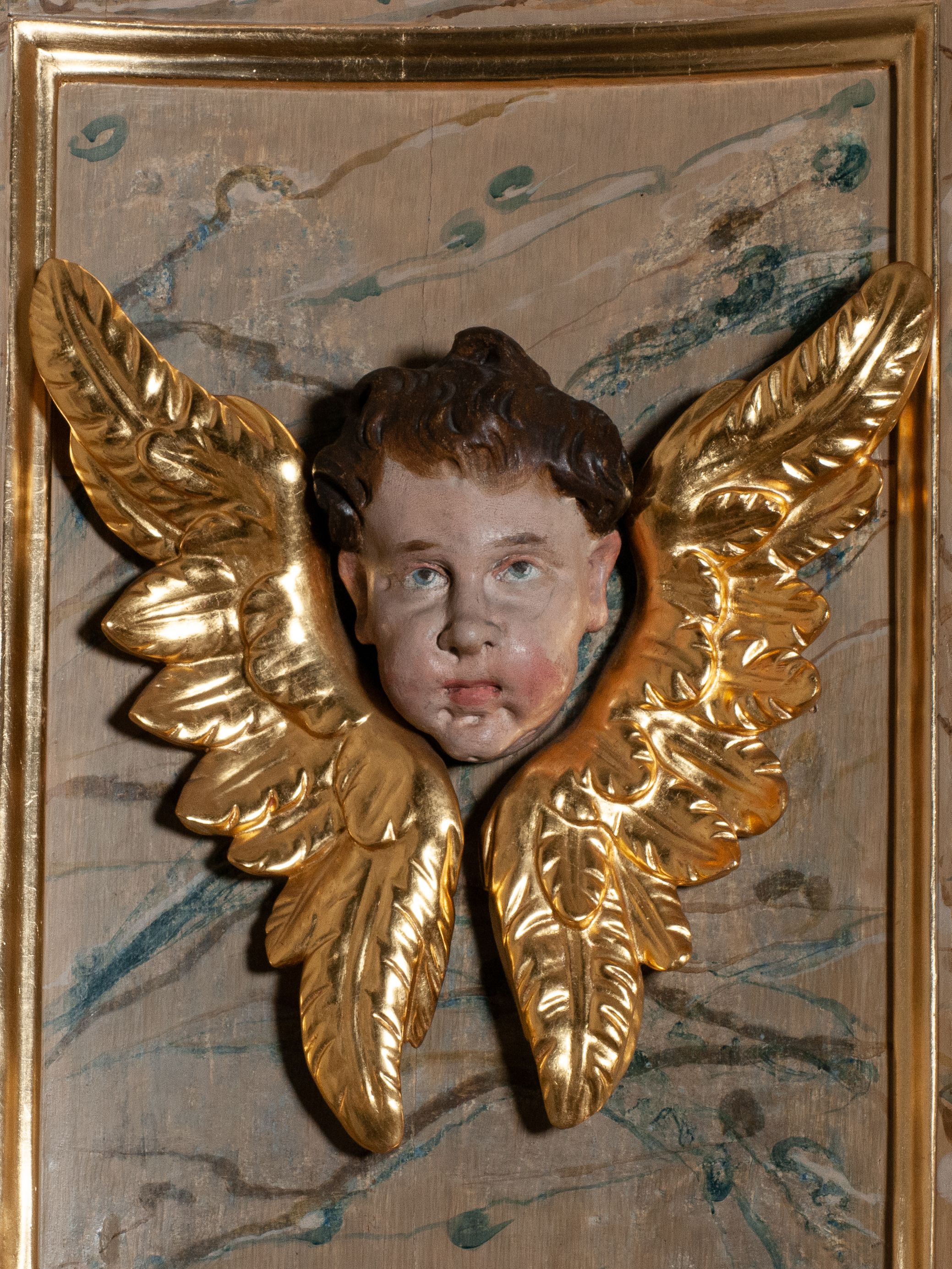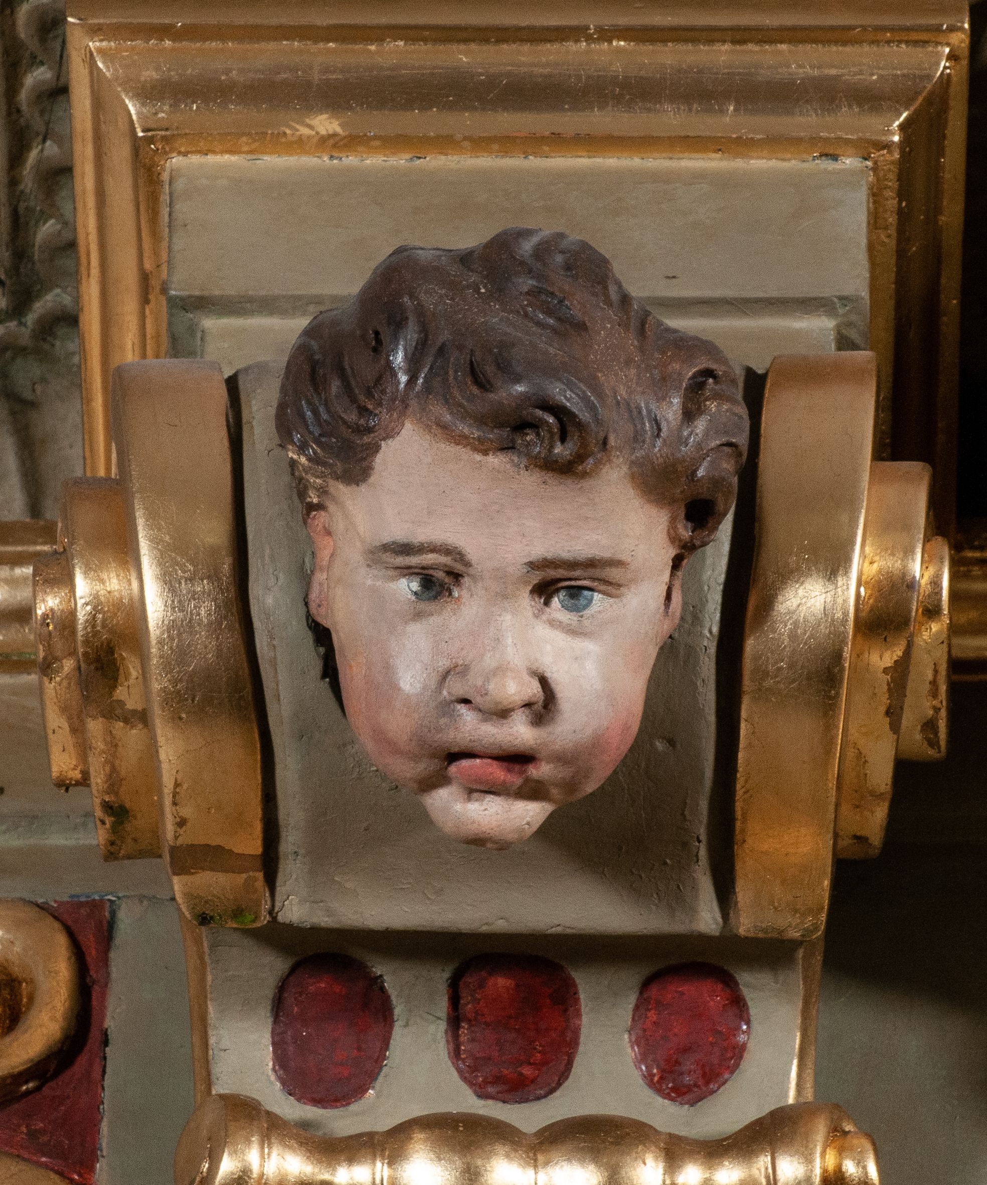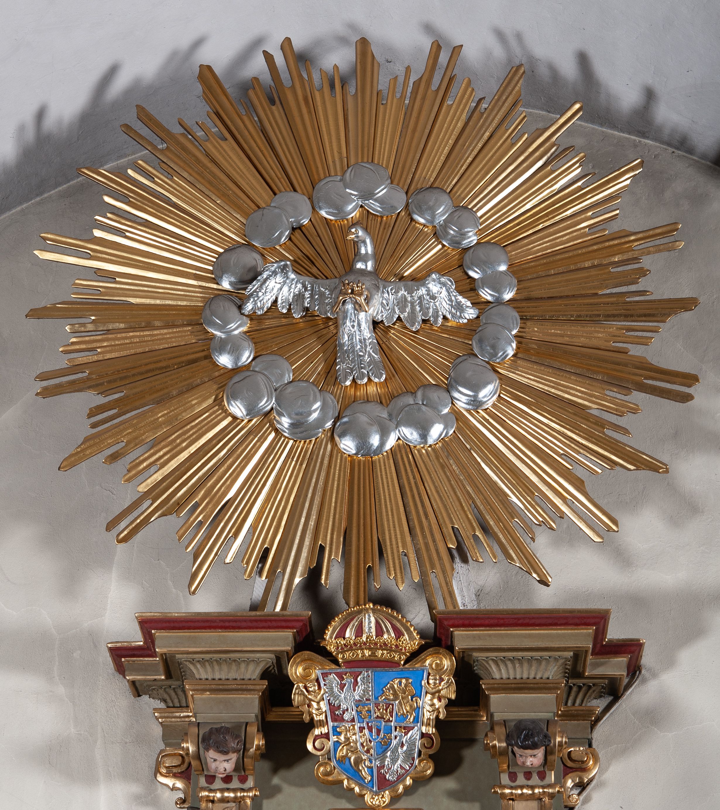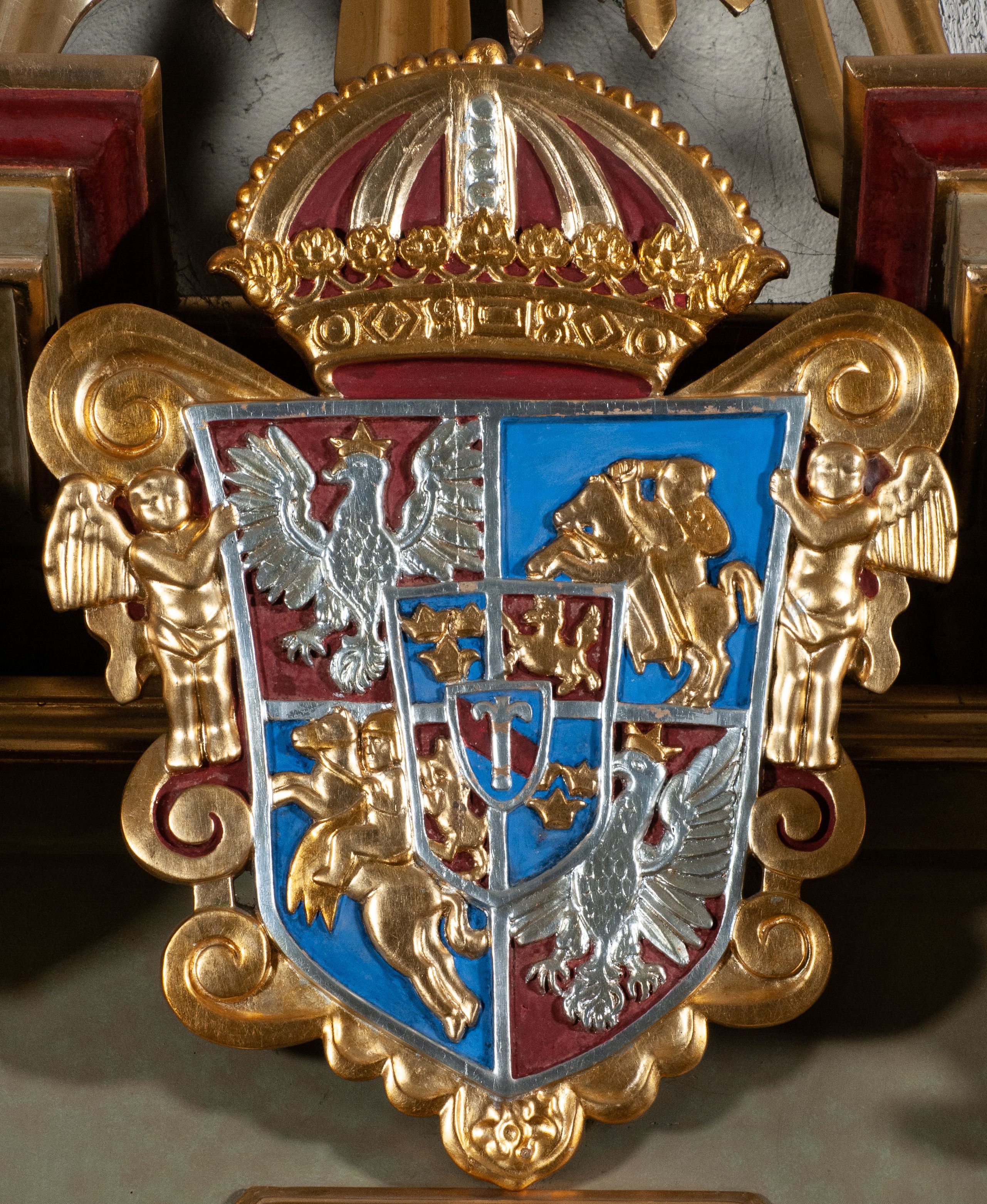 The pulpit was made in the second half of the 18th century. Its form, colour scheme and ornaments used indicate the influence of Rococo and Classicistic styles.