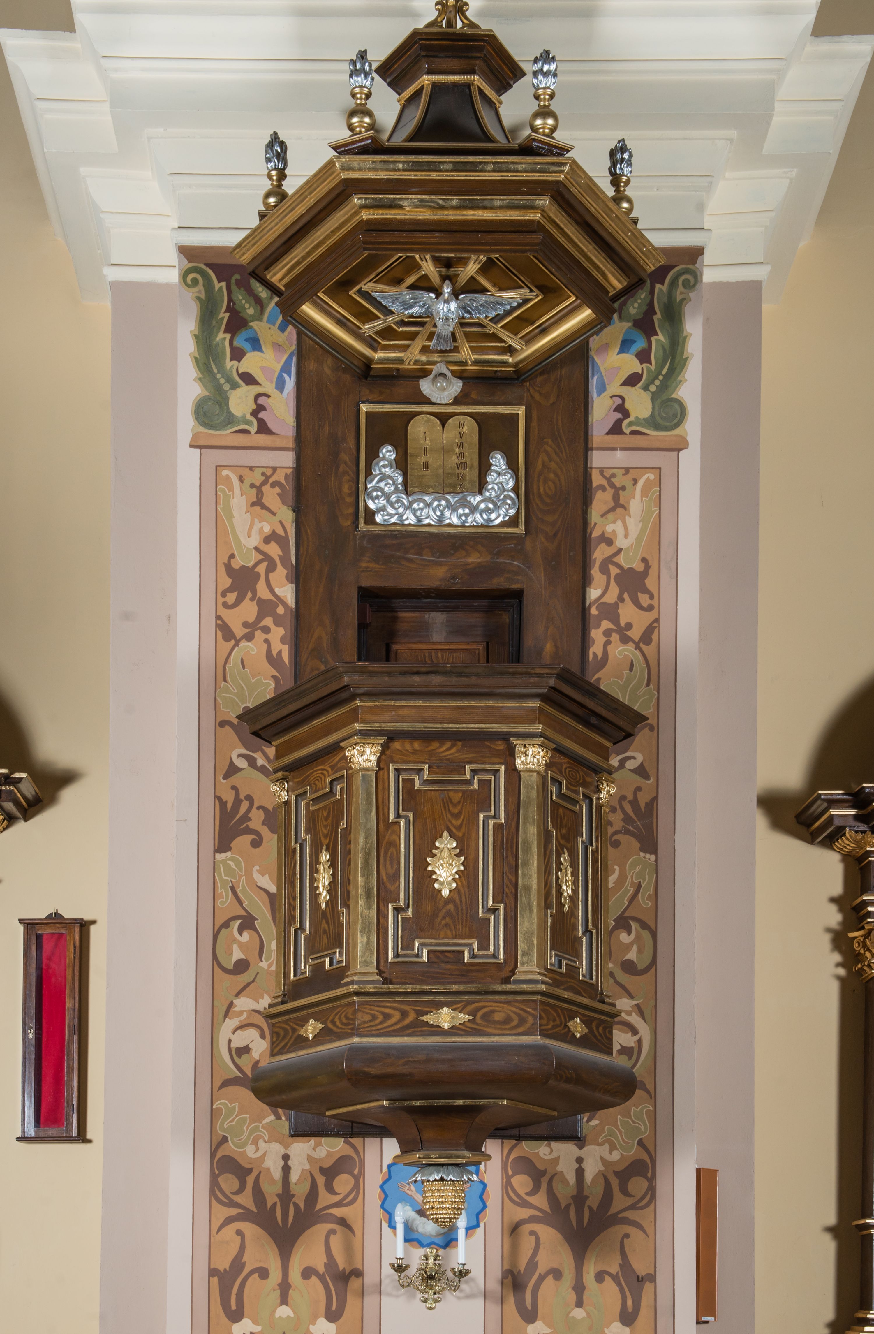 The pulpit in the Reformed Church in Kęty was probably built in the first half of the 18th century. In accordance with the arrangements of the Order, it presents a relatively simple and moderately decorative form.