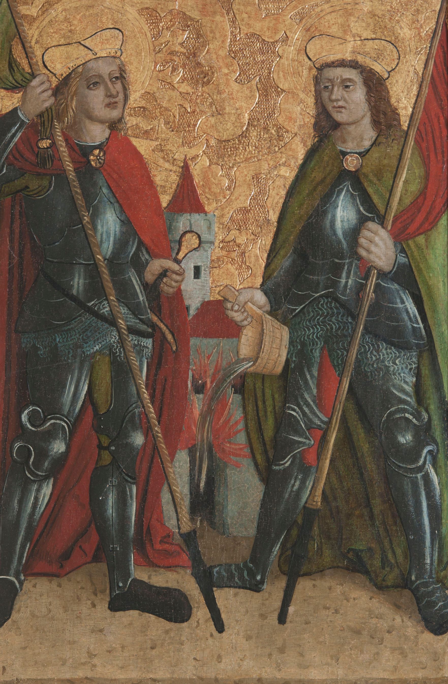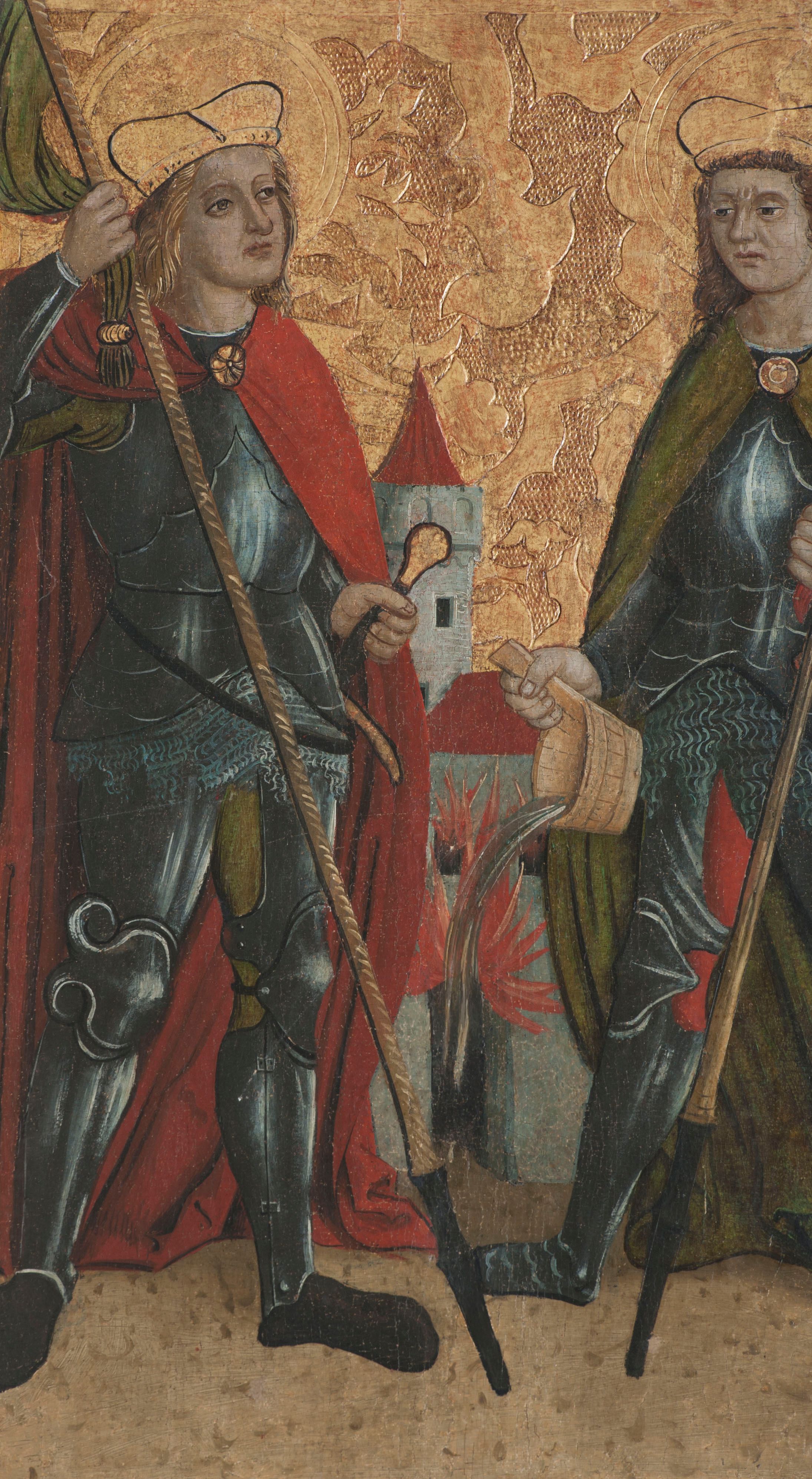 The painting constitutes the right part of the dismantled triptych which was originally located in the former church of St. Valentine in Krempany. The aforementioned work is placed on the wall of the chancel, and the central part is located in the newer high altar. According to the signature mark on one of the scenes in the field, the triptych was made in 1516.